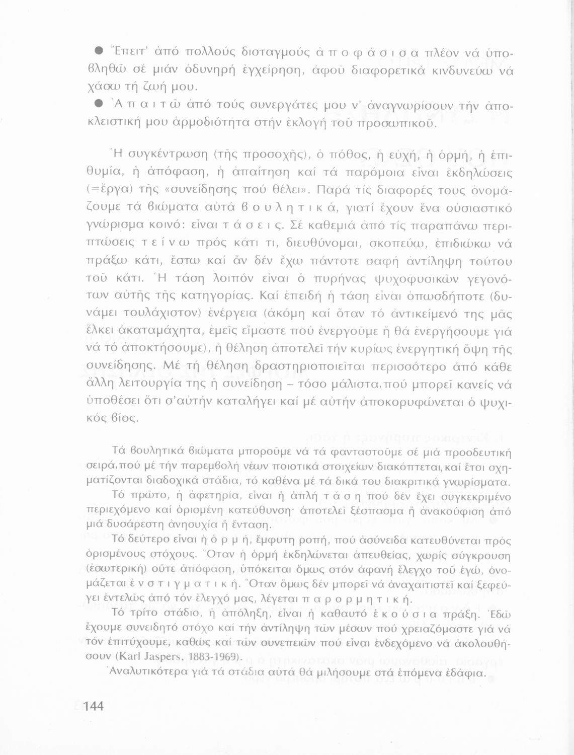 Σχολικό εγχειρίδιο ψυχολογίας για τη Β΄ Λυκείου που προσεγγίζει τη συνείδηση από γνωστική, συναισθηματική και βουλητική άποψη.
