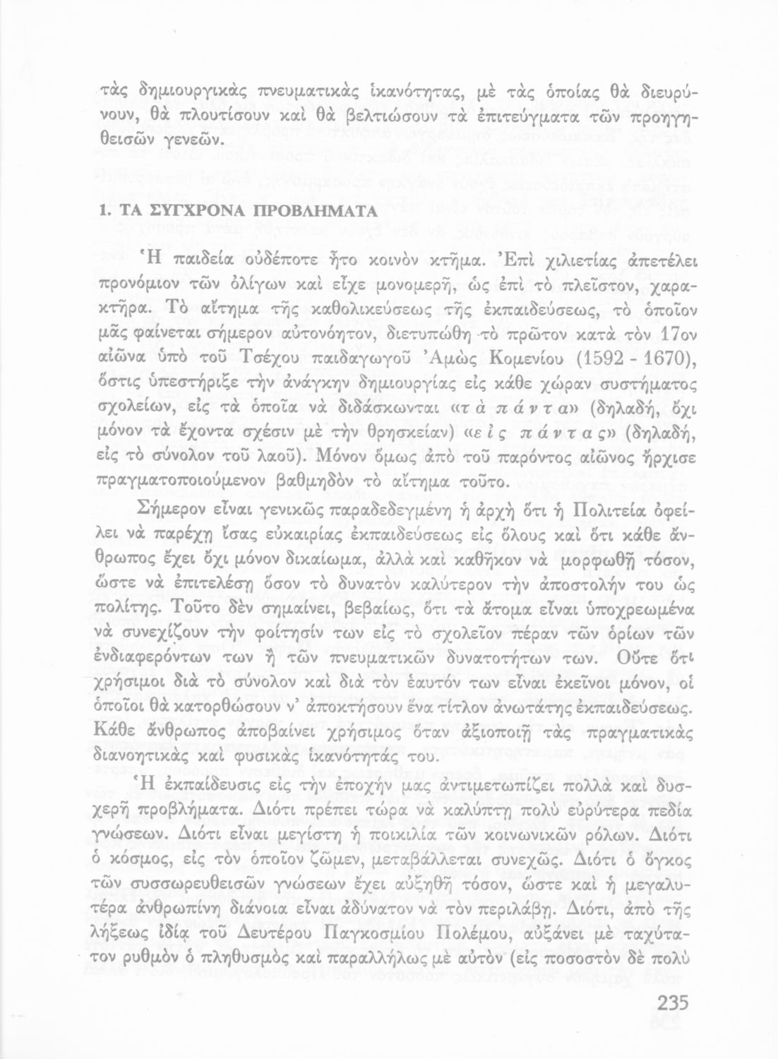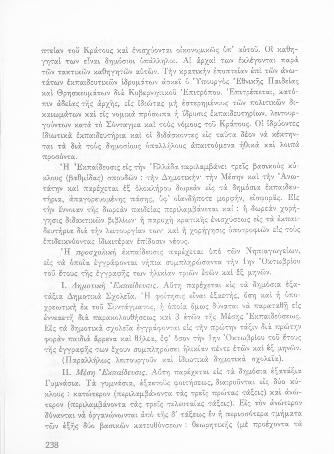 Σχολικό εγχειρίδιο της Γ΄ και ΣΤ΄ Γυμνασίου για το μάθημα της Πολιτικής Αγωγής. Αναφέρεται στις γενικές έννοιες του δικαίου, τις μορφές των πολιτευμάτων, τους θεσμούς, το διαχωρισμό των εξουσιών. Συνεχίζει με τη διοίκηση και τις εξουσίες στο Ελληνικό Κράτος. Έπειτα παρουσιάζει τα οικονομικά του κράτους και τους διάφορους τομείς της κοινωνικής ζωής. Αναφέρει την απειλή του Κομμουνισμού και επισημαίνει τα εθνικά σύμβολα. Τέλος γίνεται αναφορά στους Διεθνείς Οργανισμούς. Σκοπός του μαθήματος είναι να αποκτήσουν οι μαθητές ως πολίτες ειδικές αναμορφωμένες στα κοινά γνώσεις, καθώς και την καλλιέργειά της εθνικής συνείδησής.
