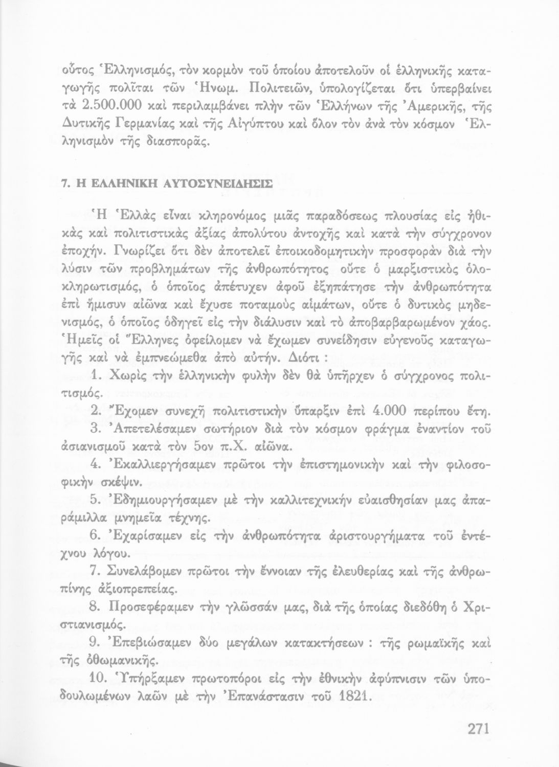Σχολικό εγχειρίδιο της Γ΄ και ΣΤ΄ Γυμνασίου για το μάθημα της Πολιτικής Αγωγής. Αναφέρεται στις γενικές έννοιες του δικαίου, τις μορφές των πολιτευμάτων, τους θεσμούς, το διαχωρισμό των εξουσιών. Συνεχίζει με τη διοίκηση και τις εξουσίες στο Ελληνικό Κράτος. Έπειτα παρουσιάζει τα οικονομικά του κράτους και τους διάφορους τομείς της κοινωνικής ζωής. Αναφέρει την απειλή του Κομμουνισμού και επισημαίνει τα εθνικά σύμβολα. Τέλος γίνεται αναφορά στους Διεθνείς Οργανισμούς. Σκοπός του μαθήματος είναι να αποκτήσουν οι μαθητές ως πολίτες ειδικές αναμορφωμένες στα κοινά γνώσεις, καθώς και την καλλιέργειά της εθνικής συνείδησής.