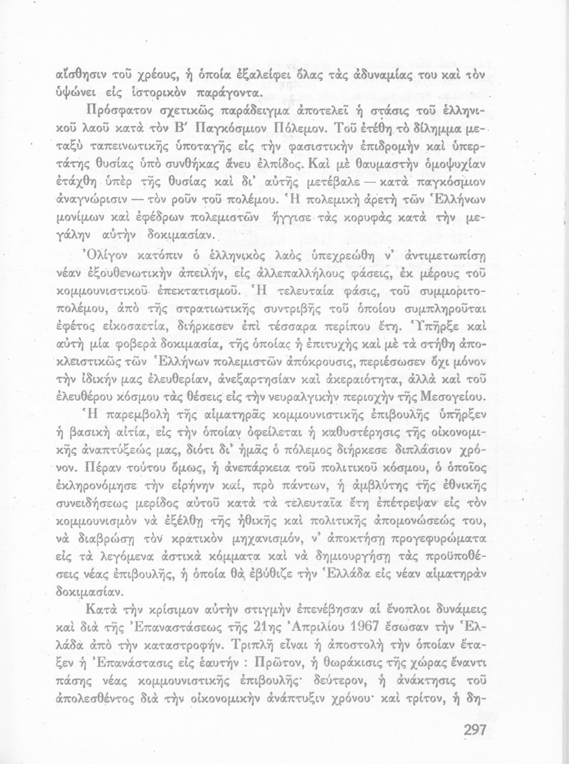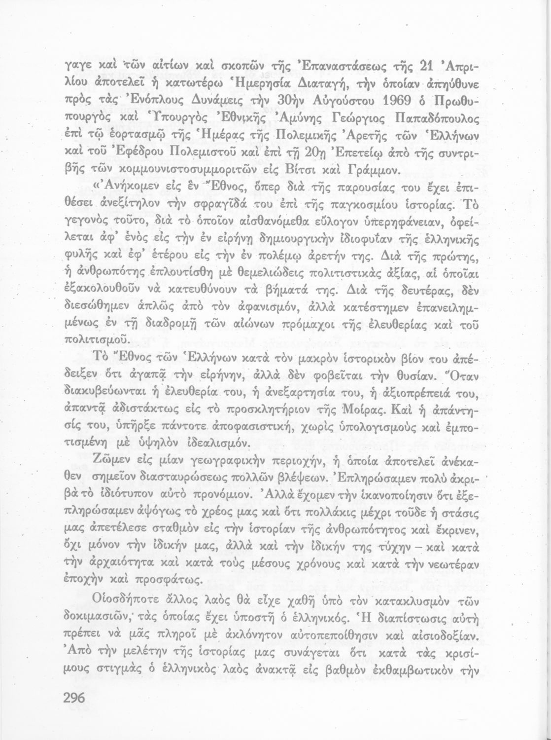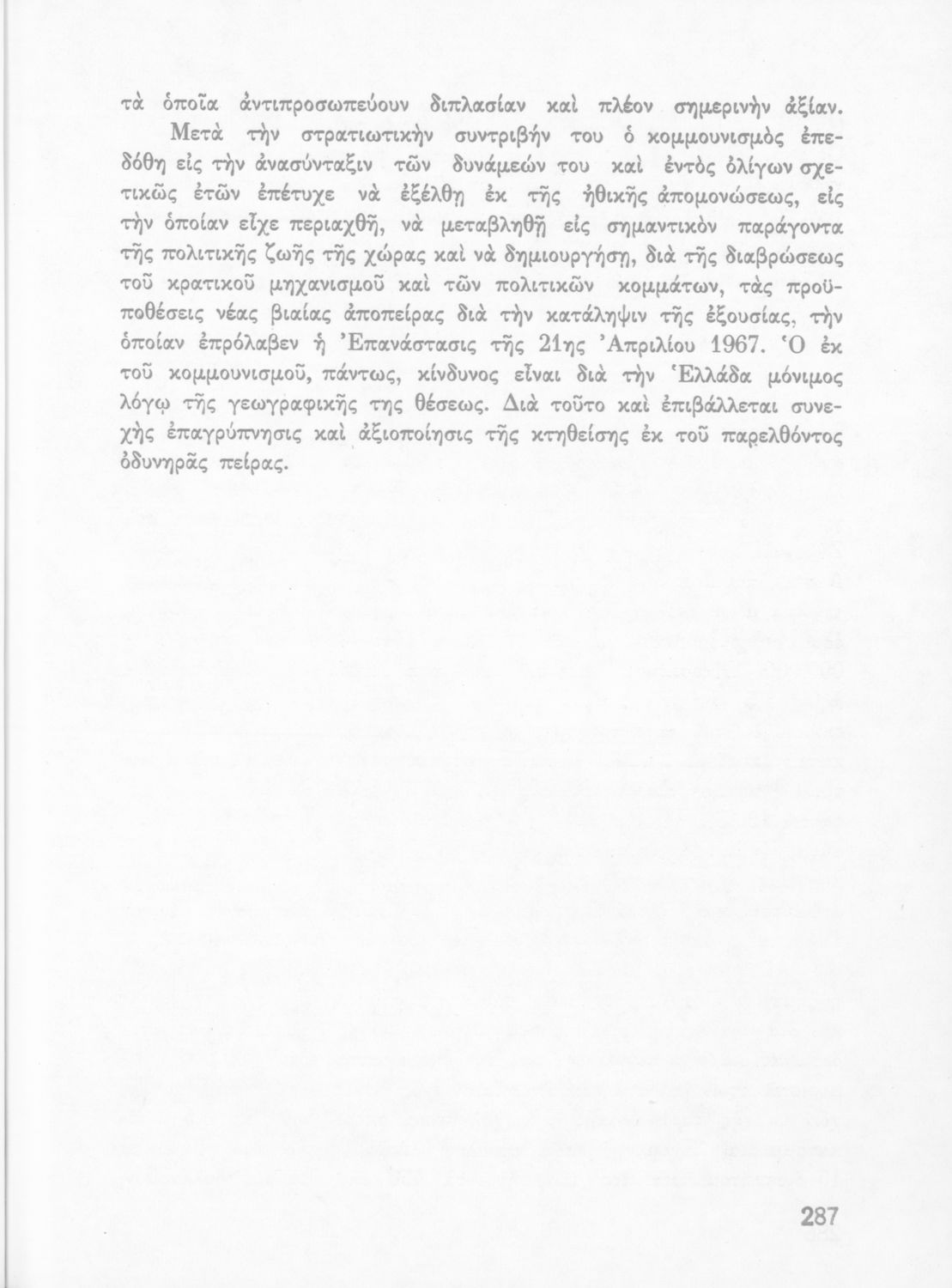 Σχολικό εγχειρίδιο της Γ΄ και ΣΤ΄ Γυμνασίου για το μάθημα της Πολιτικής Αγωγής. Αναφέρεται στις γενικές έννοιες του δικαίου, τις μορφές των πολιτευμάτων, τους θεσμούς, το διαχωρισμό των εξουσιών. Συνεχίζει με τη διοίκηση και τις εξουσίες στο Ελληνικό Κράτος. Έπειτα παρουσιάζει τα οικονομικά του κράτους και τους διάφορους τομείς της κοινωνικής ζωής. Αναφέρει την απειλή του Κομμουνισμού και επισημαίνει τα εθνικά σύμβολα. Τέλος γίνεται αναφορά στους Διεθνείς Οργανισμούς. Σκοπός του μαθήματος είναι να αποκτήσουν οι μαθητές ως πολίτες ειδικές αναμορφωμένες στα κοινά γνώσεις, καθώς και την καλλιέργειά της εθνικής συνείδησής.