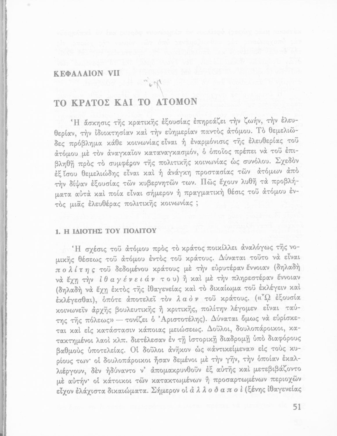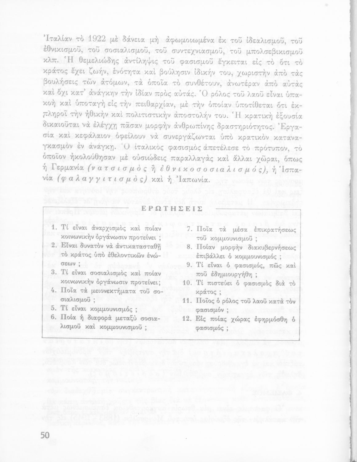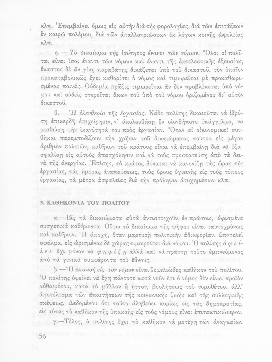Σχολικό εγχειρίδιο της Γ΄ και ΣΤ΄ Γυμνασίου για το μάθημα της Πολιτικής Αγωγής. Αναφέρεται στις γενικές έννοιες του δικαίου, τις μορφές των πολιτευμάτων, τους θεσμούς, το διαχωρισμό των εξουσιών. Συνεχίζει με τη διοίκηση και τις εξουσίες στο Ελληνικό Κράτος. Έπειτα παρουσιάζει τα οικονομικά του κράτους και τους διάφορους τομείς της κοινωνικής ζωής. Αναφέρει την απειλή του Κομμουνισμού και επισημαίνει τα εθνικά σύμβολα. Τέλος γίνεται αναφορά στους Διεθνείς Οργανισμούς. Σκοπός του μαθήματος είναι να αποκτήσουν οι μαθητές ως πολίτες ειδικές αναμορφωμένες στα κοινά γνώσεις, καθώς και την καλλιέργειά της εθνικής συνείδησής.