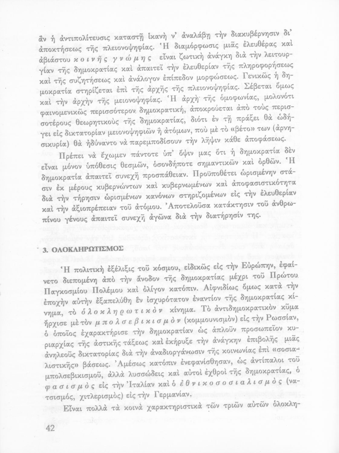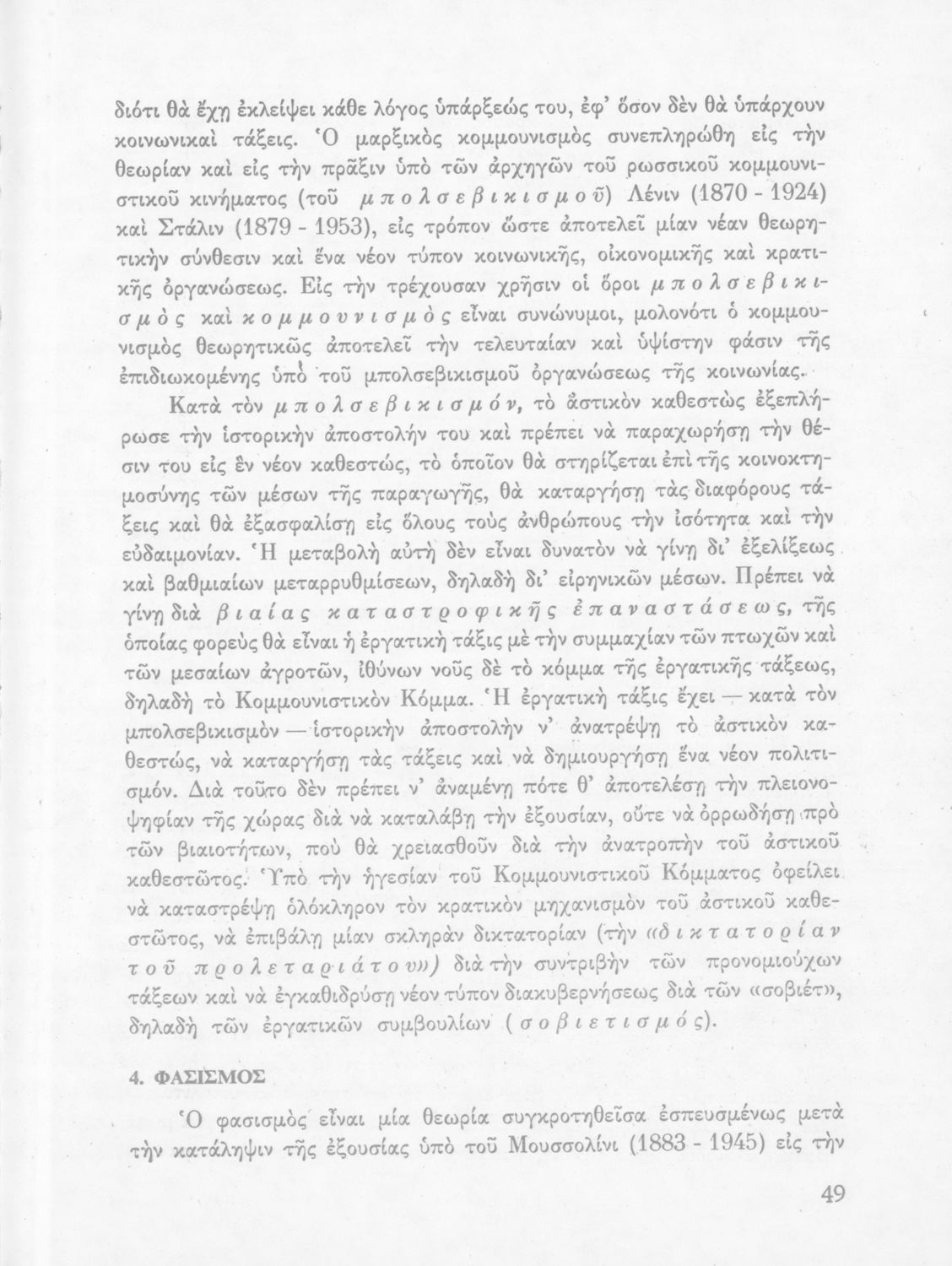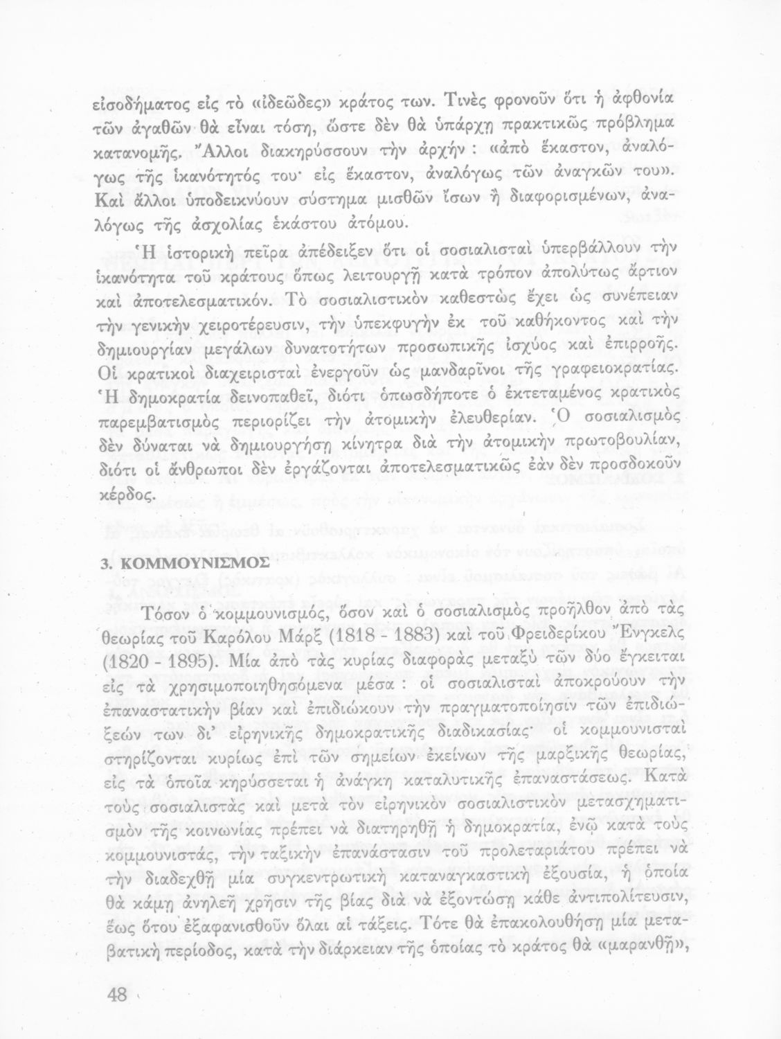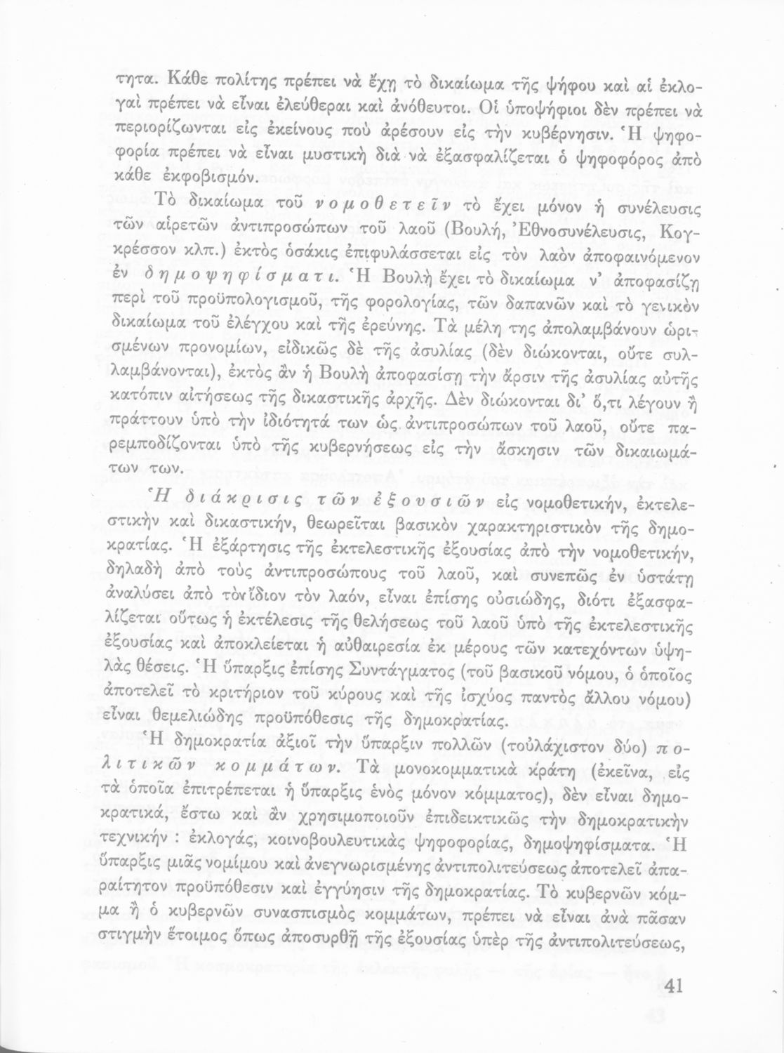 Σχολικό εγχειρίδιο της Γ΄ και ΣΤ΄ Γυμνασίου για το μάθημα της Πολιτικής Αγωγής. Αναφέρεται στις γενικές έννοιες του δικαίου, τις μορφές των πολιτευμάτων, τους θεσμούς, το διαχωρισμό των εξουσιών. Συνεχίζει με τη διοίκηση και τις εξουσίες στο Ελληνικό Κράτος. Έπειτα παρουσιάζει τα οικονομικά του κράτους και τους διάφορους τομείς της κοινωνικής ζωής. Αναφέρει την απειλή του Κομμουνισμού και επισημαίνει τα εθνικά σύμβολα. Τέλος γίνεται αναφορά στους Διεθνείς Οργανισμούς. Σκοπός του μαθήματος είναι να αποκτήσουν οι μαθητές ως πολίτες ειδικές αναμορφωμένες στα κοινά γνώσεις, καθώς και την καλλιέργειά της εθνικής συνείδησής.