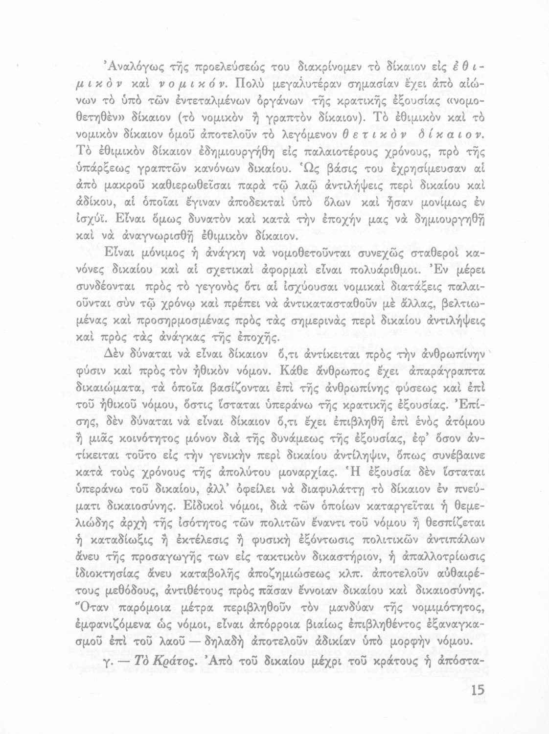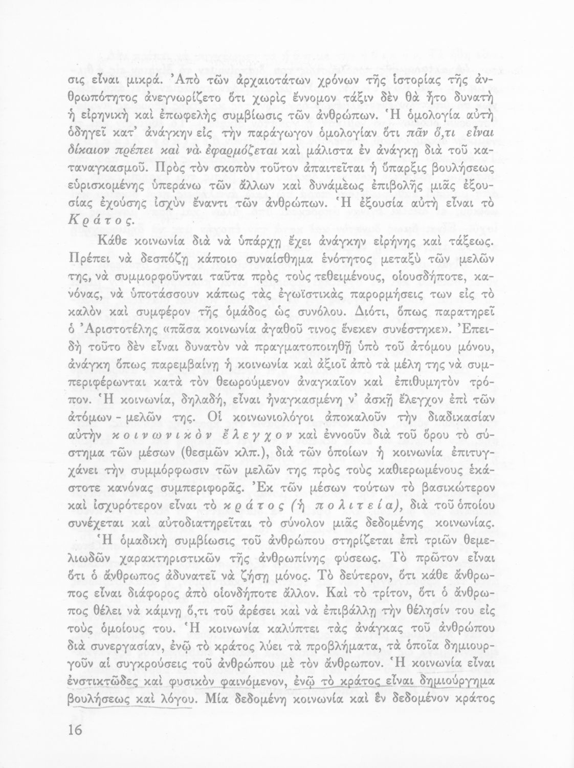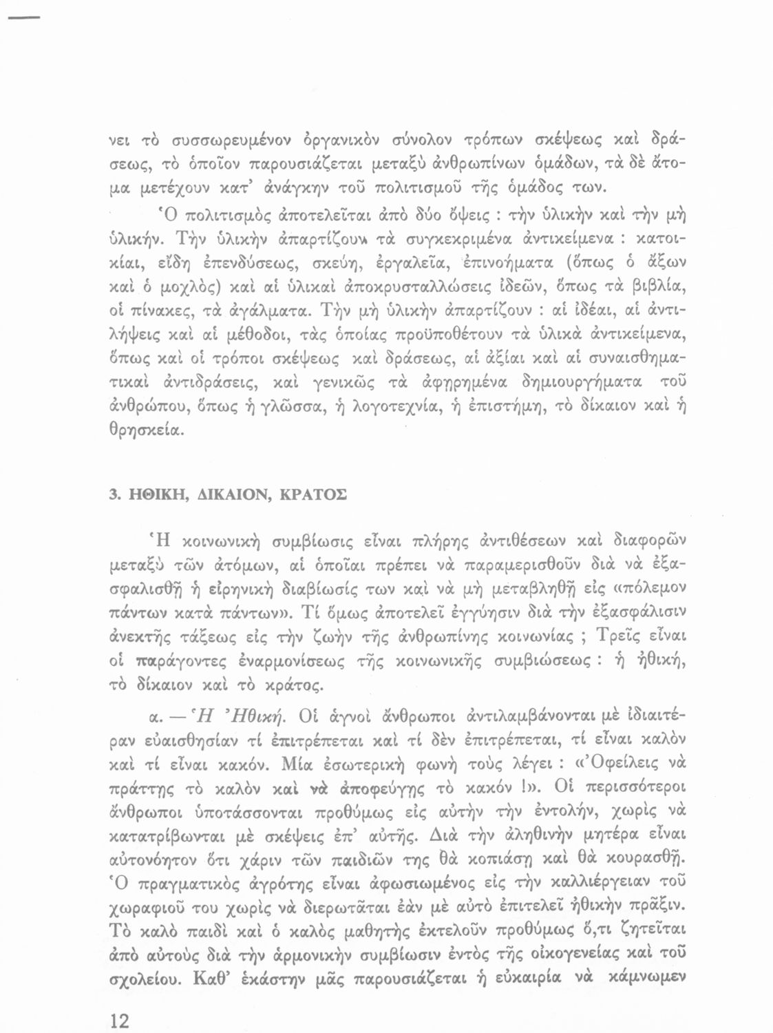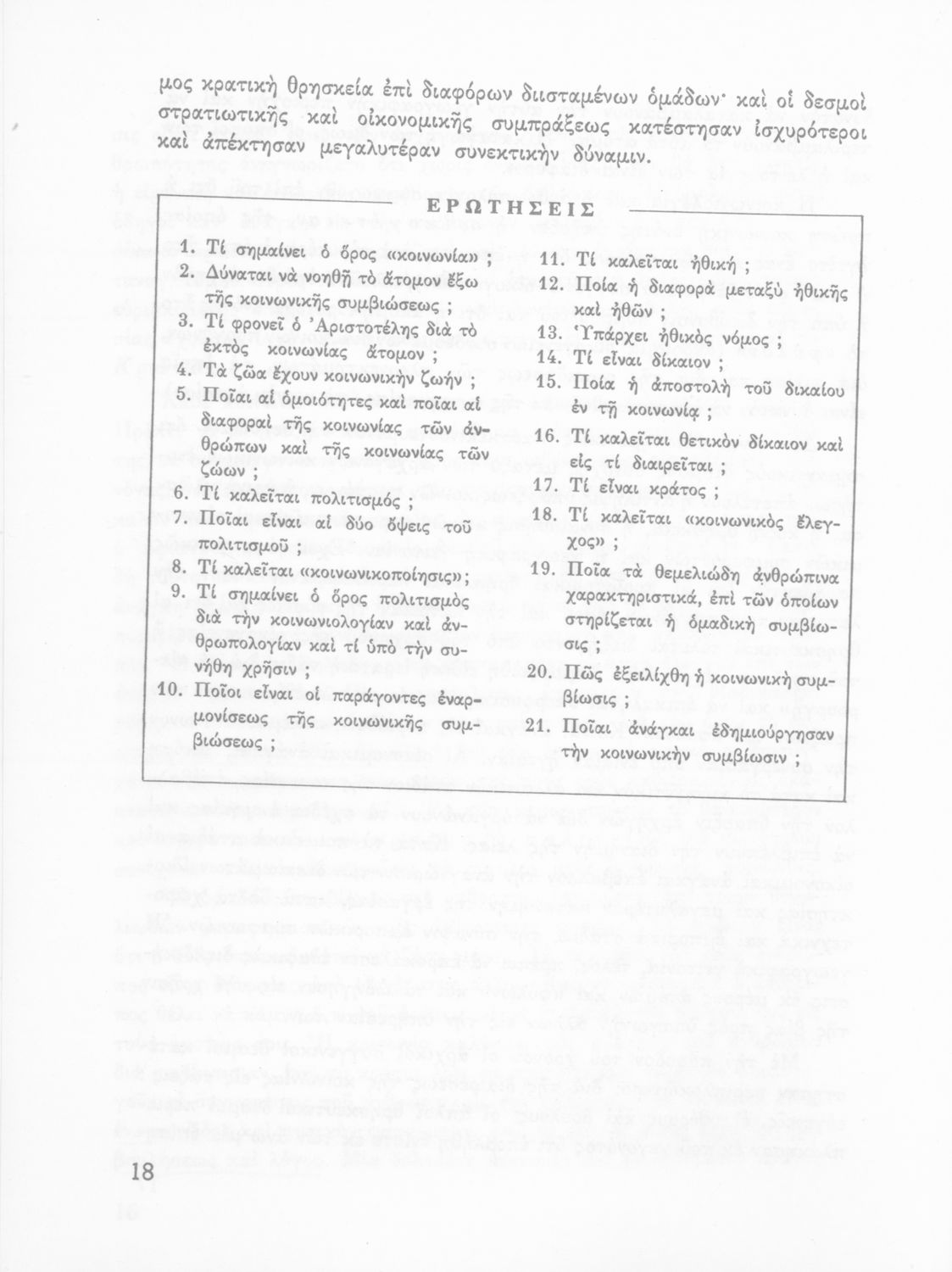 Σχολικό εγχειρίδιο της Γ΄ και ΣΤ΄ Γυμνασίου για το μάθημα της Πολιτικής Αγωγής. Αναφέρεται στις γενικές έννοιες του δικαίου, τις μορφές των πολιτευμάτων, τους θεσμούς, το διαχωρισμό των εξουσιών. Συνεχίζει με τη διοίκηση και τις εξουσίες στο Ελληνικό Κράτος. Έπειτα παρουσιάζει τα οικονομικά του κράτους και τους διάφορους τομείς της κοινωνικής ζωής. Αναφέρει την απειλή του Κομμουνισμού και επισημαίνει τα εθνικά σύμβολα. Τέλος γίνεται αναφορά στους Διεθνείς Οργανισμούς. Σκοπός του μαθήματος είναι να αποκτήσουν οι μαθητές ως πολίτες ειδικές αναμορφωμένες στα κοινά γνώσεις, καθώς και την καλλιέργειά της εθνικής συνείδησής.