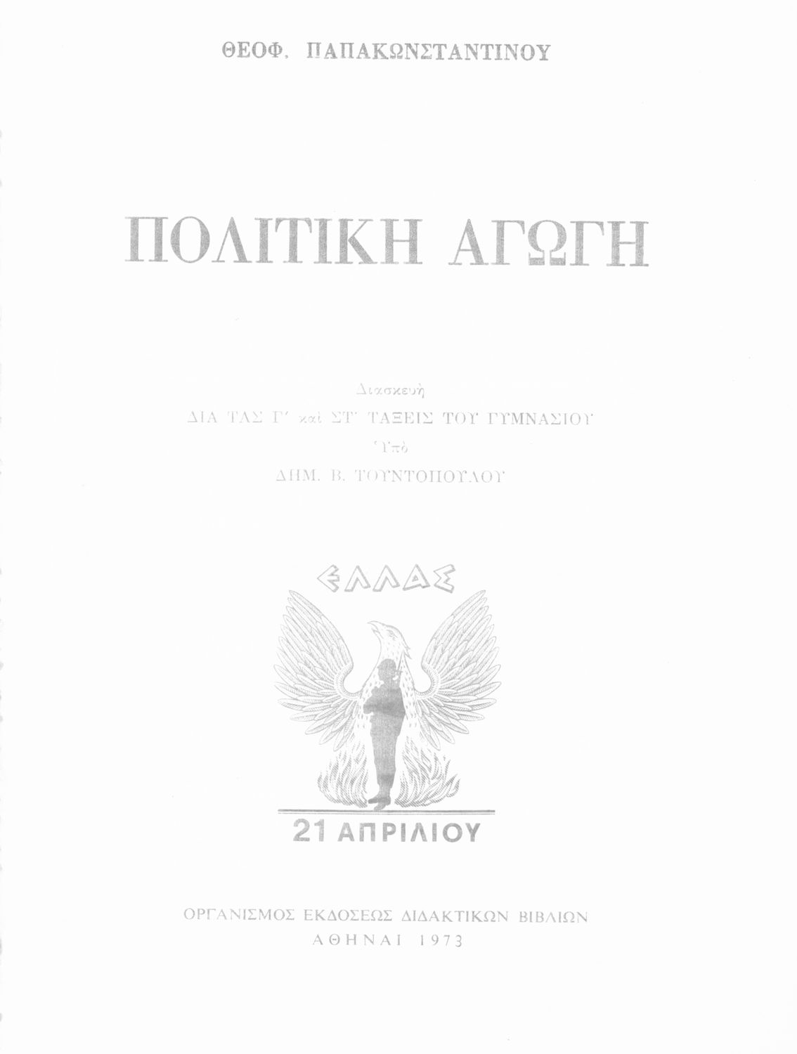 Τίτλος: Πολιτική Αγωγή. Δια τας Γ΄ και ΣΤ΄ Τάξεις του Γυμνασίου