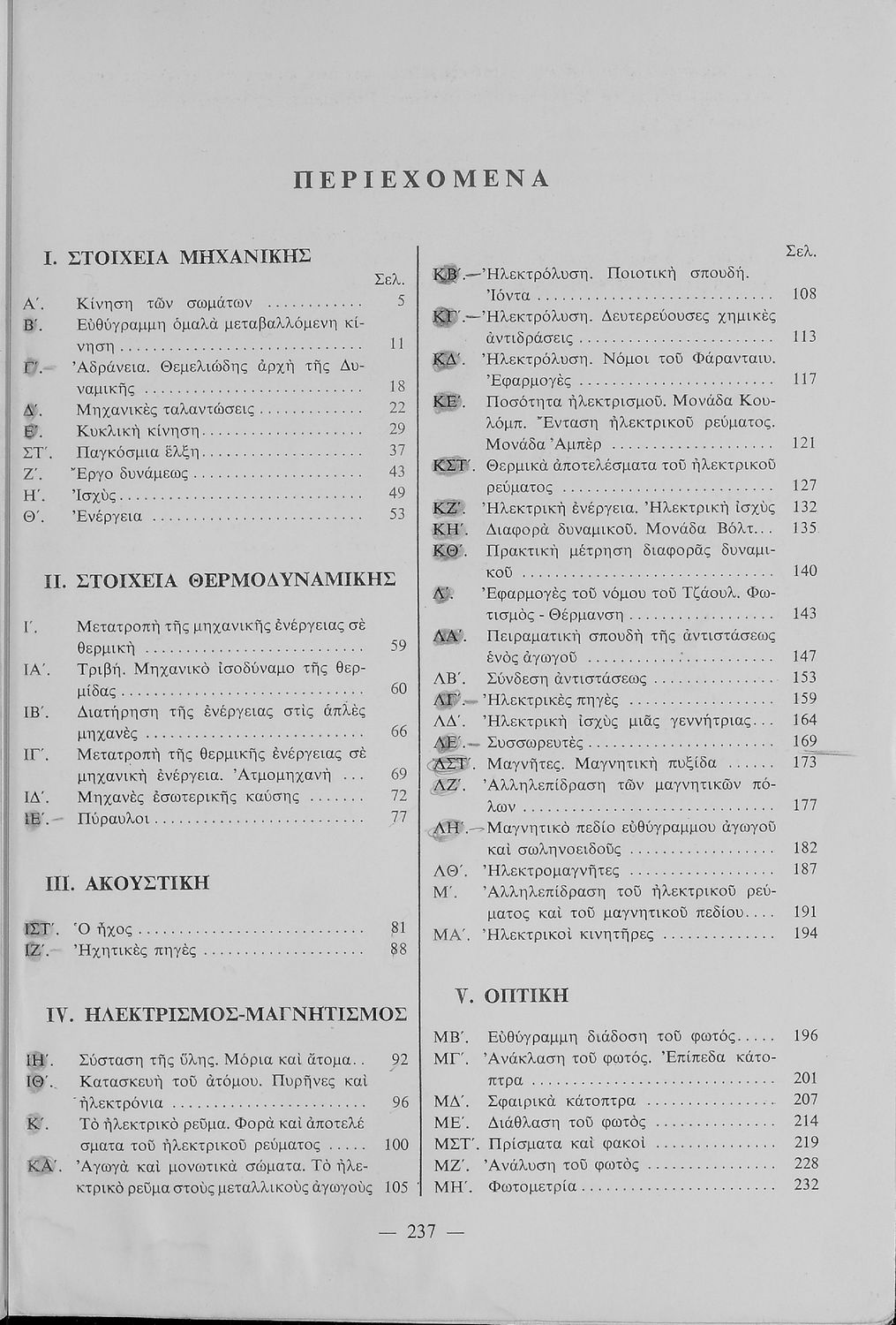 Σχολικό εγχειρίδιο της Ε΄ και ΣΤ΄ Τάξης των Δημοτικών Σχολείων και την Α΄ Τάξη των Οκτατάξιων Γυμνασίων, Προγυμνασίων και Αστικών Σχολείων για το μάθημα της Φυσικής. Παρέχει βασικές γνώσεις της φυσικής ...
