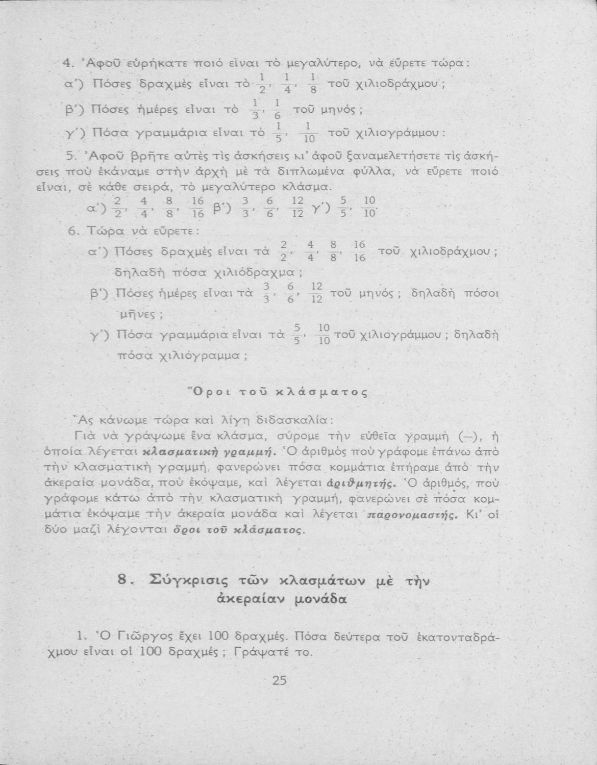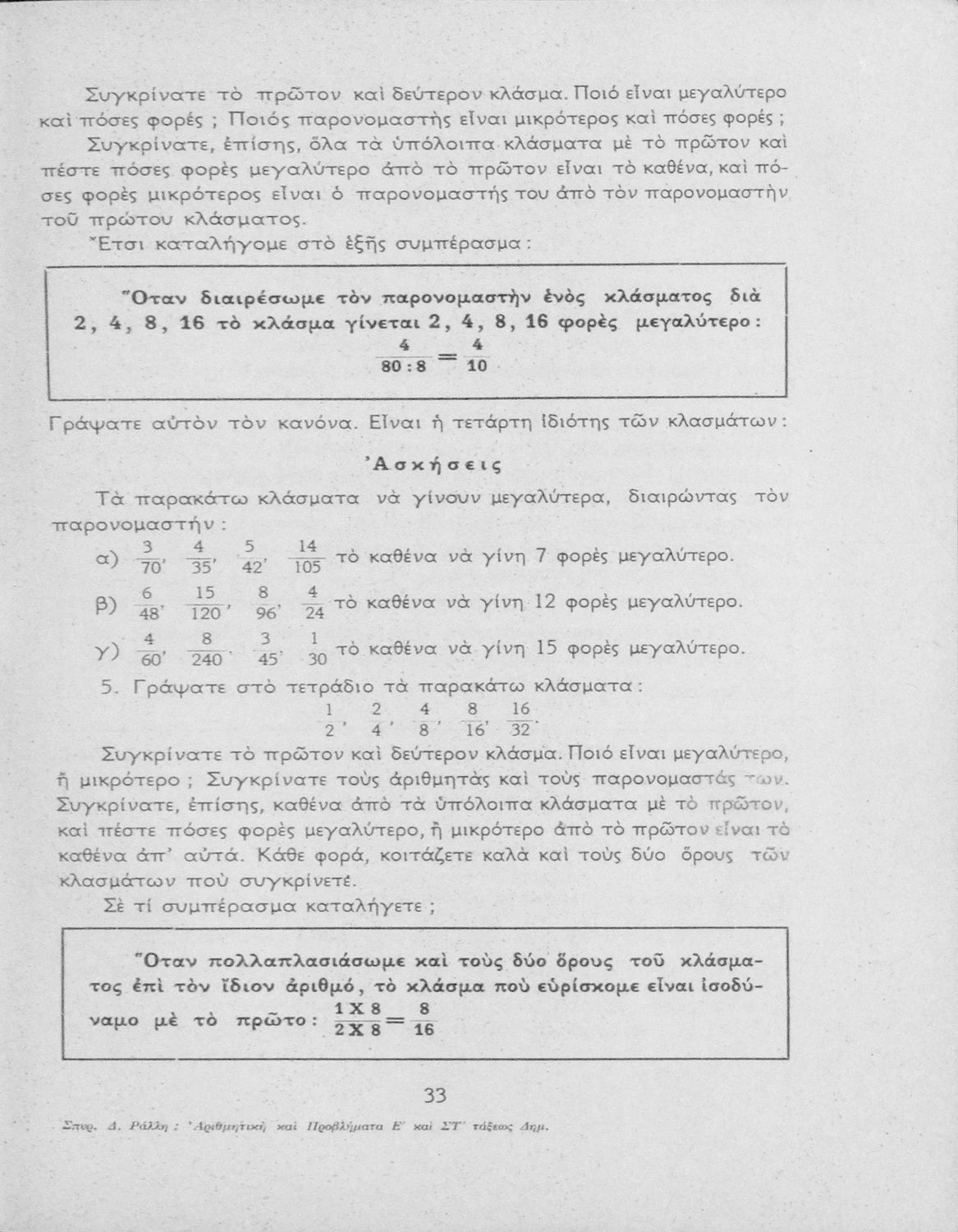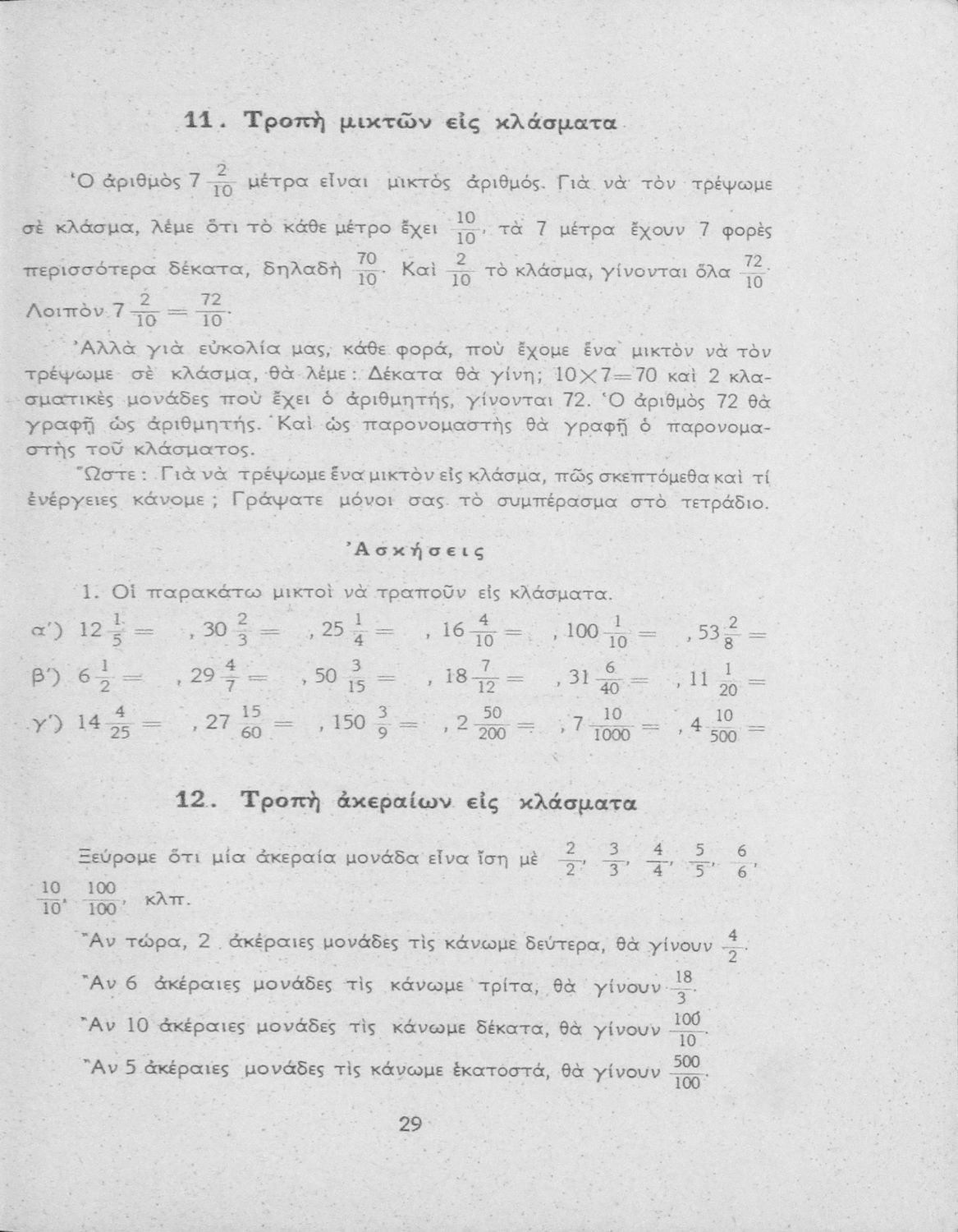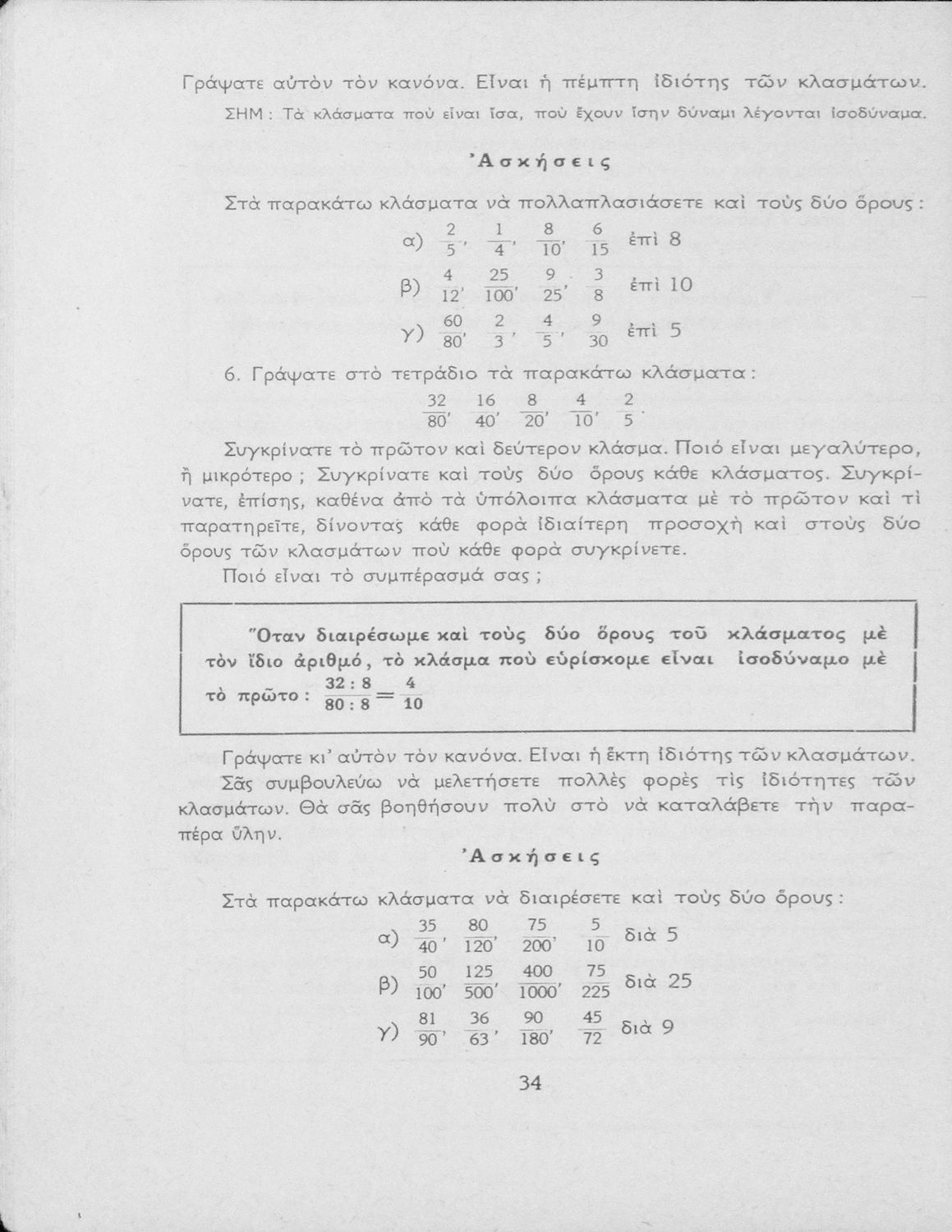 Σχολικό εγχειρίδιο Μαθηματικών των Ε΄ και ΣΤ΄ τάξεων του Δημοτικού το οποίο εισάγει τους μαθητές στις πράξεις ακέραιων και κλασματικών αριθμών.