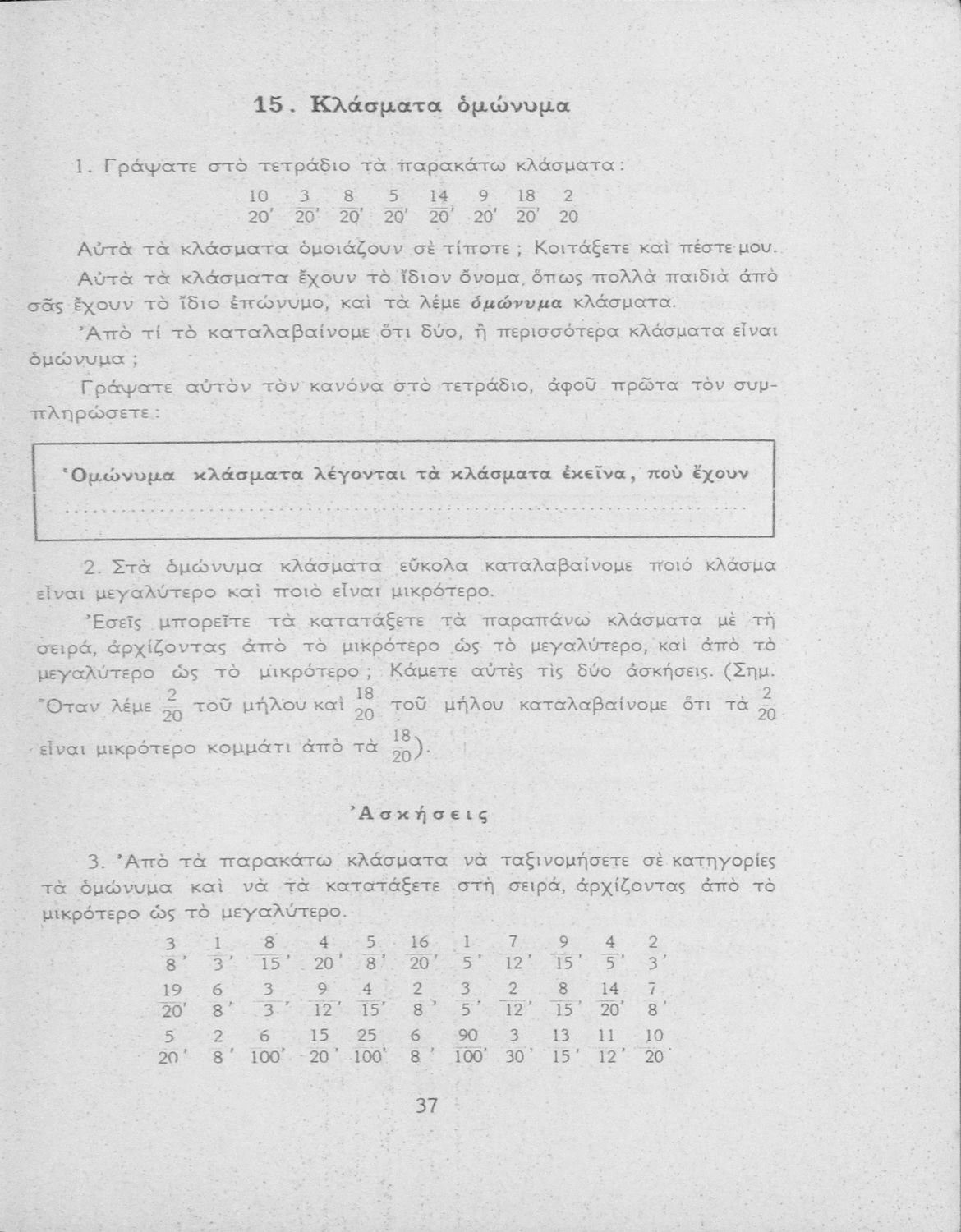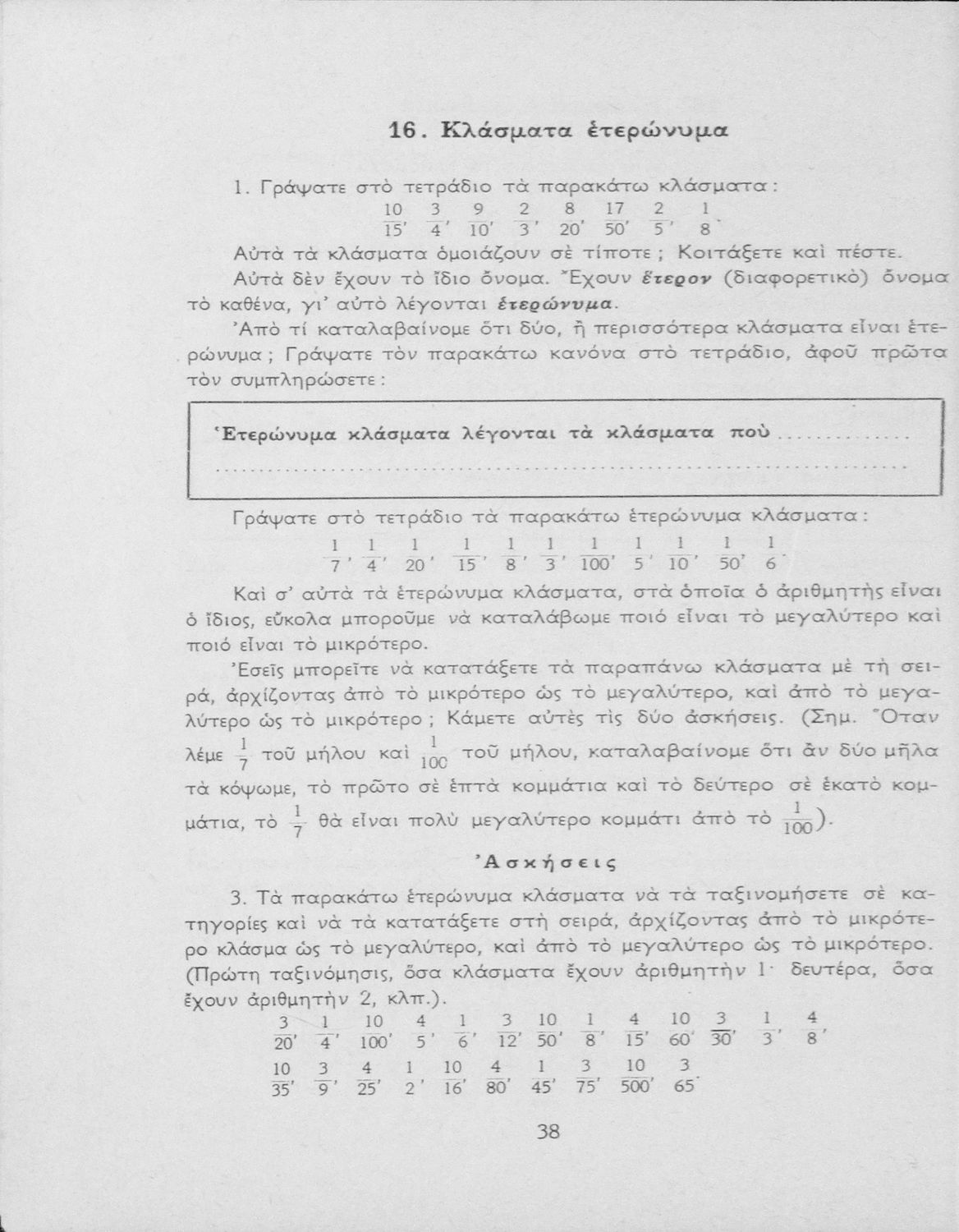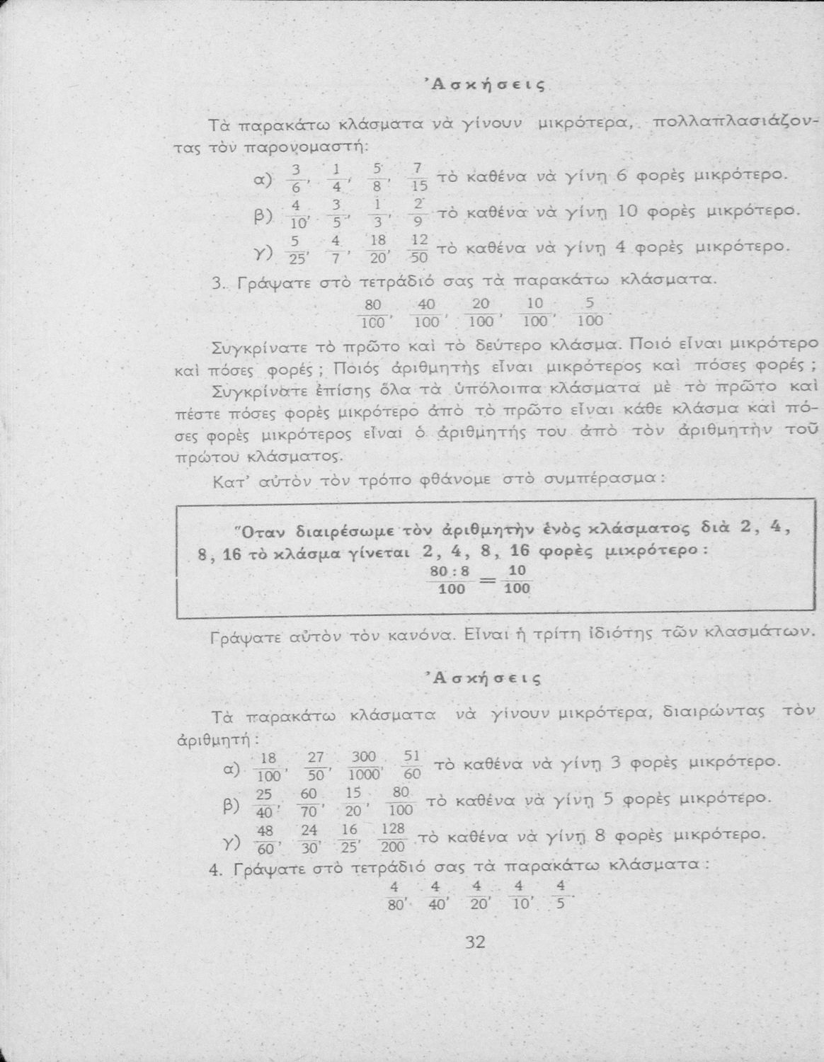 Σχολικό εγχειρίδιο Μαθηματικών των Ε΄ και ΣΤ΄ τάξεων του Δημοτικού το οποίο εισάγει τους μαθητές στις πράξεις ακέραιων και κλασματικών αριθμών.