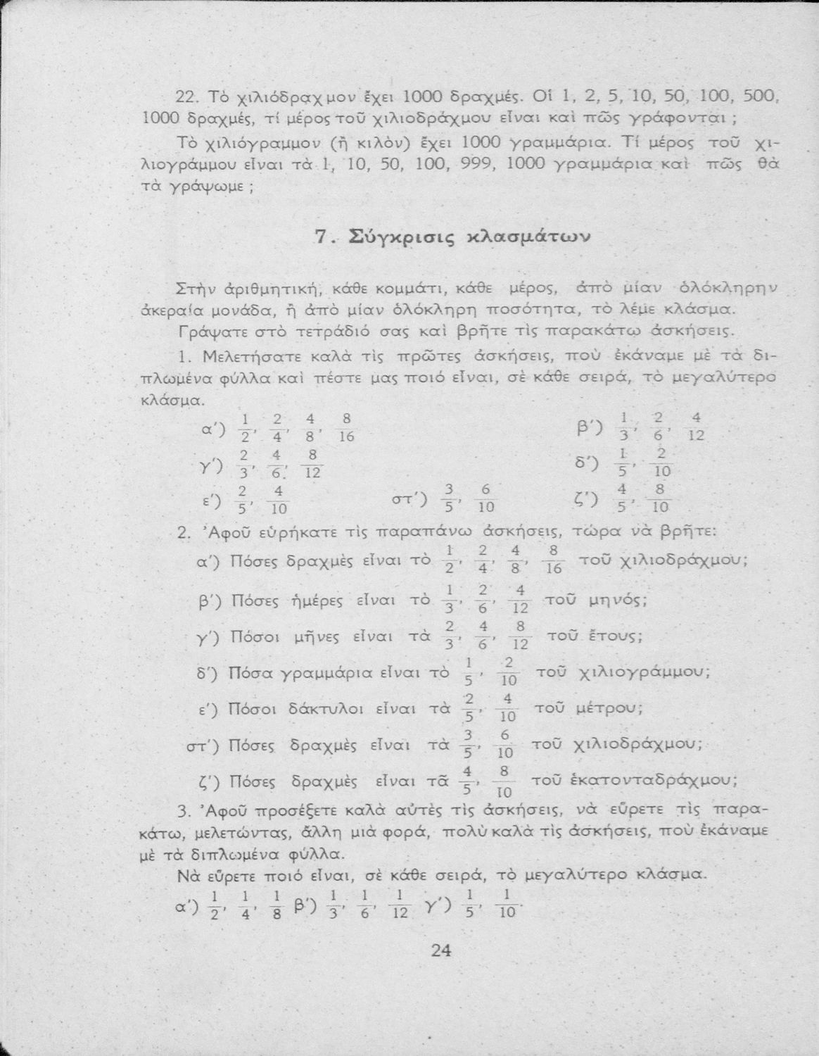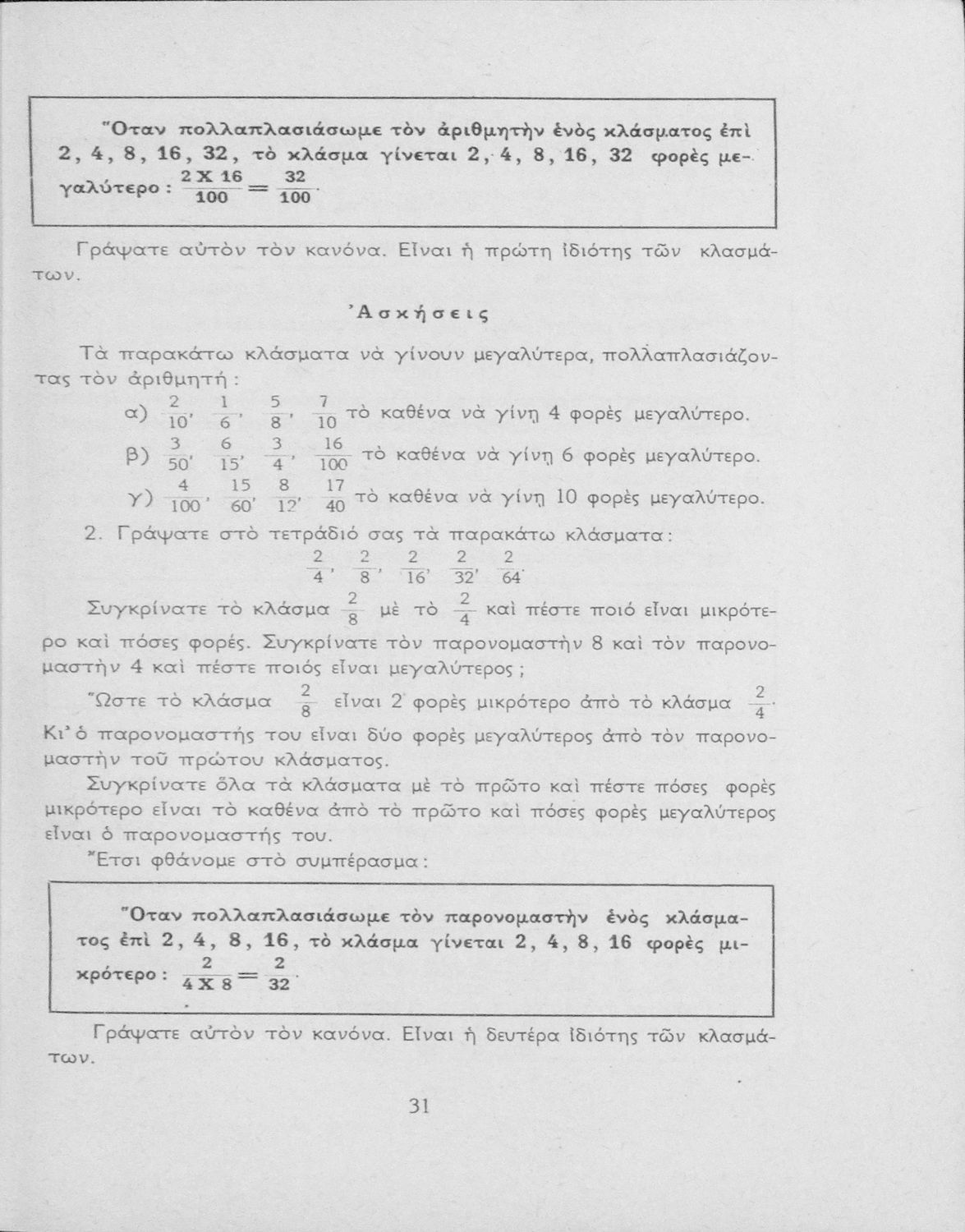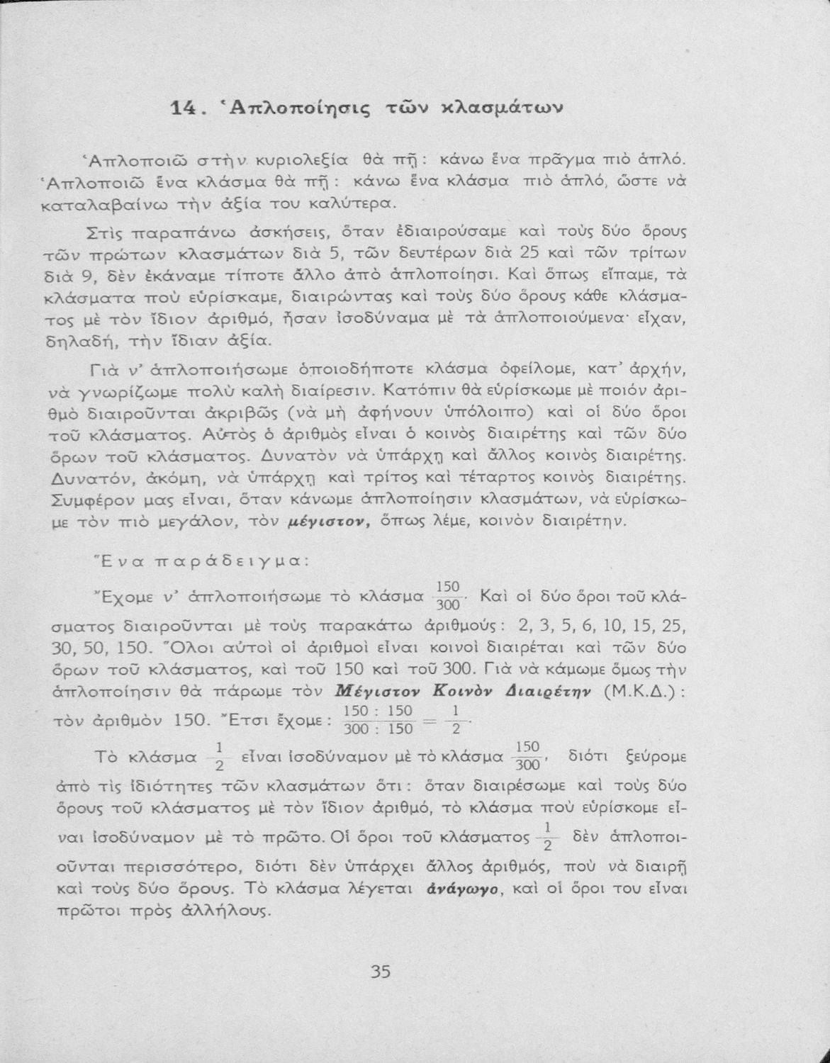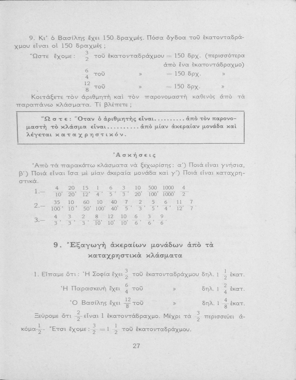 Σχολικό εγχειρίδιο Μαθηματικών των Ε΄ και ΣΤ΄ τάξεων του Δημοτικού το οποίο εισάγει τους μαθητές στις πράξεις ακέραιων και κλασματικών αριθμών.