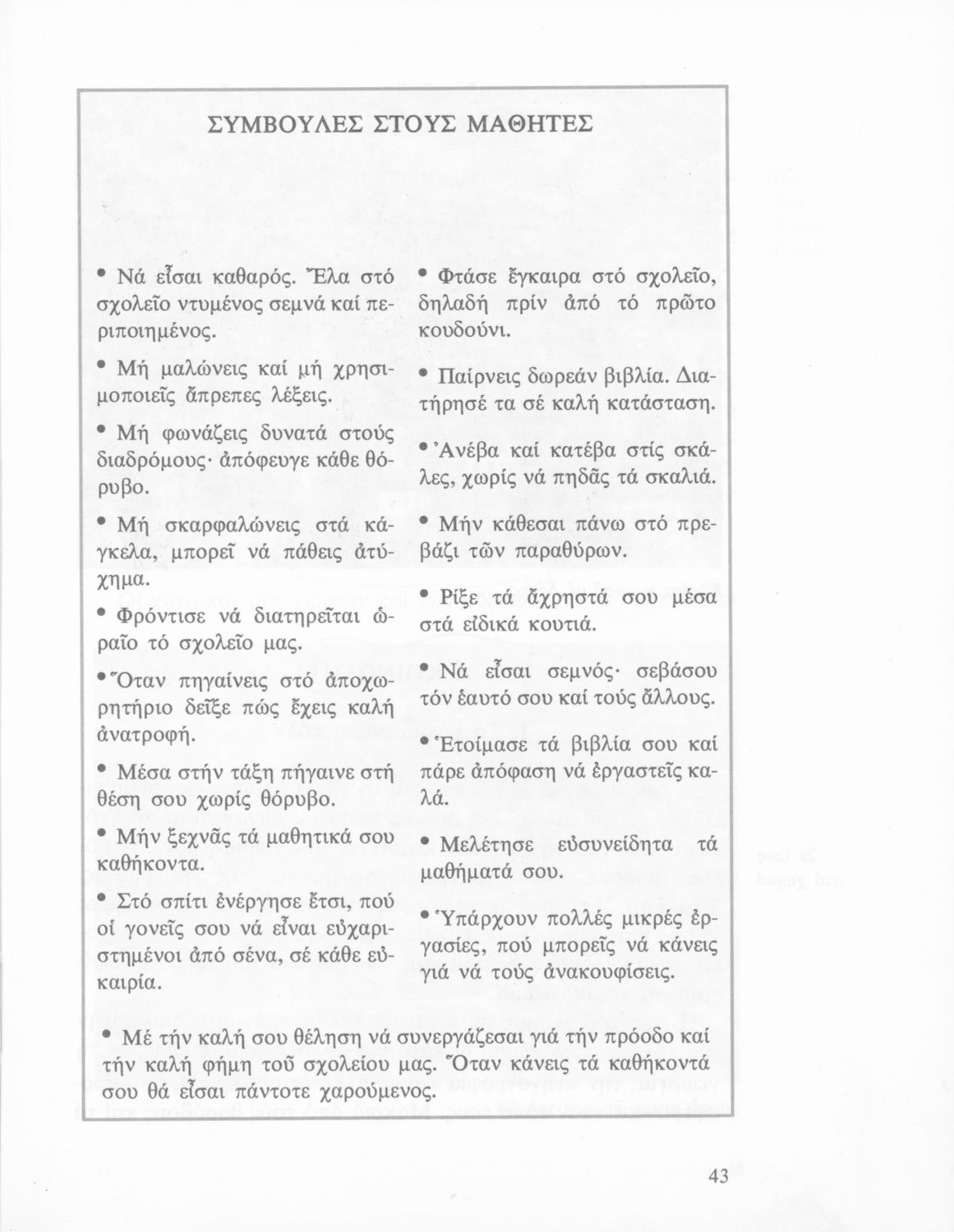 Μέγεθος και υπόστρωμα: Σχολικό εγχειρίδιο, 99 σελίδες. Εικόνες (έγχρωμες).