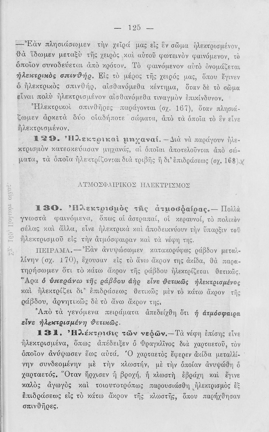 Παρουσίαση περιεχομένου: Σχολικό εγχειρίδιο για τις Τάξεις των Ελληνικών Σχολείων και Παρθεναγωγείων για το μάθημα της Φυσικής. Παρέχει βασικές γνώσεις της φυσικής επιστήμης και της χημείας. Αναλύει τις ιδιότητες των σωμάτων, καθώς και της θερμότητας, του ηλεκτρισμού και του μαγνητισμού, την υδροστατική, την βαρύτητα και την αεροστατική. Αναφέρει πολλά από τα όργανα, που χρησιμοποιούνται στη φυσική, καθώς και τις πρακτικές εφαρμογές της επιστήμης στην καθημερινότητα. Περιέχει εικόνες και σχεδιαγράμματα τα οποία βοηθούν τη διδασκαλία.