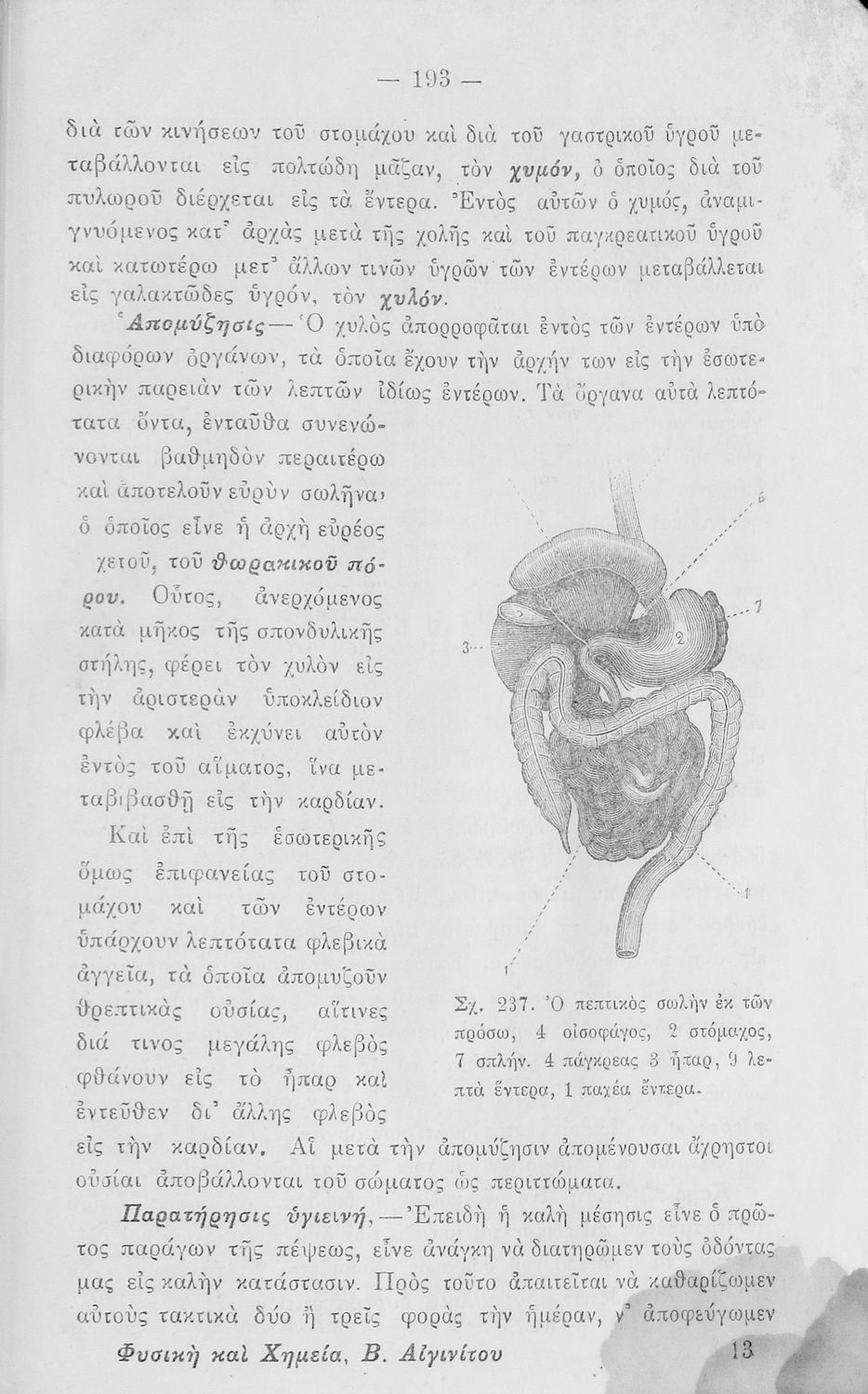 Παρουσίαση περιεχομένου: Σχολικό εγχειρίδιο για τις Τάξεις των Ελληνικών Σχολείων και Παρθεναγωγείων για το μάθημα της Φυσικής. Παρέχει βασικές γνώσεις της φυσικής επιστήμης και της χημείας. Αναλύει τις ιδιότητες των σωμάτων, καθώς και της θερμότητας, του ηλεκτρισμού και του μαγνητισμού, την υδροστατική, την βαρύτητα και την αεροστατική. Αναφέρει πολλά από τα όργανα, που χρησιμοποιούνται στη φυσική, καθώς και τις πρακτικές εφαρμογές της επιστήμης στην καθημερινότητα. Περιέχει εικόνες και σχεδιαγράμματα τα οποία βοηθούν τη διδασκαλία.