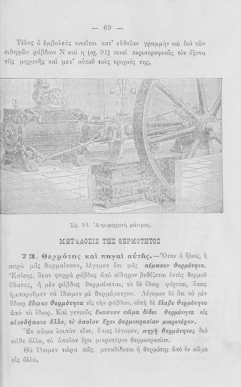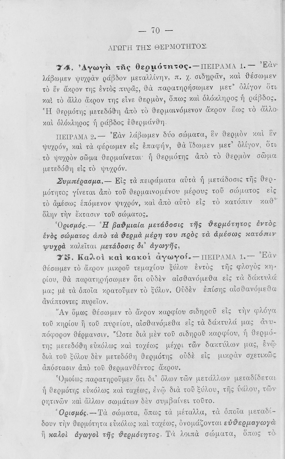 Σχολικό εγχειρίδιο Φυσικής για τα Ελληνικά Σχολεία και Παρθεναγωγεία που εστιάζει στα φυσικά φαινόμενα της θερμότητας, του ηλεκτρισμού και του μαγνητισμού, της υδροστατικής, της βαρύτητας και της αεροστατικής.