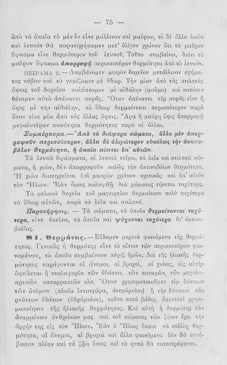 Σχολικό εγχειρίδιο Φυσικής για τα Ελληνικά Σχολεία και Παρθεναγωγεία που εστιάζει στα φαινόμενα της θερμότητας, του ηλεκτρισμού και του μαγνητισμού, τις δυνάμεις και την πίεση.