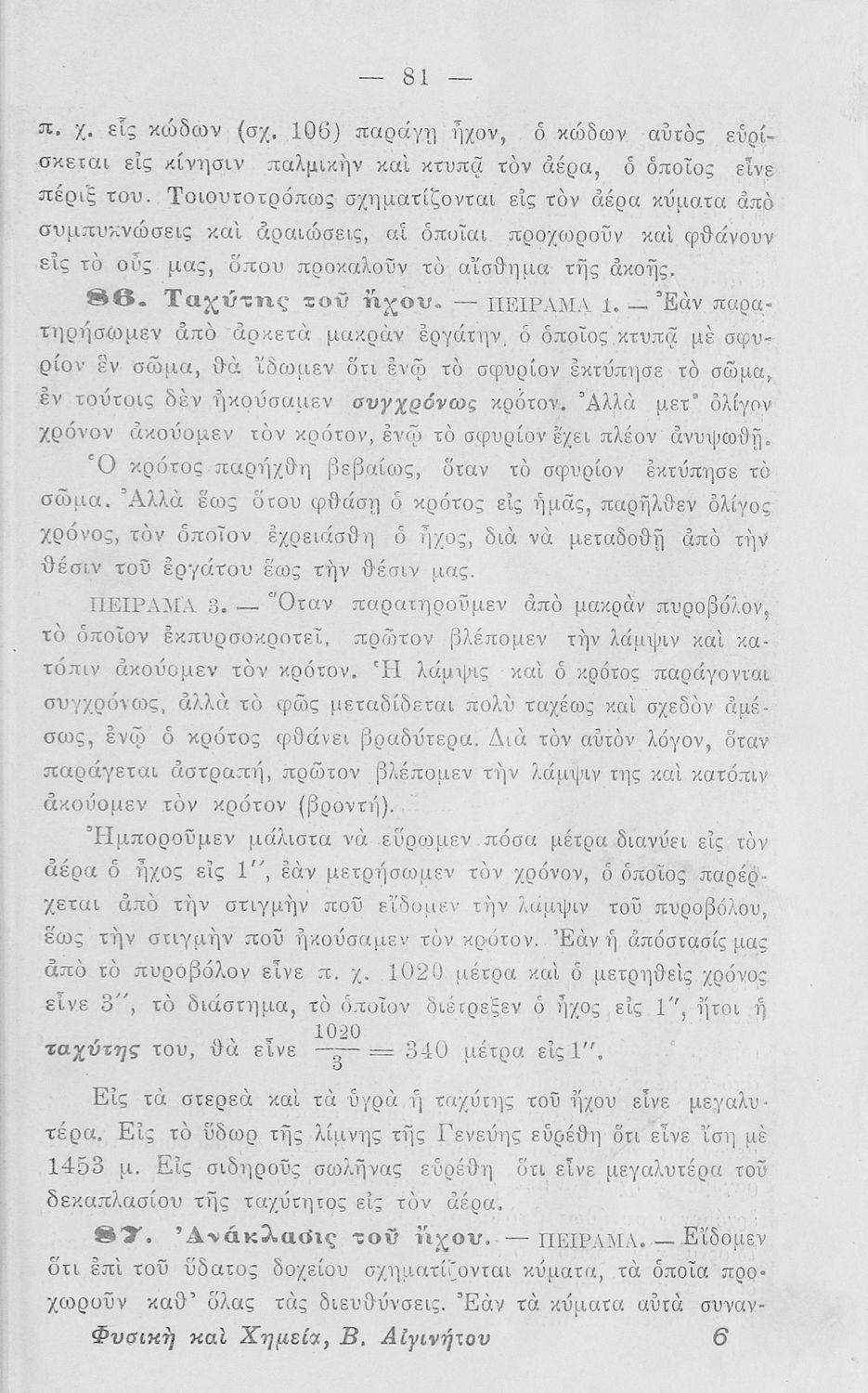 Σχολικό εγχειρίδιο Φυσικής για τα Ελληνικά Σχολεία και Παρθεναγωγεία που εστιάζει στα φυσικά φαινόμενα της θερμότητας, του ηλεκτρισμού και του μαγνητισμού, της υδροστατικής, της βαρύτητας και της αεροστατικής.