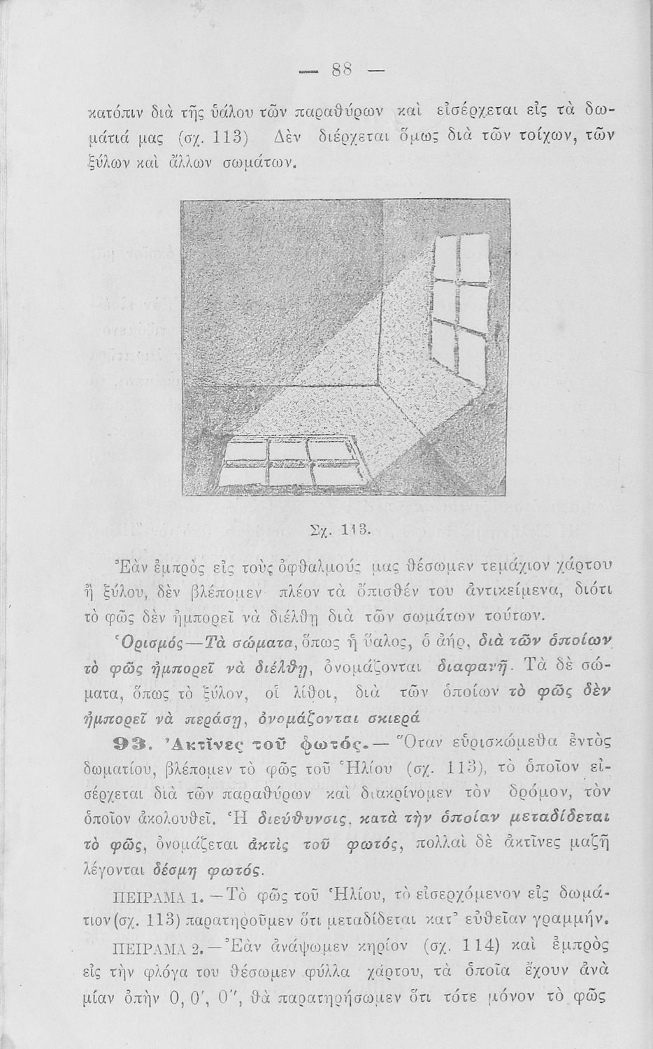 Παρουσίαση περιεχομένου: Σχολικό εγχειρίδιο για τις Τάξεις των Ελληνικών Σχολείων και Παρθεναγωγείων για το μάθημα της Φυσικής. Παρέχει βασικές γνώσεις της φυσικής επιστήμης και της χημείας. Αναλύει τις ιδιότητες των σωμάτων, καθώς και της θερμότητας, του ηλεκτρισμού και του μαγνητισμού, την υδροστατική, την βαρύτητα και την αεροστατική. Αναφέρει πολλά από τα όργανα, που χρησιμοποιούνται στη φυσική, καθώς και τις πρακτικές εφαρμογές της επιστήμης στην καθημερινότητα. Περιέχει εικόνες και σχεδιαγράμματα τα οποία βοηθούν τη διδασκαλία.