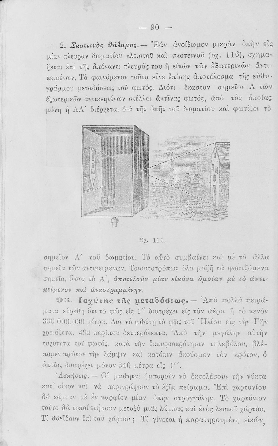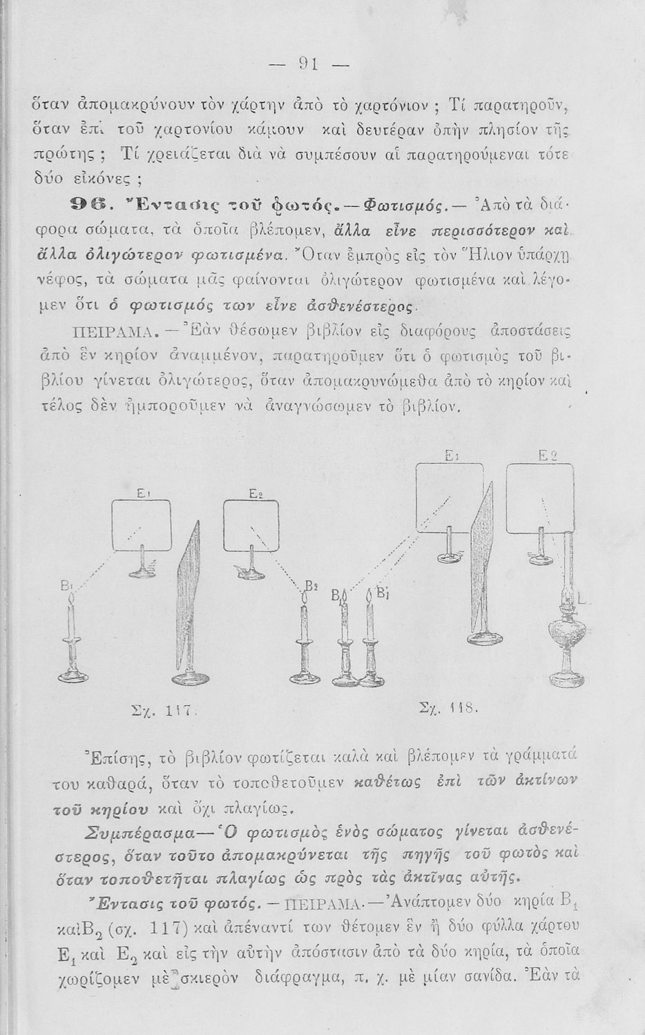 Σχολικό εγχειρίδιο Φυσικής για τα Ελληνικά Σχολεία και Παρθεναγωγεία που εστιάζει στα φαινόμενα της θερμότητας, του ηλεκτρισμού και του μαγνητισμού, τις δυνάμεις και την πίεση.