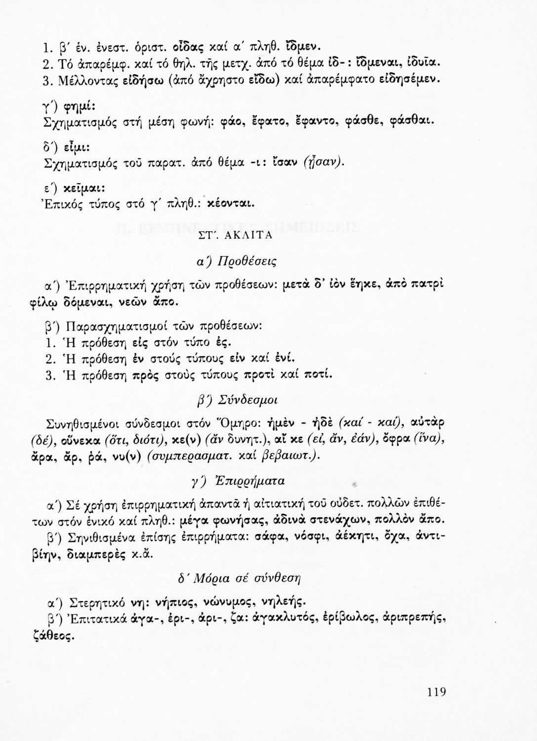 Σχολικό εγχειρίδιο Αρχαίων Ελληνικών για τις Α΄, Β΄ και Γ΄ Λυκείου που εξετάζει τα μέρη του λόγου και την σύνταξή τους.
