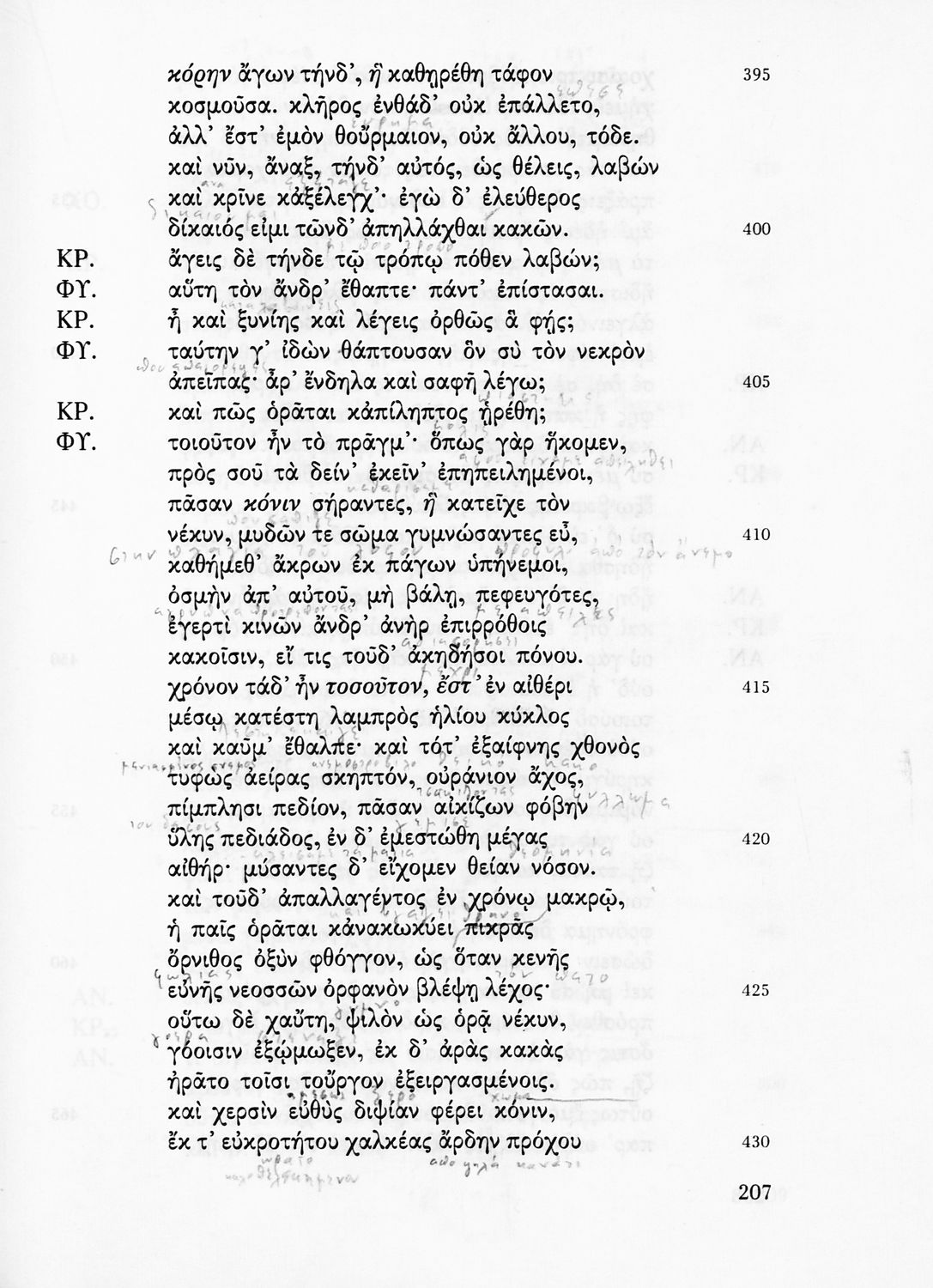 Σχολικό εγχειρίδιο Αρχαίων Ελληνικών Γ' Λυκείου που περιλαμβάνει αποσπάσματα από έργα αρχαίων Ελλήνων συγγραφέων και γραμματικές και ερμηνευτικές παρατηρήσεις.