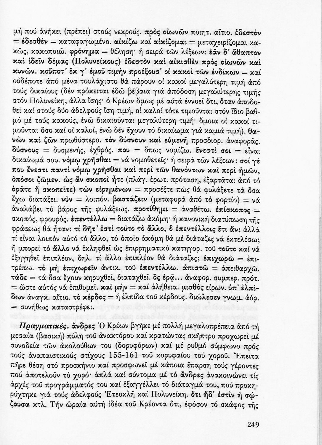 Σχολικό εγχειρίδιο Αρχαίων Ελληνικών Γ' Λυκείου που περιλαμβάνει αποσπάσματα από έργα αρχαίων Ελλήνων συγγραφέων και γραμματικές και ερμηνευτικές παρατηρήσεις.