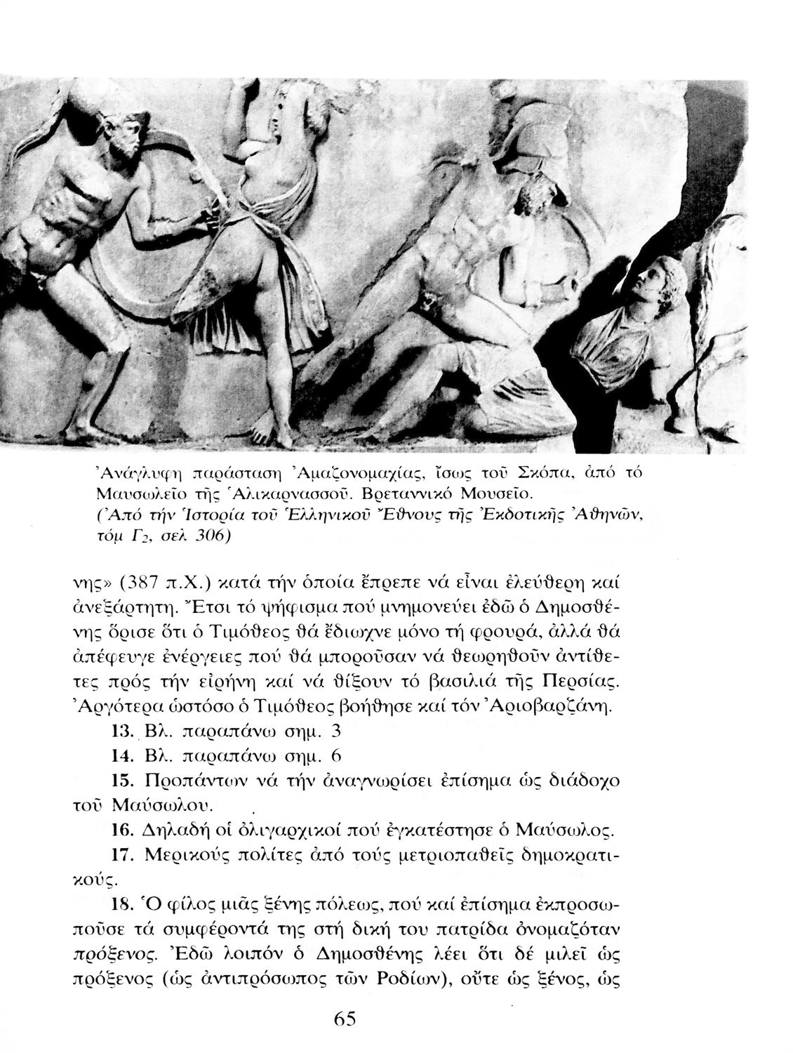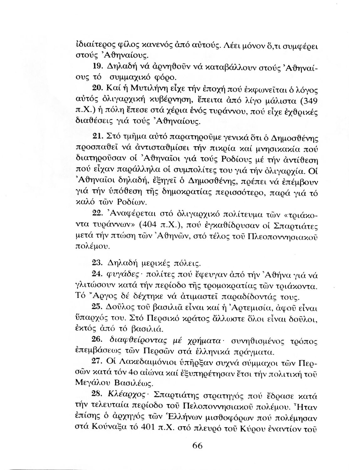 Σχολικό εγχειρίδιο Αρχαίων Ελληνικών Γ΄ Γυμνασίου περιλαμβάνει εισαγωγή στη ζωή και το έργο του Δημοσθένη, τους Λόγους του Γ΄ Ολυνθιακός και Υπέρ της ελευθερίας των Ροδίων σε μετάφραση και ερμηνευτικές ...