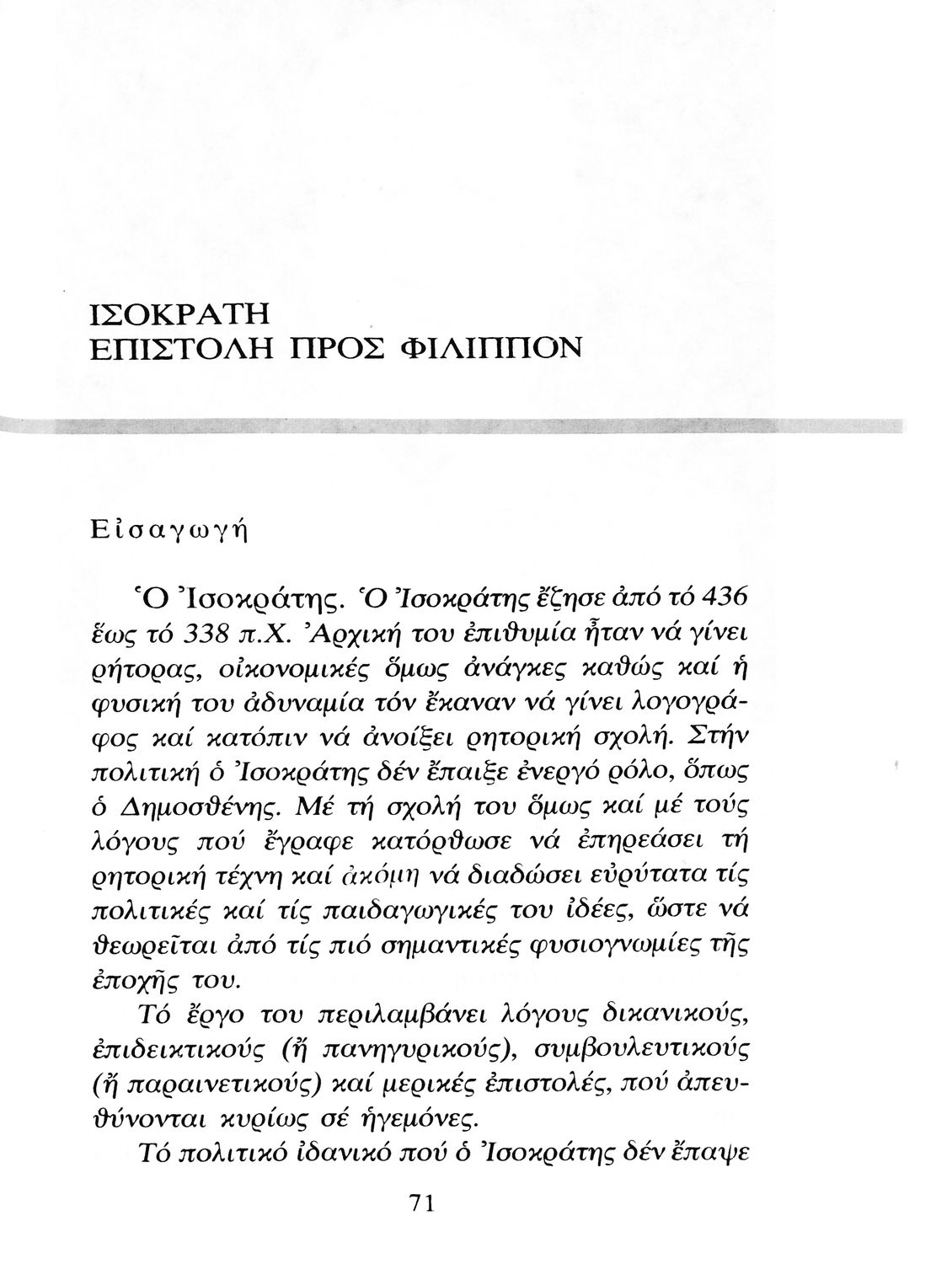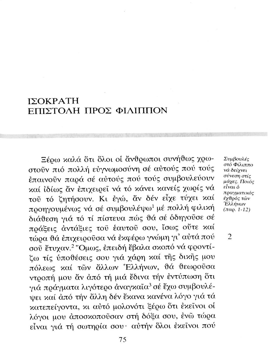 Λόγοι του Δημοσθένη Γ ΄ Ολυνθιακός – Υπέρ της Ελευθερίας των Ροδίων – Ισοκράτη Επιστολή προς Φίλιππον, Β΄ Γυμνασίου