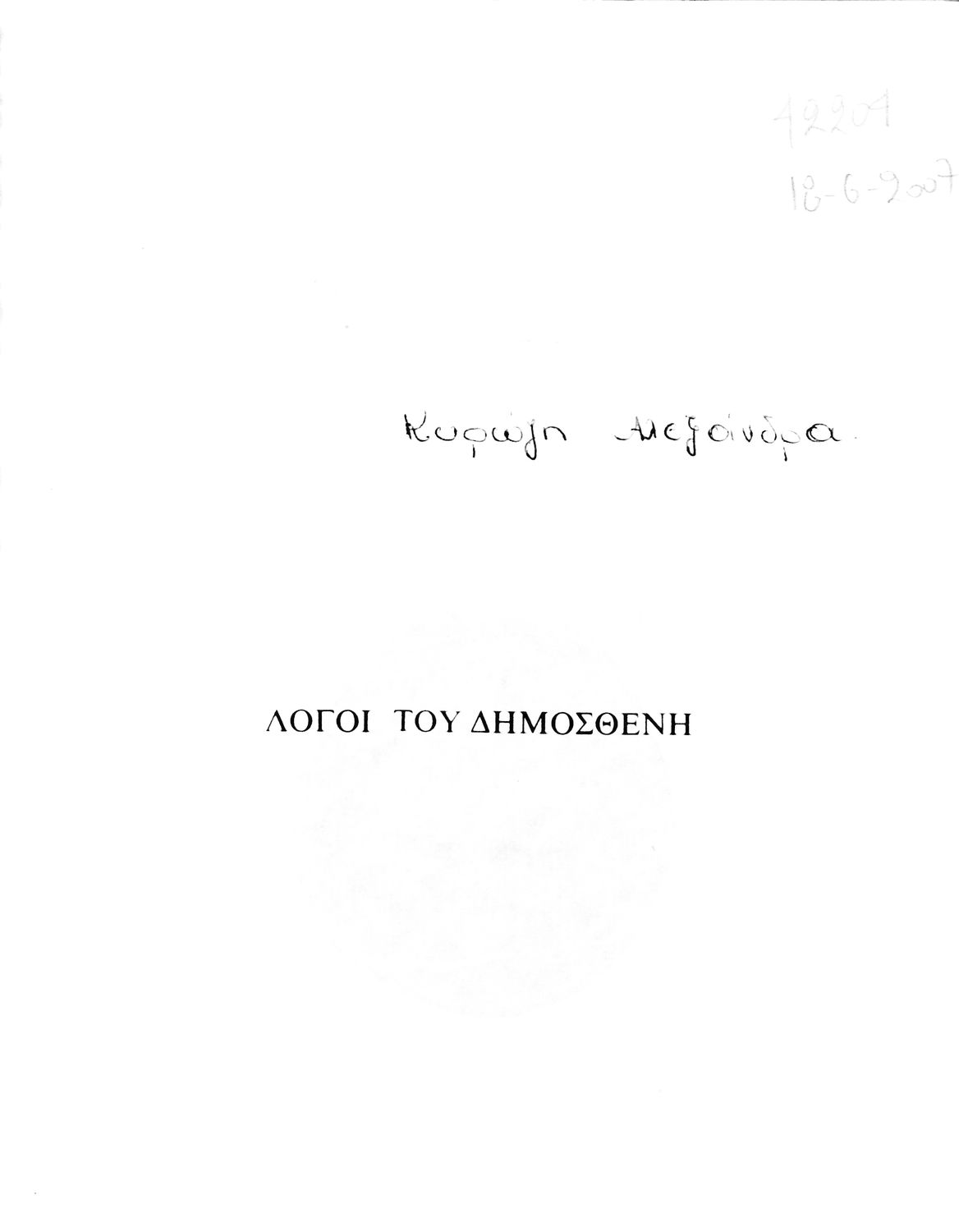 Παρουσίαση περιεχομένου: Σχολικό εγχειρίδιο Αρχαίων Ελληνικών Γ΄ Γυμνασίου περιλαμβάνει εισαγωγή στη ζωή και το έργο του Δημοσθένη, τους Λόγους του Γ΄ Ολυνθιακός και Υπέρ της ελευθερίας των Ροδίων σε μετάφραση και ερμηνευτικές σημειώσεις.