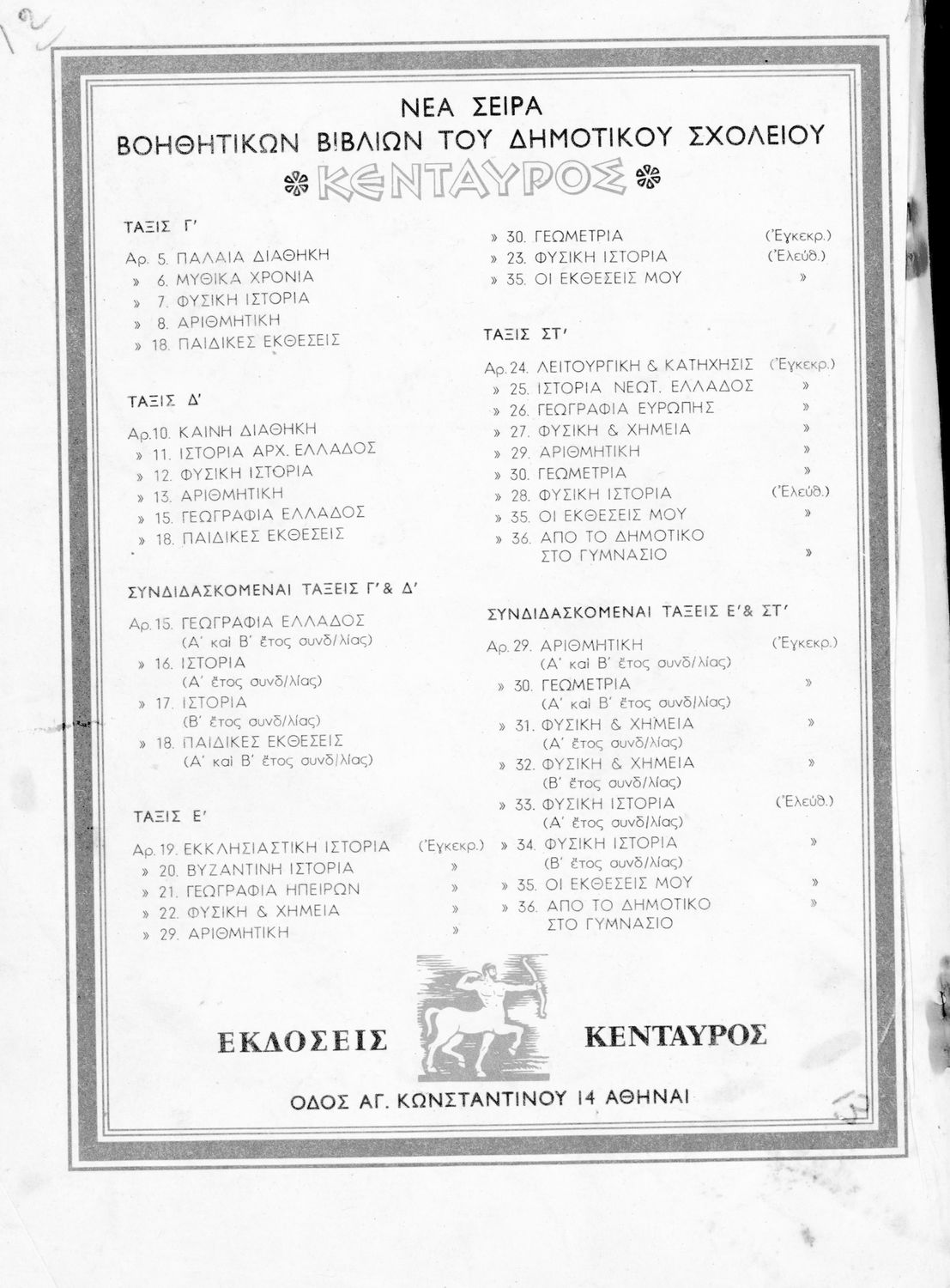 Τάξη:  Γ' Δημοτικού / Δ' Δημοτικού / Παρθεναγωγείο