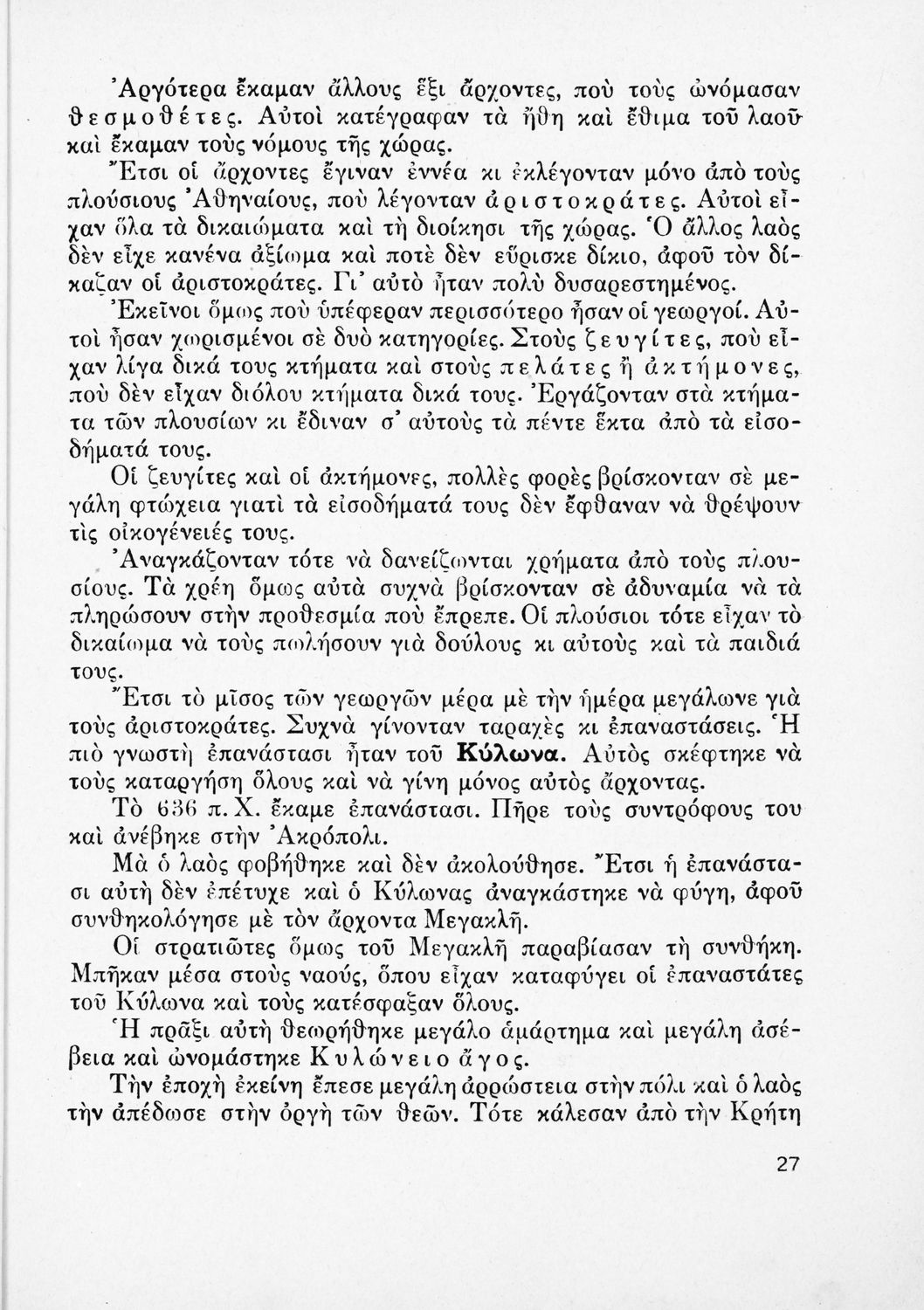 LDR 01145 2200205 4500 035 ## _a01-42206 040 ## _aΙνστιτούτο Εκπαιδευτικής Πολιτικής 041 ## _ael 100 ## _aΓεωργ. Κ. Μαυρίας _aΚων. Α. Βοσταντζής 110 ## _a42206 245 0# _aΙστορία Αρχαίας Ελλάδος για την Τετάρτη Τάξι του Δημοτικού Σχολείου 260 ## _aΑθήνα _bΚένταυρος _c1960 300 ## _a120 _bΣκίτσα, χάρτης, εικόνες (ασπρόμαυρα) 520 ## _aΜαθητικό βοήθημα Ιστορίας Δ΄ Δημοτικού που καλύπτει την περίοδο από τους μυθικούς και ηρωικούς χρόνους ως κατάληψη της Ελλάδας από τους Ρωμαίους. 521 ## _aΔ' Δημοτικού 522 ## _aΕλλάδα 546 ## _aΔημοτική 563 ## _aΜαλακό Εξώφυλλο 650 #4 _aΑλέξανδρος _aΚίμων _aΛυκούργος _aΠερσικοί πόλεμοι _aΠύρρος _aΦίλιππος 700 ## _aΧριστοδάγλης