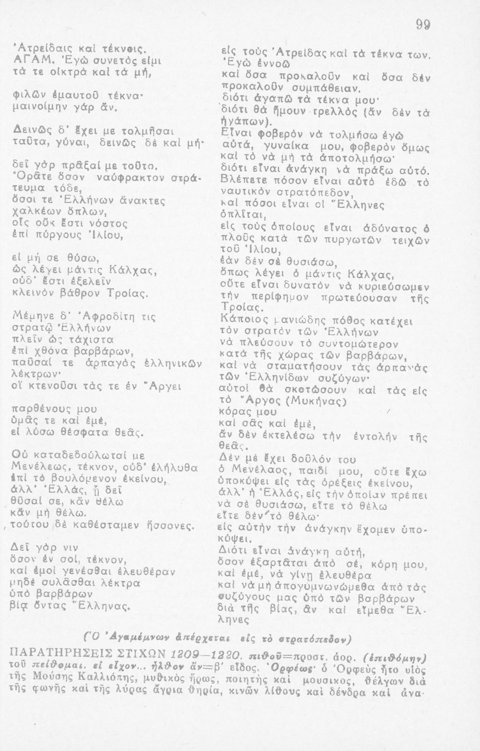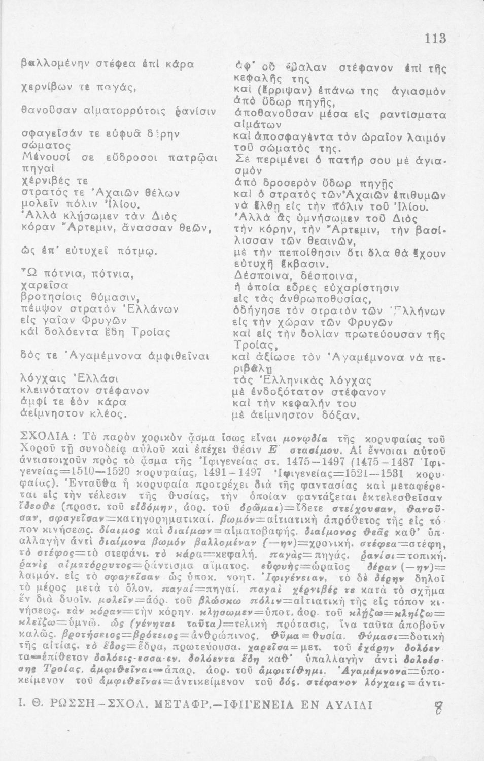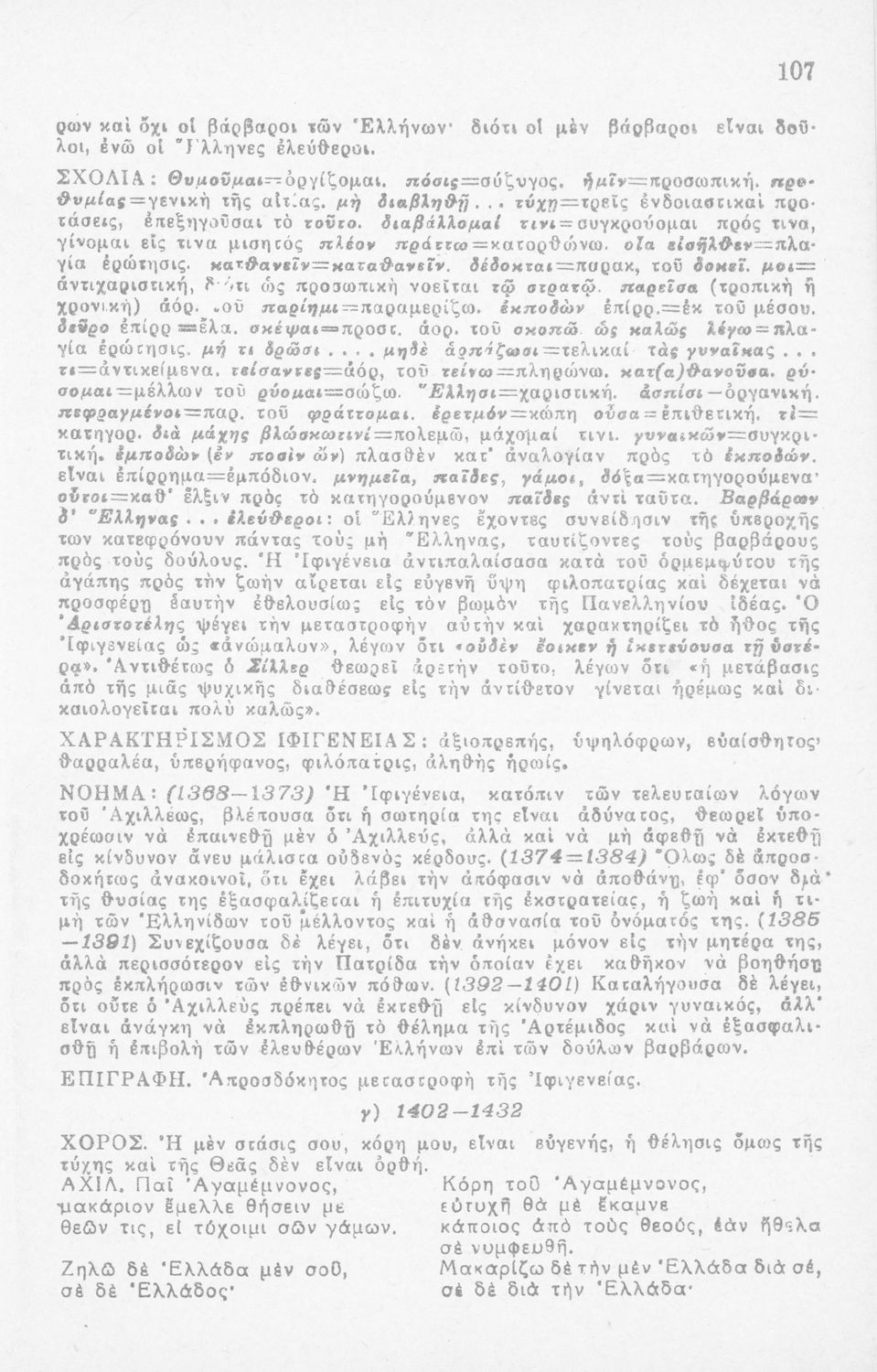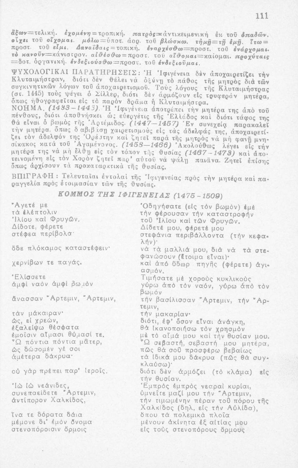 Μαθητικό βοήθημα Αρχαίων Ελληνικών για την Ε' Γυμνασίου που περιλαμβάνει μετάφραση, ερμηνευτικά, γραμματικά και συντακτικά σχόλια στην Ιφιγένεια η εν Αυλίδι.