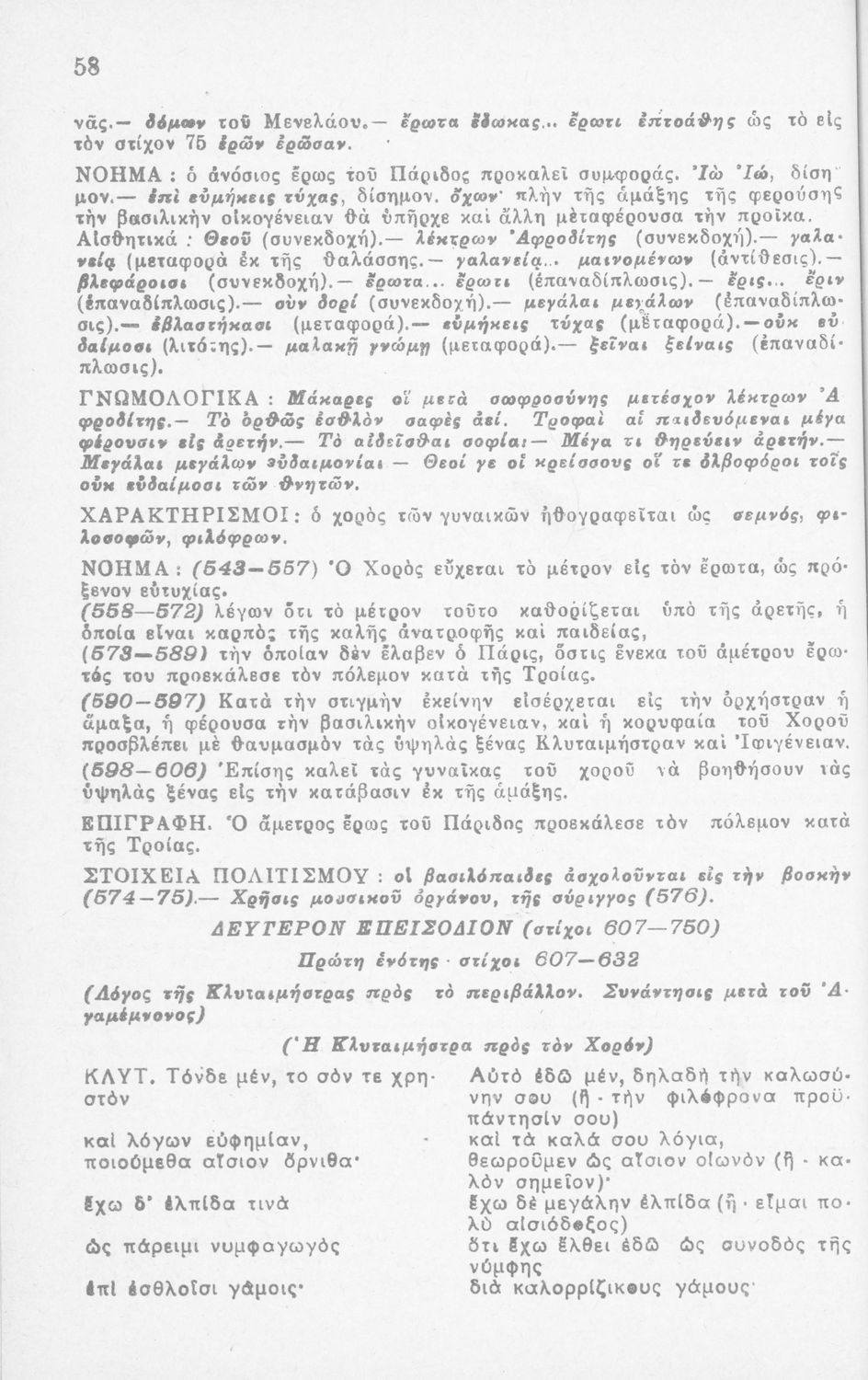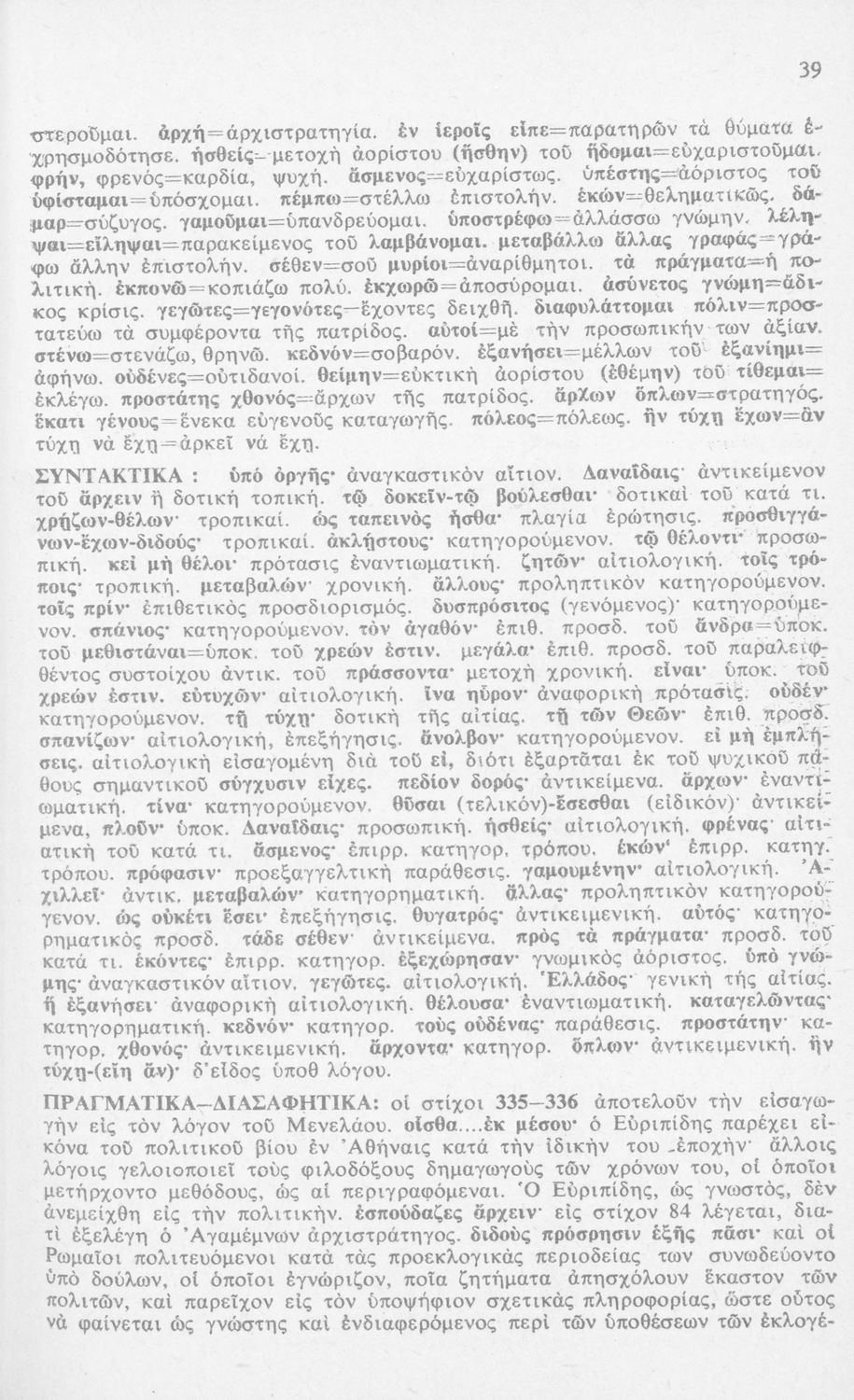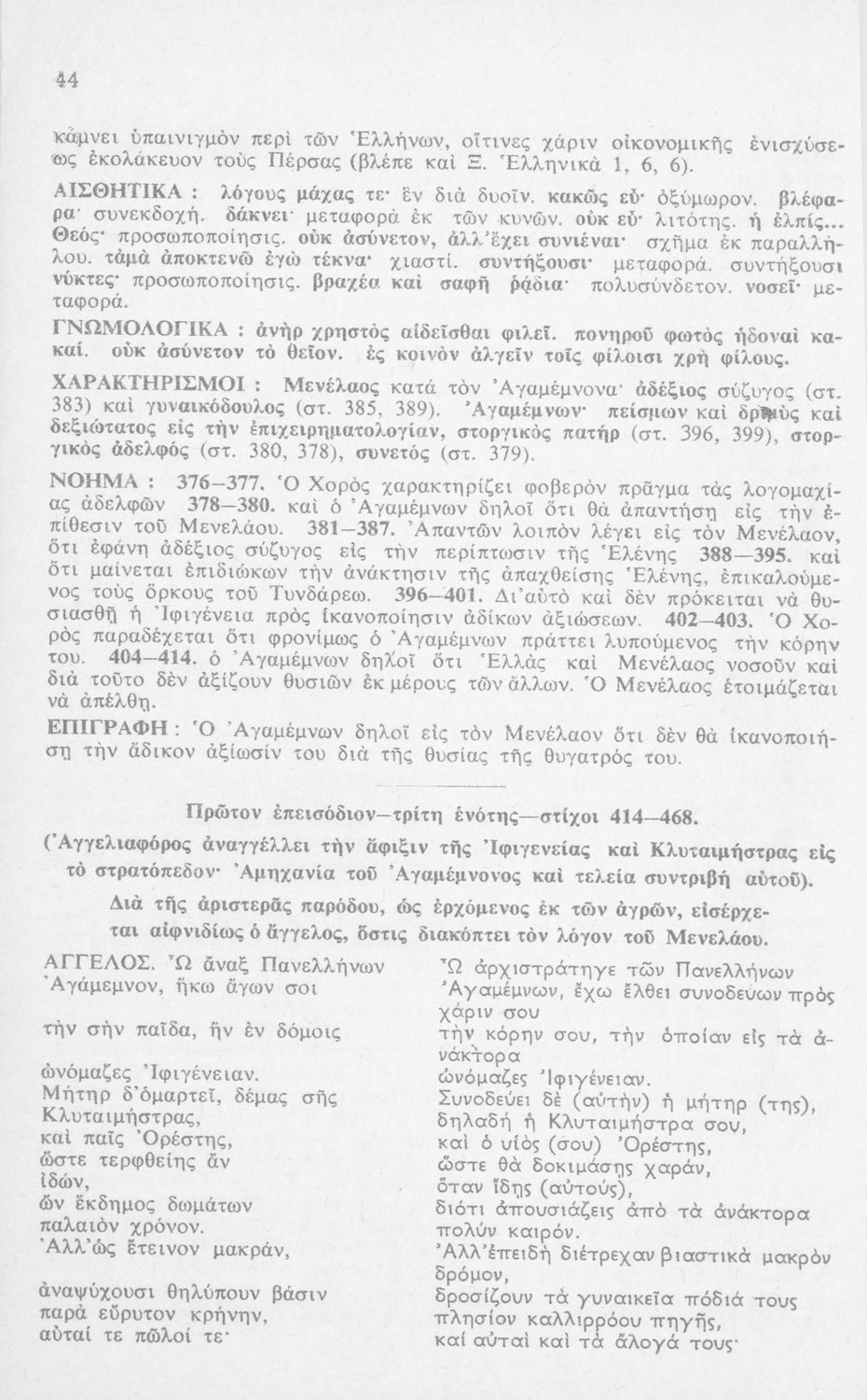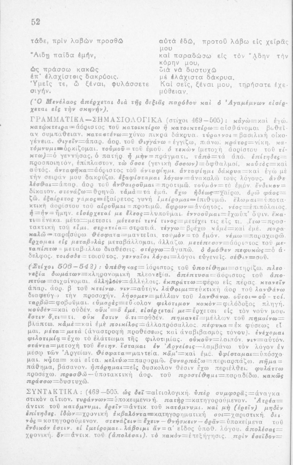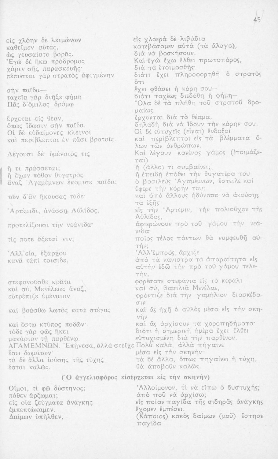 Μαθητικό βοήθημα Αρχαίων Ελληνικών για την Ε' Γυμνασίου που περιλαμβάνει μετάφραση, ερμηνευτικά, γραμματικά και συντακτικά σχόλια στην Ιφιγένεια η εν Αυλίδι.