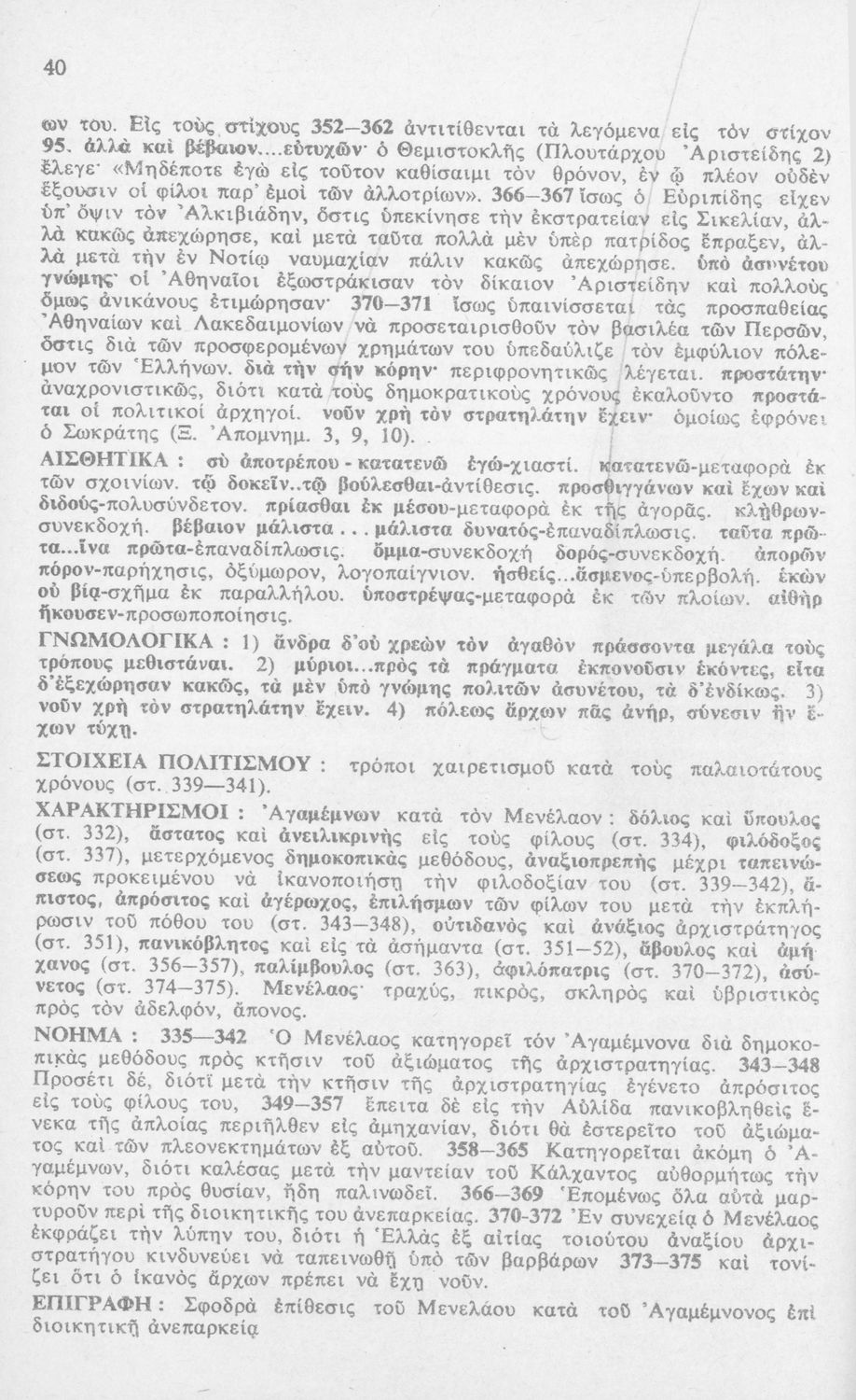 Μαθητικό βοήθημα Αρχαίων Ελληνικών για την ΣΤ΄ Γυμνασίου. Περιλαμβάνει μετάφραση, ερμηνευτικά, γραμματικά και συντακτικά σχόλια καθώς και το νόημα του σχολικού βιβλίου.