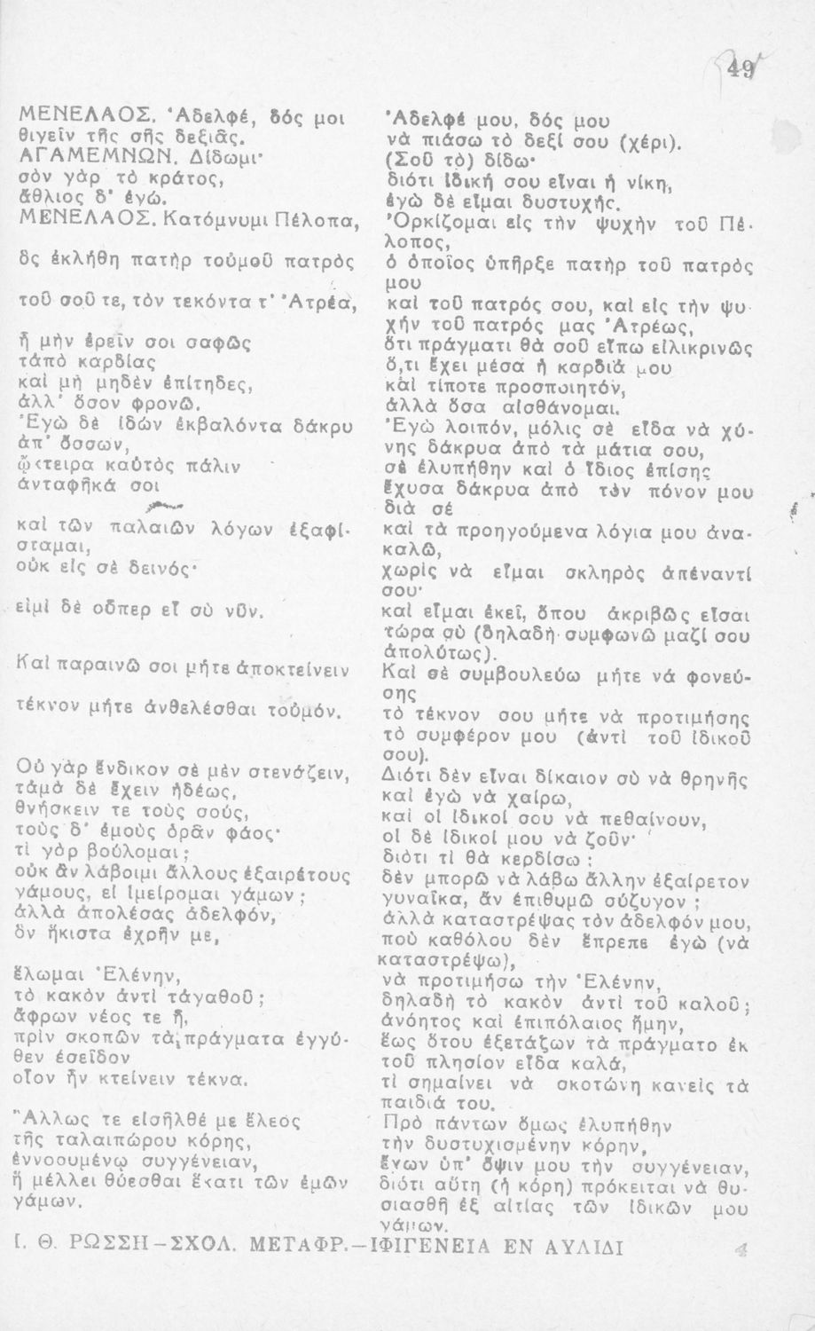 Ευριπίδου, Ιφιγένεια η εν Αυλίδι δια τους μαθητάς της Ε΄ τάξεως των εξατάξιων Γυμνασίων κατά το εγκεκριμένον βιβλίον του Ο.Ε.Σ.Β.