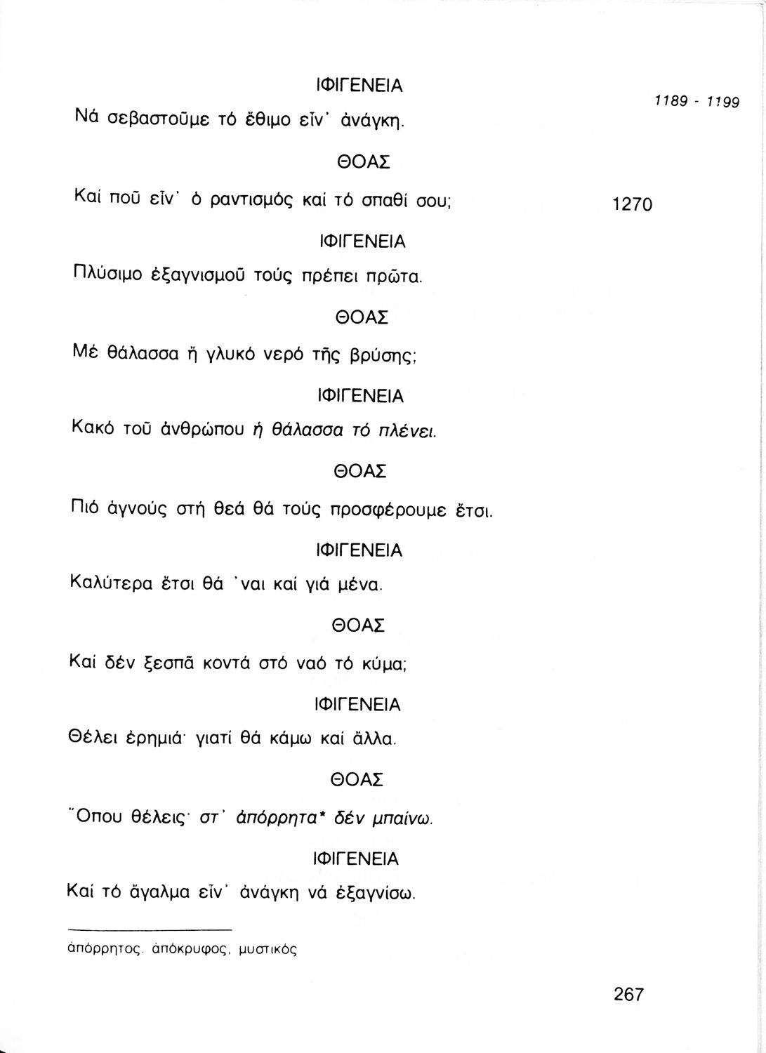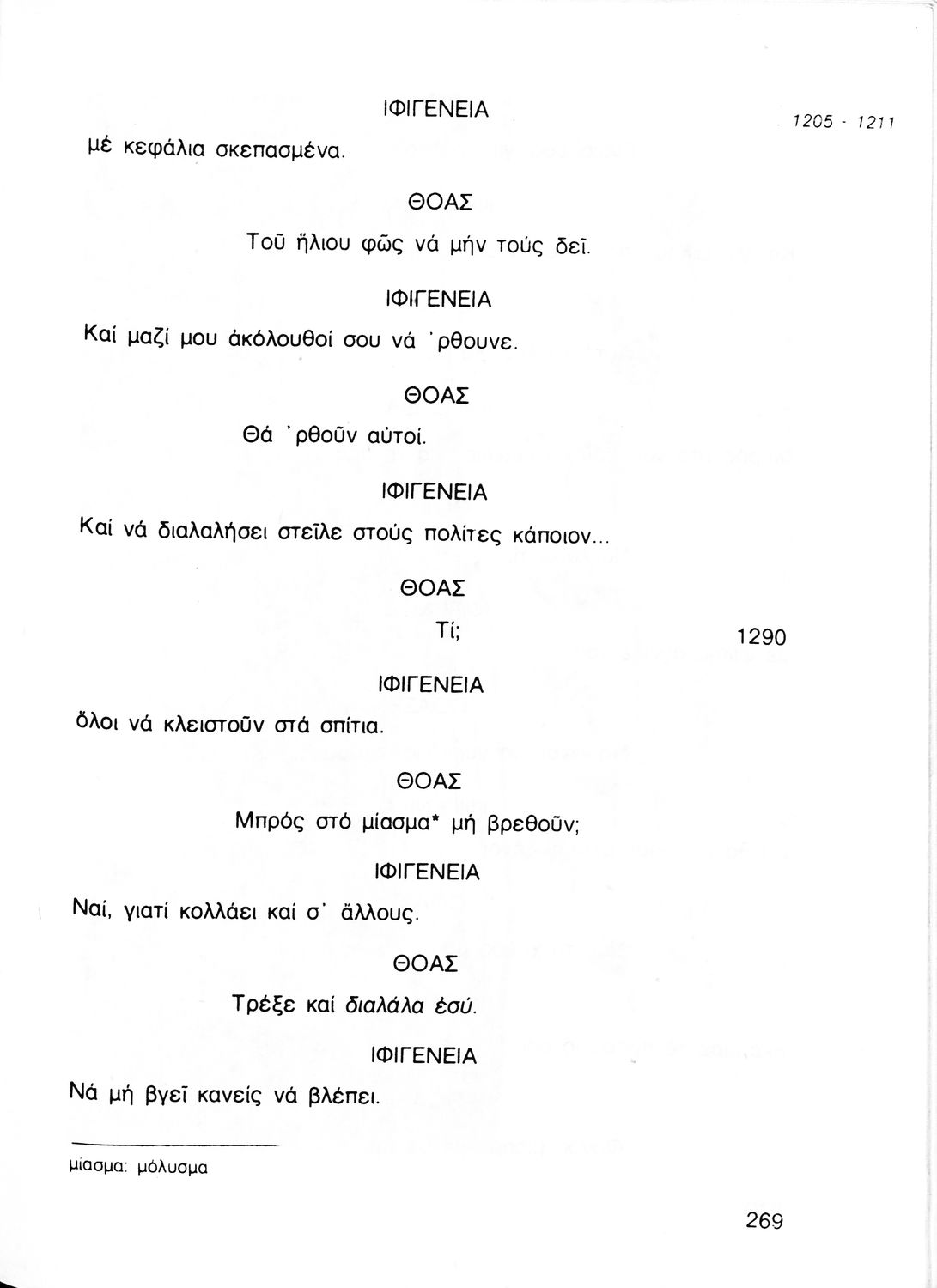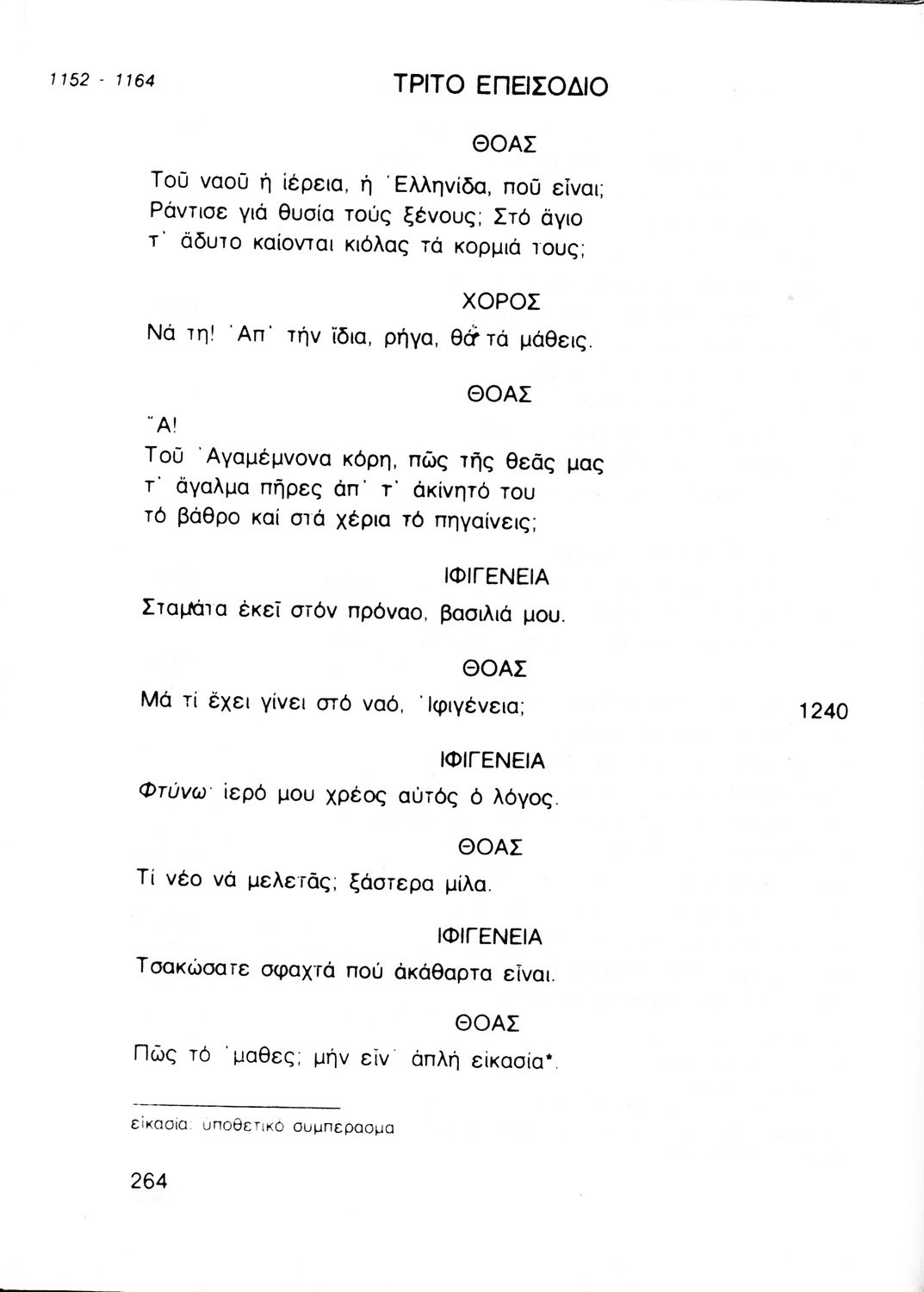 Σχολικό εγχειρίδιο Αρχαίων Ελληνικών για τη Γ' Γυμνασίου που περιλαμβάνει την τραγωδία του Ευριπίδη Ιφιγένεια η εν Αυλίδι σε μετάφραση και ερμηνευτικές σημειώσεις. Φέρει το σύμβολο της δικτατορίας.