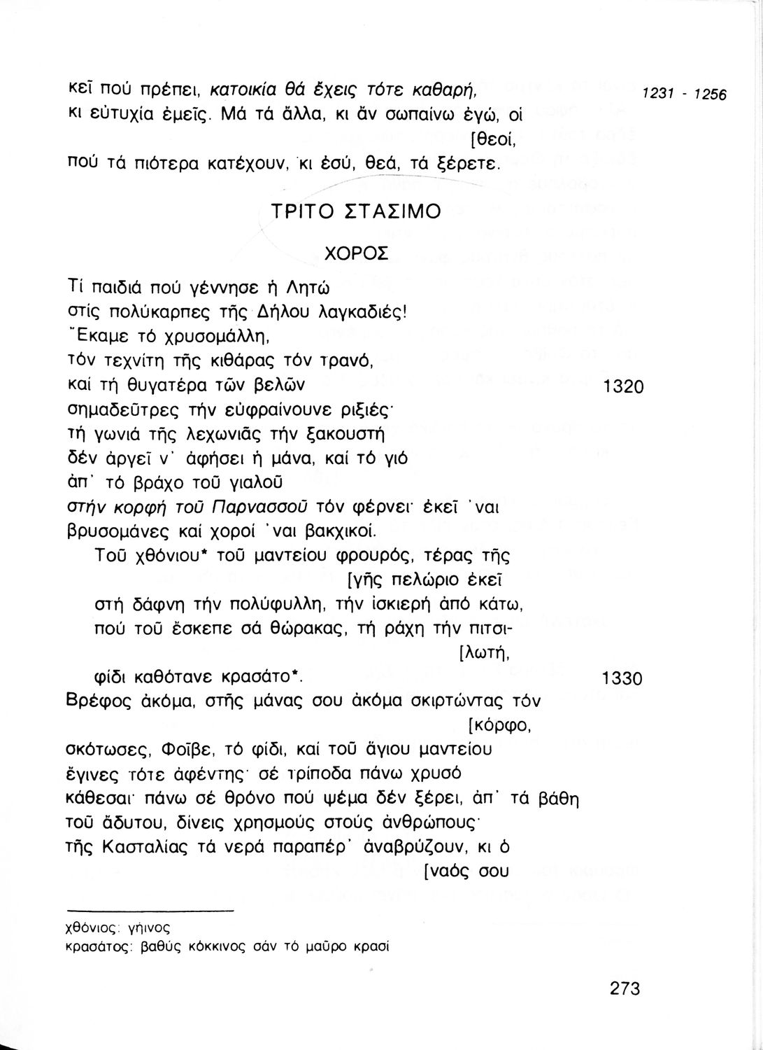Σχολικό εγχειρίδιο Αρχαίων Ελληνικών Γ΄ Γυμνασίου που περιλαμβάνει εισαγωγή στη δραματική ποίηση, το αρχαίο θέατρο και την τραγωδία, μετάφραση των έργων Προμηθέας Δεσμώτης του Αισχύλου, Αντιγόνη του Σοφοκλή και Ιφιγένεια η εν Ταύροις του Ευριπίδη και ερμηνευτικά σχόλια.