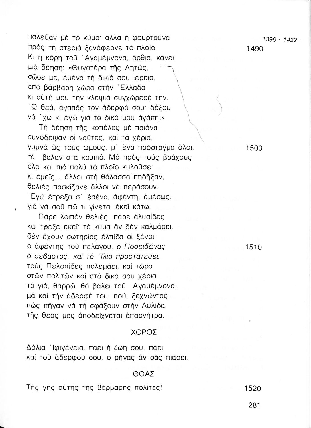 Σχολικό εγχειρίδιο Αρχαίων Ελληνικών για τη Γ' Γυμνασίου που περιλαμβάνει την τραγωδία του Ευριπίδη Ιφιγένεια η εν Αυλίδι σε μετάφραση και ερμηνευτικές σημειώσεις.