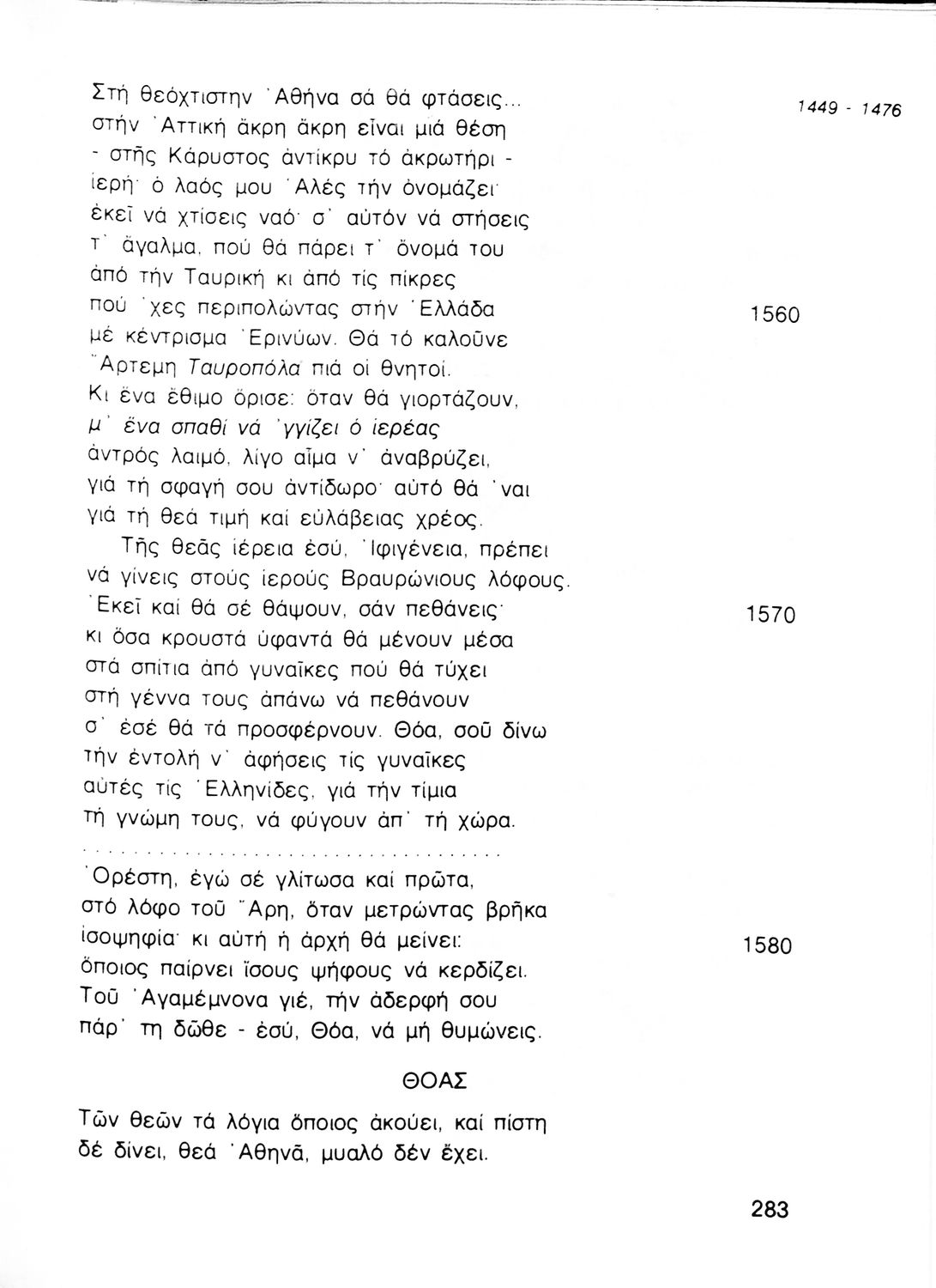 Σχολικό εγχειρίδιο Αρχαίων Ελληνικών Γ΄ Γυμνασίου που περιλαμβάνει εισαγωγή στη δραματική ποίηση, το αρχαίο θέατρο και την τραγωδία, μετάφραση των έργων Προμηθέας Δεσμώτης του Αισχύλου, Αντιγόνη του Σοφοκλή και Ιφιγένεια η εν Ταύροις του Ευριπίδη και ερμηνευτικά σχόλια.