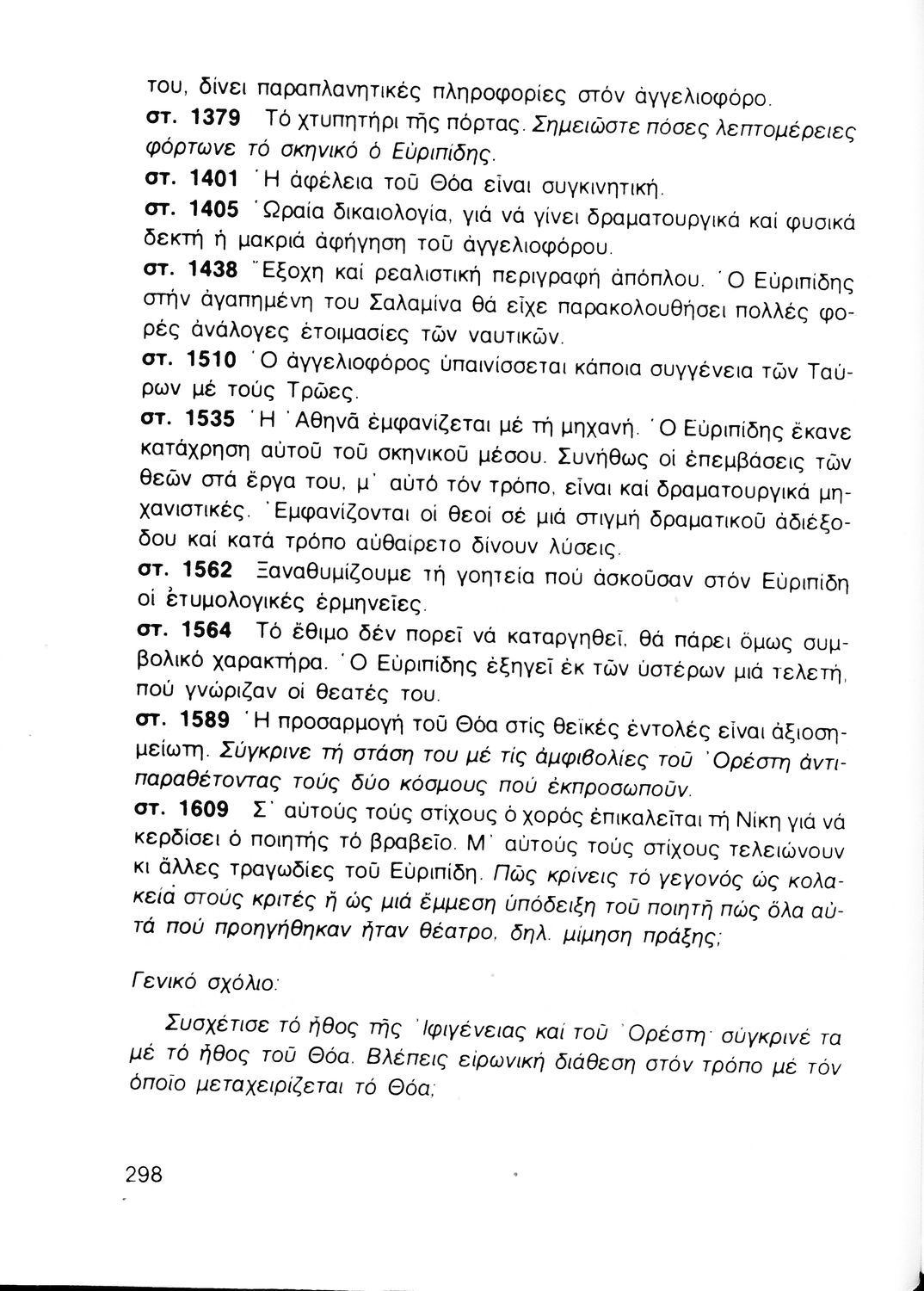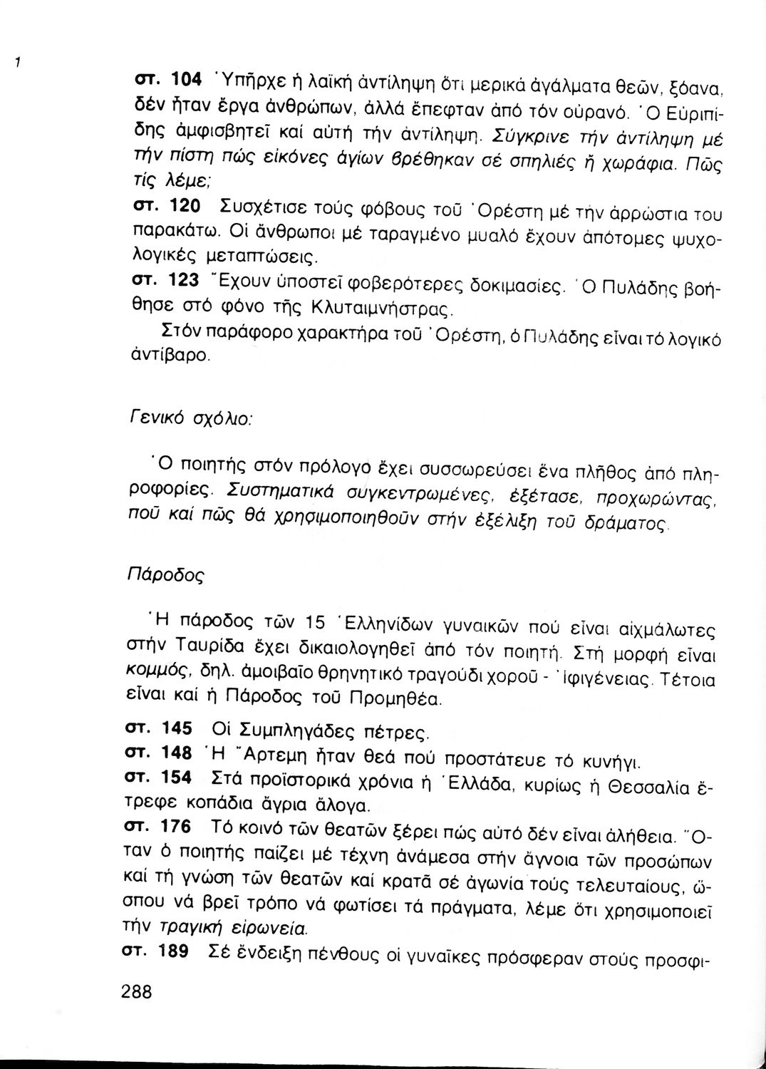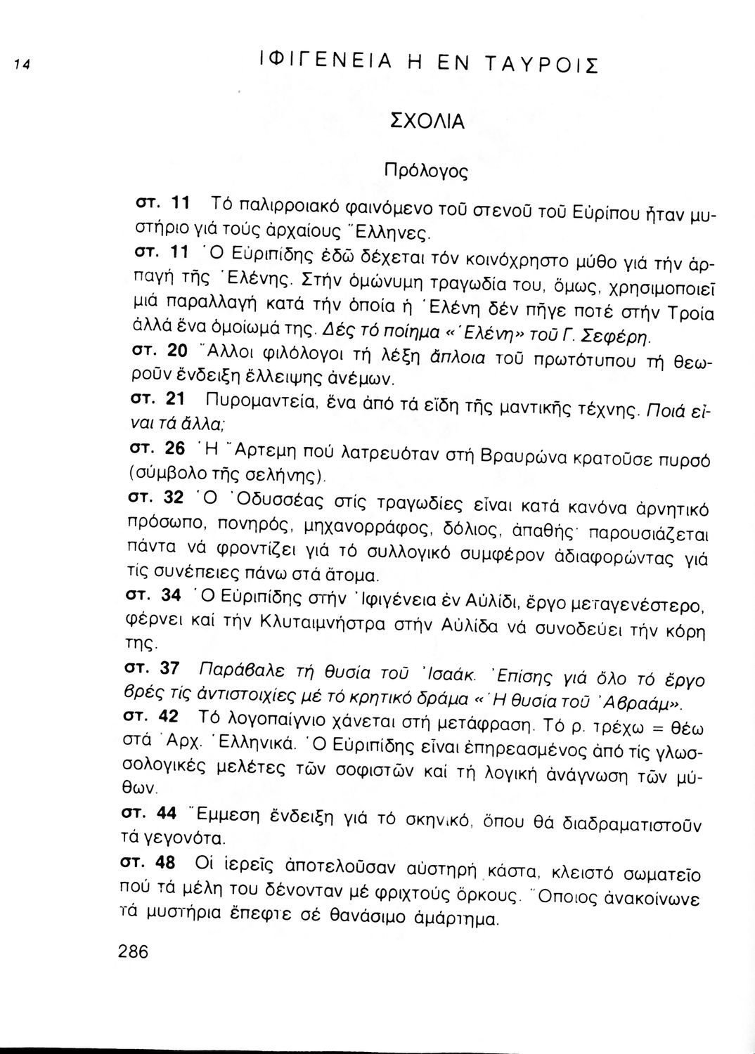 Σχολικό εγχειρίδιο Αρχαίων Ελληνικών Ζ' Γυμνασίου που περιέχει αποσπάσματα από την τραγωδία του Ευριπίδη Ιφιγένεια η εν Ταύροις, ερμηνευτικά και πραγματολογικά σχόλια και λεξιλογικές παρατηρήσεις.