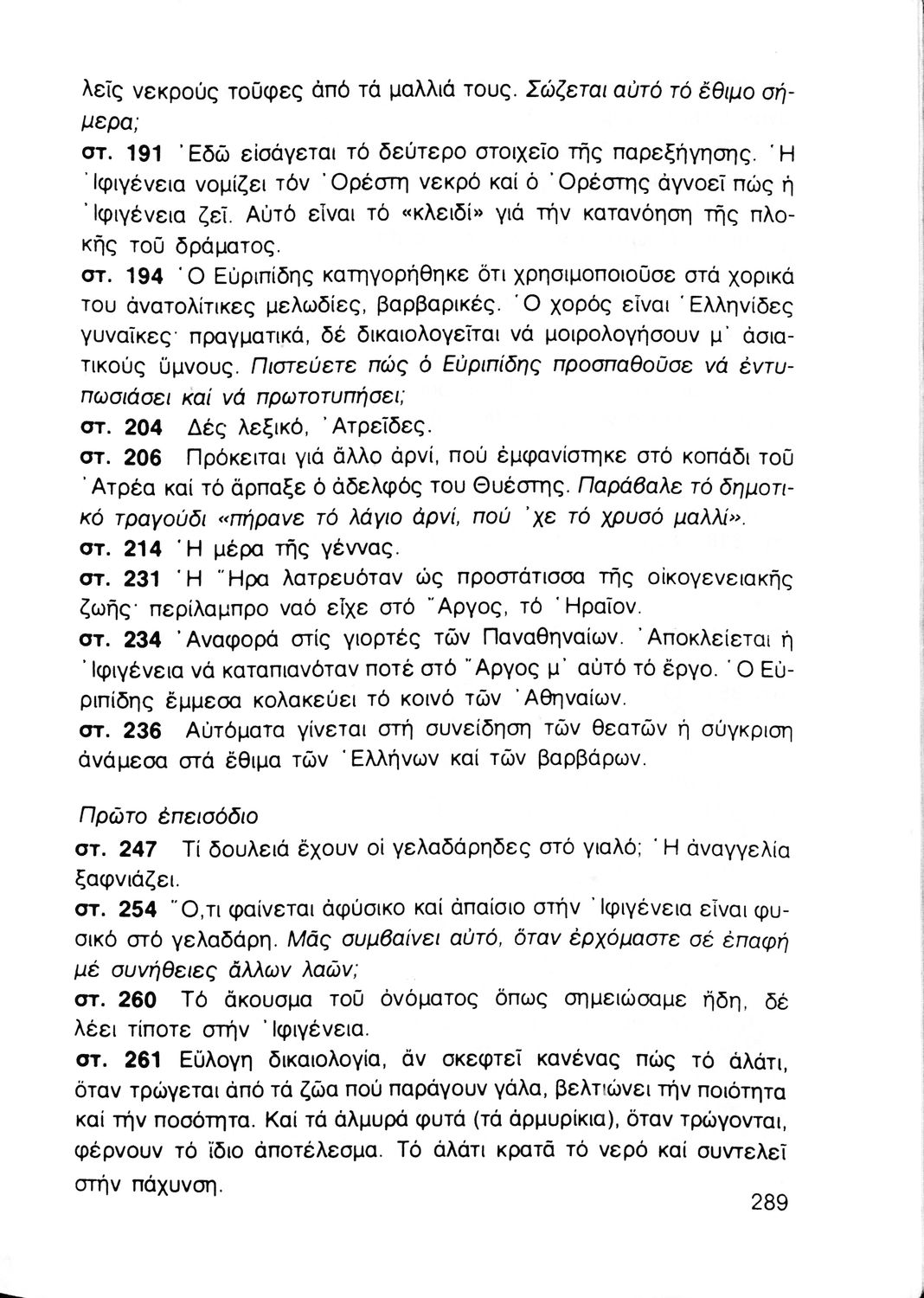 Σχολικό εγχειρίδιο Αρχαίων Ελληνικών Γυμνασίου που περιλαμβάνει αποσπάσματα από τις τραγωδίες του Ευριπίδη Ιφιγένεια η εν Αυλίδι και Ιφιγένεια η εν Ταύροις, ερμηνευτικά και πραγματολογικά σχόλια και ...