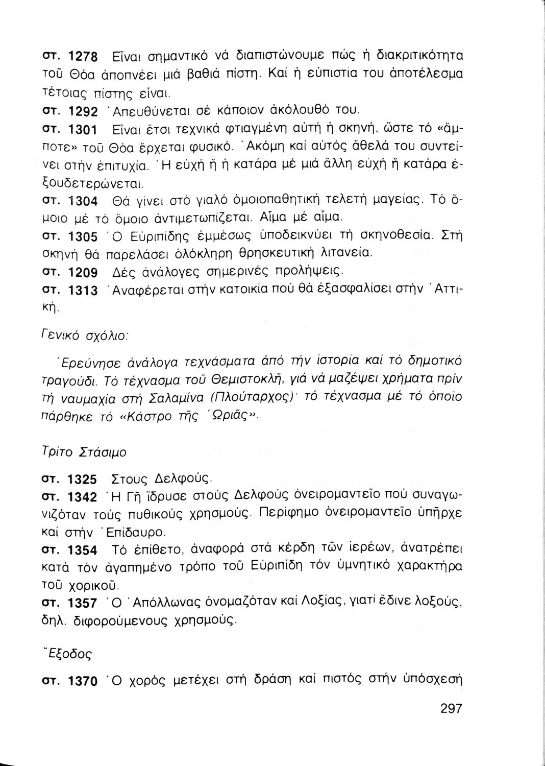 Ευριπίδης, Θ. Σταύρου, Φ Βουσβούνης (σχόλια)