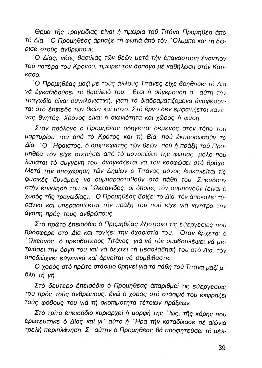 Τίτλος: Δραματική ποίηση, Αισχύλου: Προμηθεύς, Δεσμώτης Σοφοκλή: Αντιγόνη Ευριπίδη: Ιφιγένεια η εν Ταύροις, Γ΄ Γυμνασίου