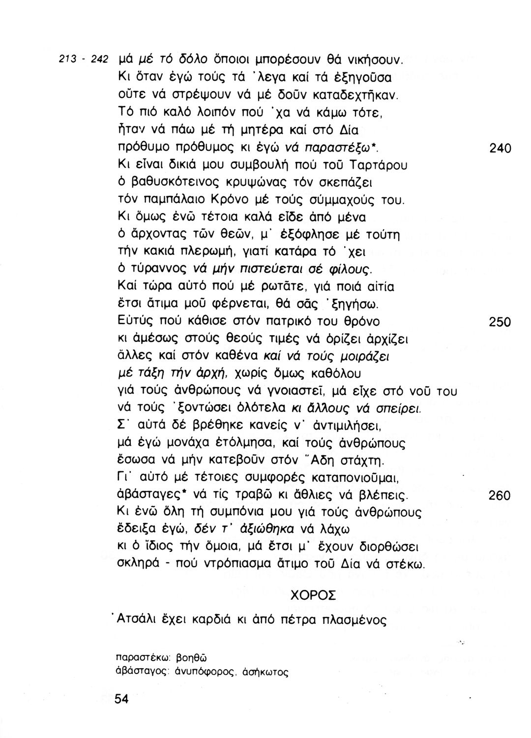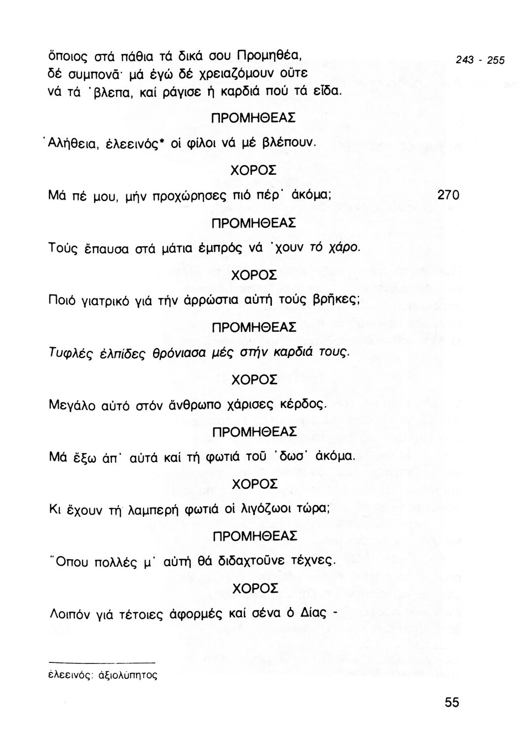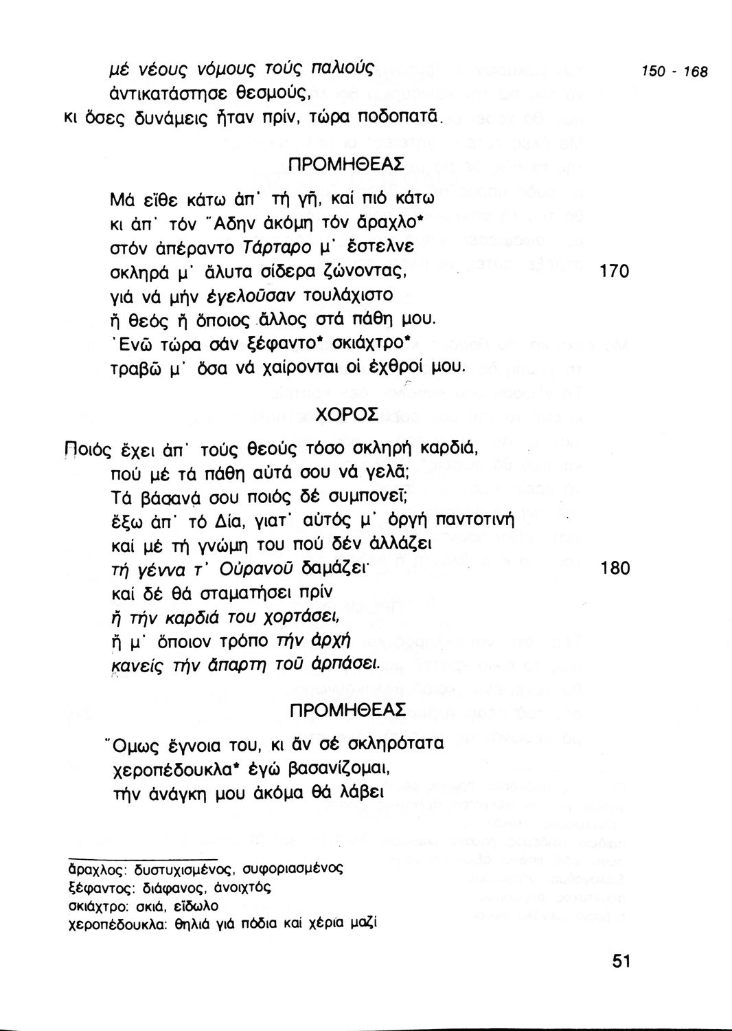Σχολικό εγχειρίδιο Αρχαίων Ελληνικών Γ΄ Γυμνασίου που περιλαμβάνει εισαγωγή στη δραματική ποίηση, το αρχαίο θέατρο και την τραγωδία, μετάφραση των έργων Προμηθέας Δεσμώτης του Αισχύλου, Αντιγόνη του Σοφοκλή και Ιφιγένεια η εν Ταύροις του Ευριπίδη και ερμηνευτικά σχόλια.