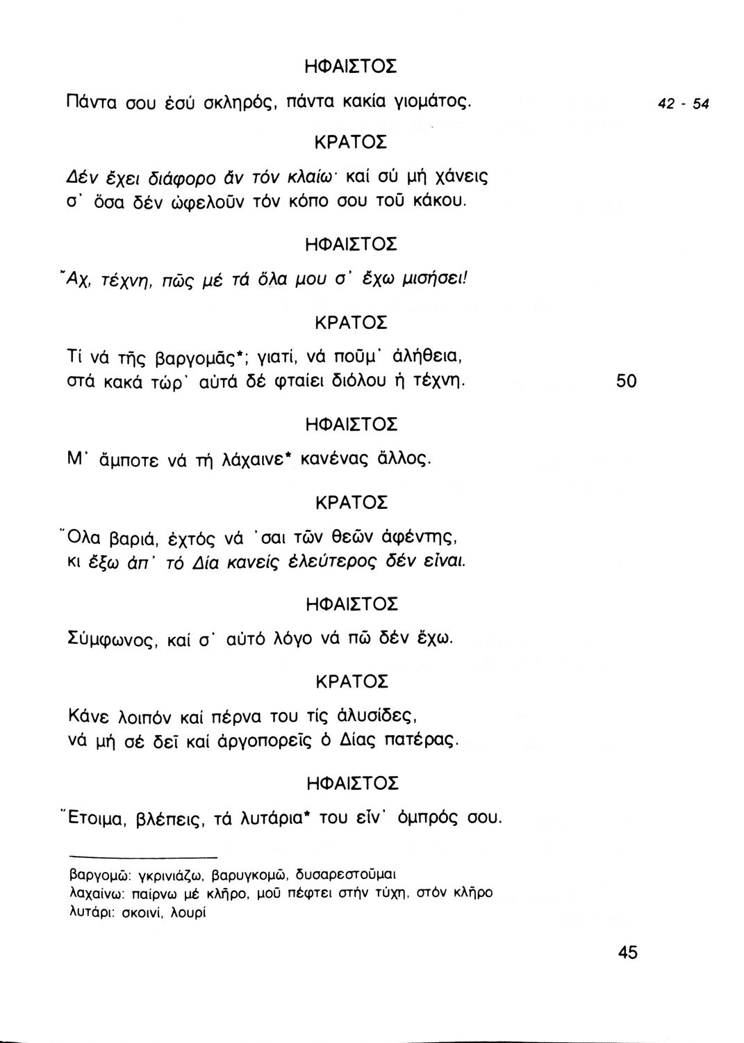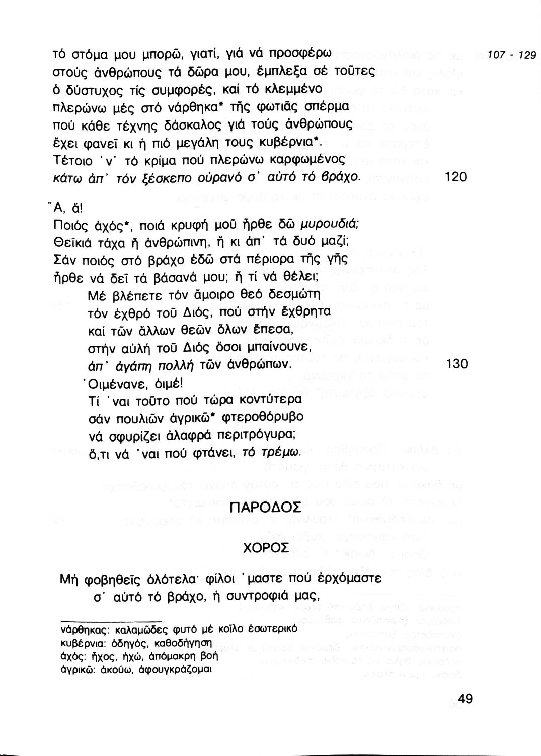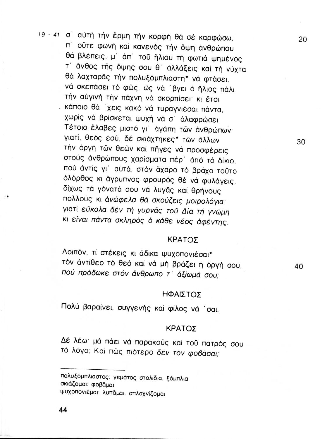 Σχολικό εγχειρίδιο Αρχαίων Ελληνικών Γ΄ Γυμνασίου που περιλαμβάνει εισαγωγή στη δραματική ποίηση, το αρχαίο θέατρο και την τραγωδία, μετάφραση των έργων Προμηθέας Δεσμώτης του Αισχύλου, Αντιγόνη του Σοφοκλή και Ιφιγένεια η εν Ταύροις του Ευριπίδη και ερμηνευτικά σχόλια.