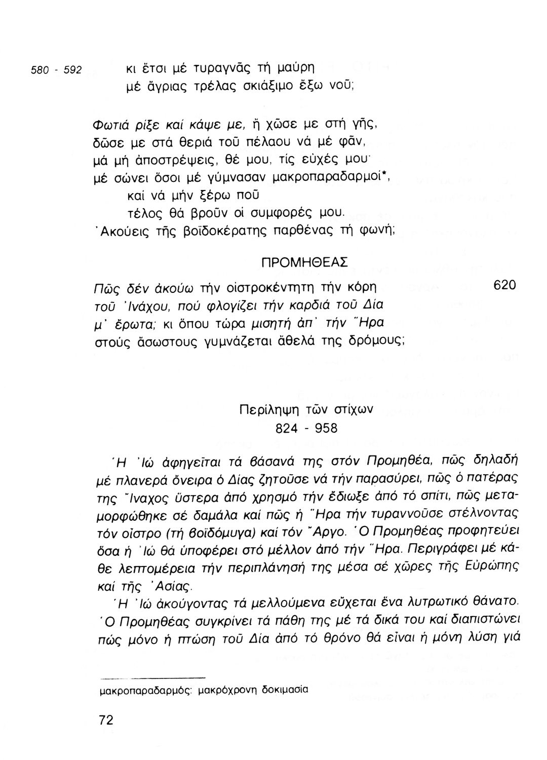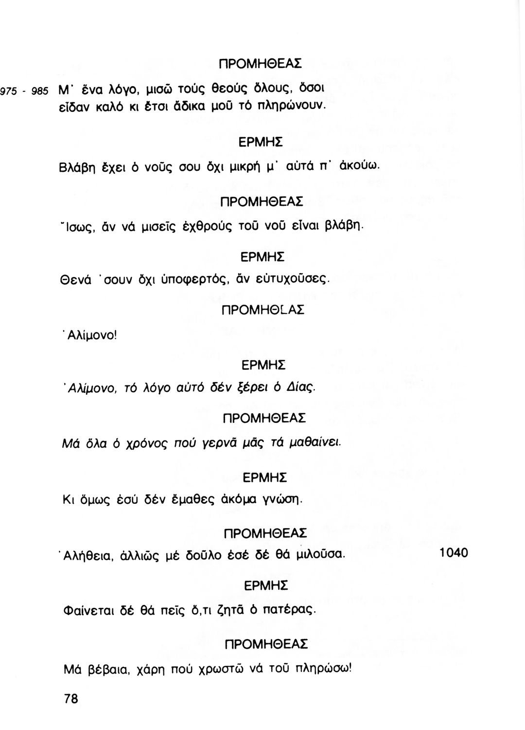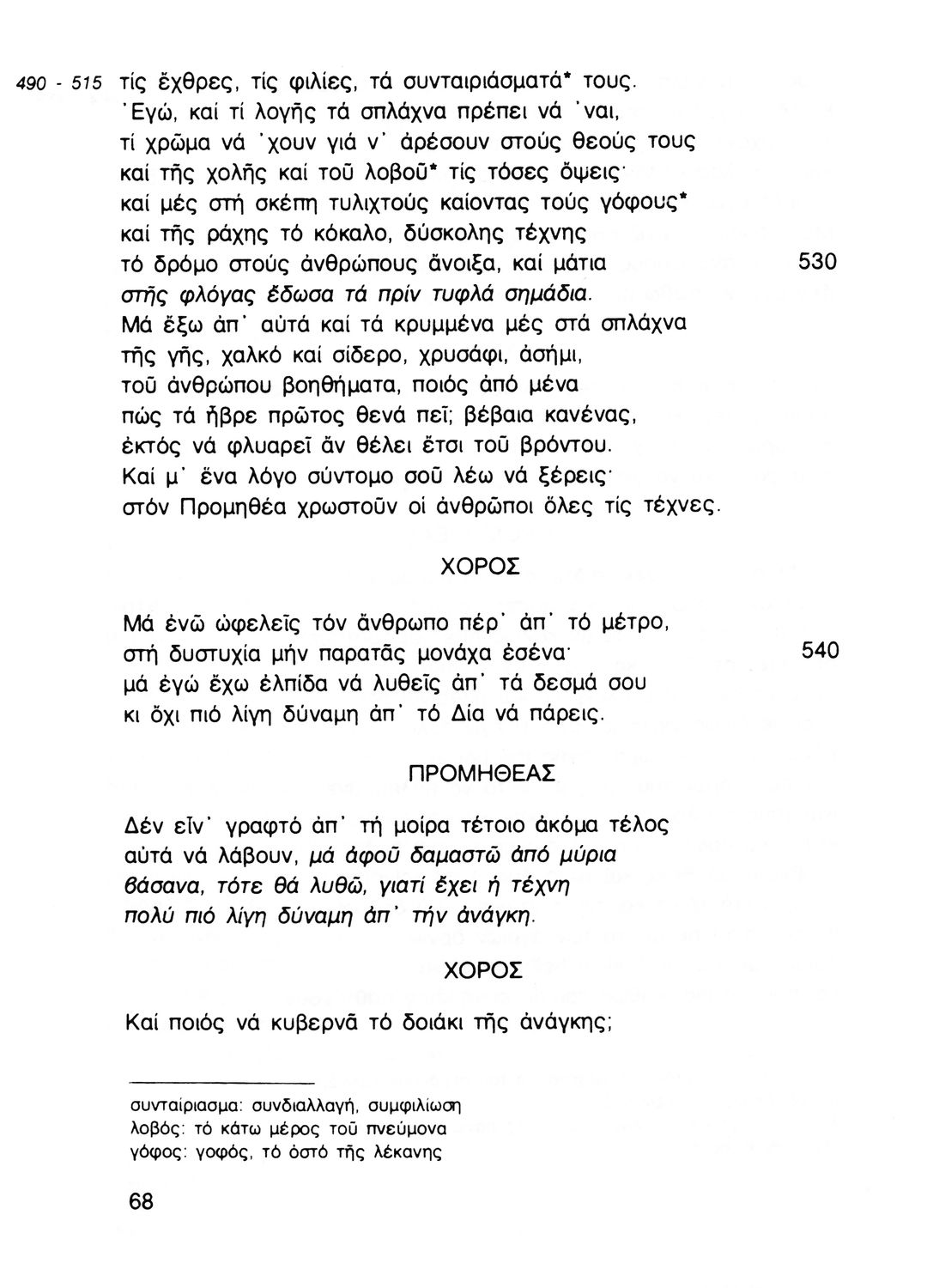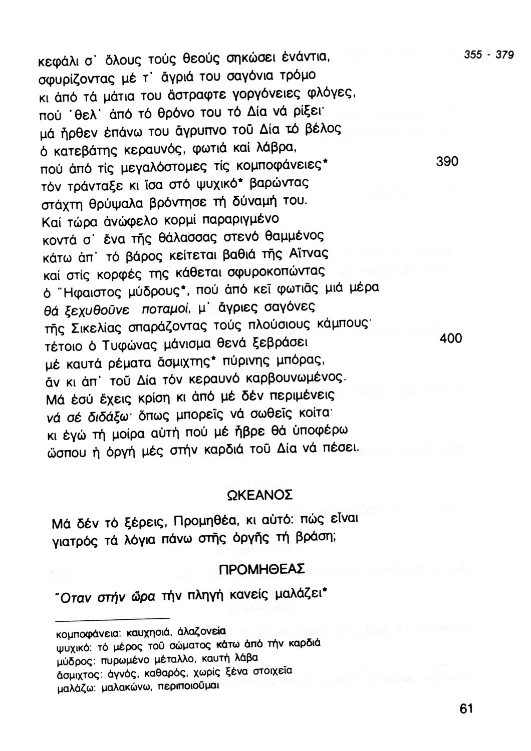 Σχολικό εγχειρίδιο Αρχαίων Ελληνικών Γ΄ Γυμνασίου που περιλαμβάνει εισαγωγή στη δραματική ποίηση, το αρχαίο θέατρο και την τραγωδία, μετάφραση των έργων Προμηθέας Δεσμώτης του Αισχύλου, Αντιγόνη του Σοφοκλή και Ιφιγένεια η εν Ταύροις του Ευριπίδη και ερμηνευτικά σχόλια.