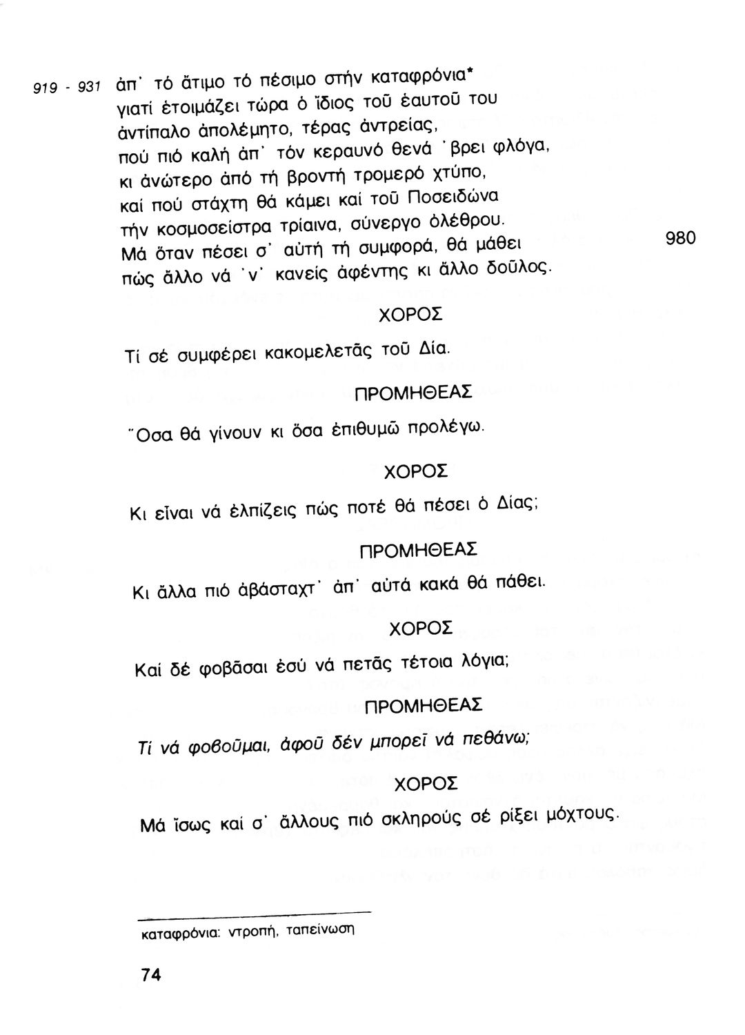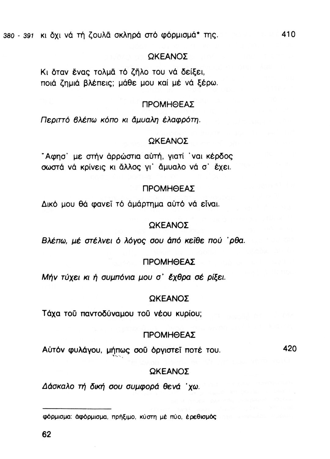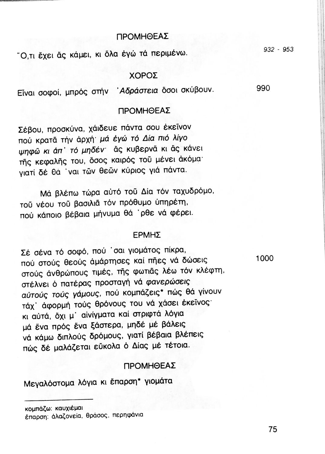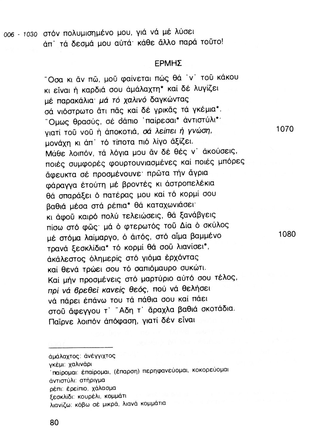 Σχολικό εγχειρίδιο Αρχαίων Ελληνικών Γ΄ Γυμνασίου που περιλαμβάνει εισαγωγή στη δραματική ποίηση, το αρχαίο θέατρο και την τραγωδία, μετάφραση των έργων Προμηθέας Δεσμώτης του Αισχύλου, Αντιγόνη του Σοφοκλή και Ιφιγένεια η εν Ταύροις του Ευριπίδη και ερμηνευτικά σχόλια.