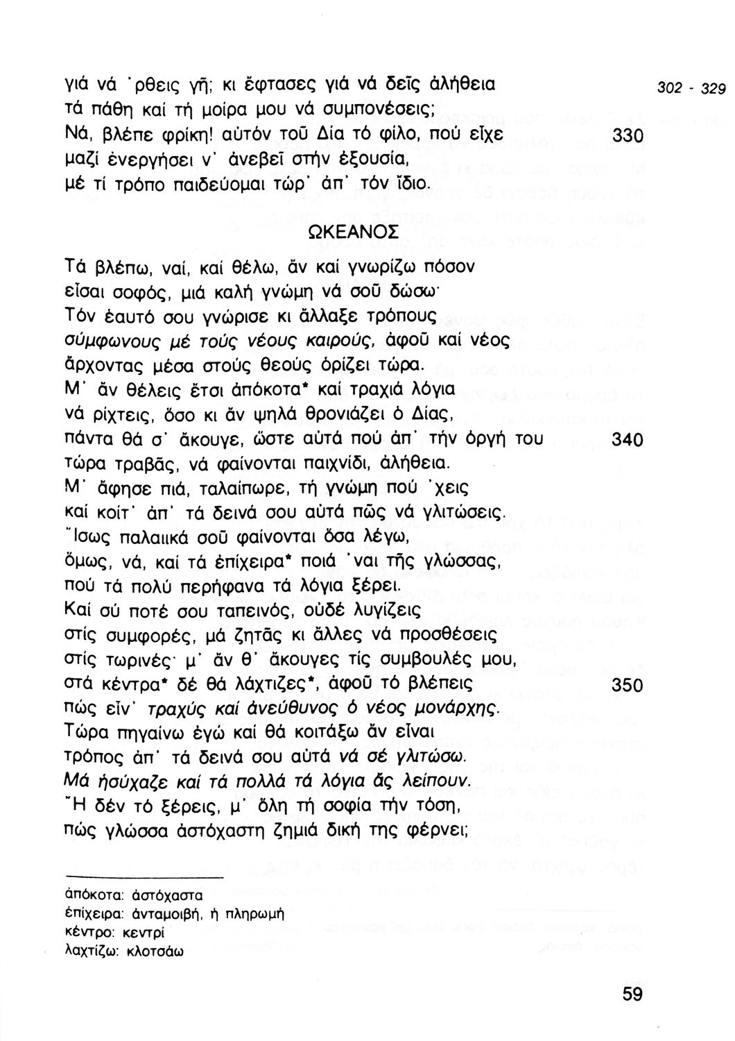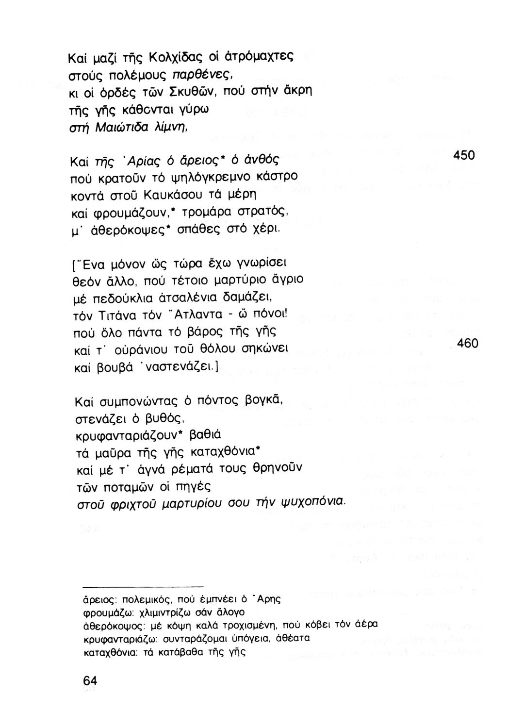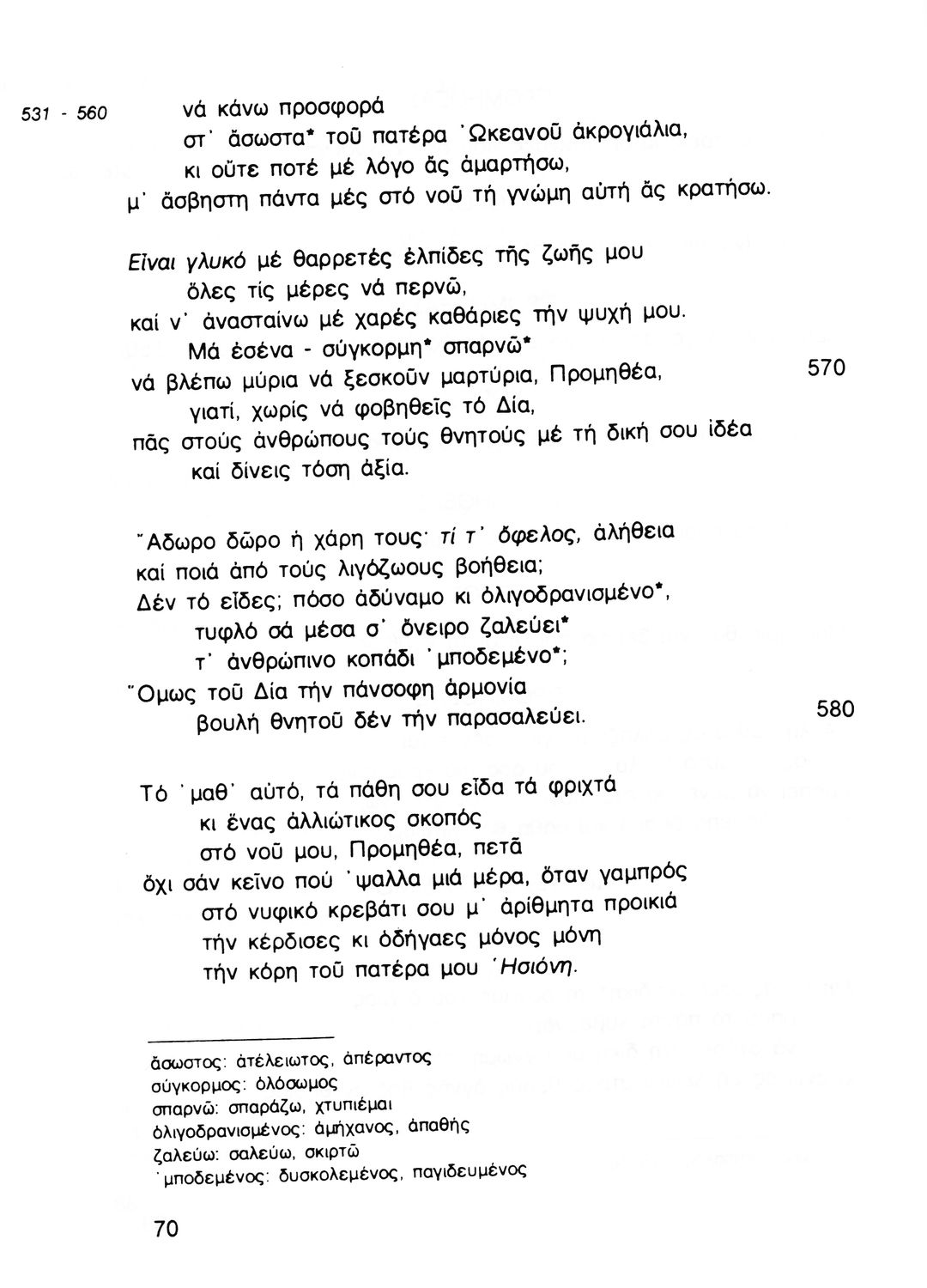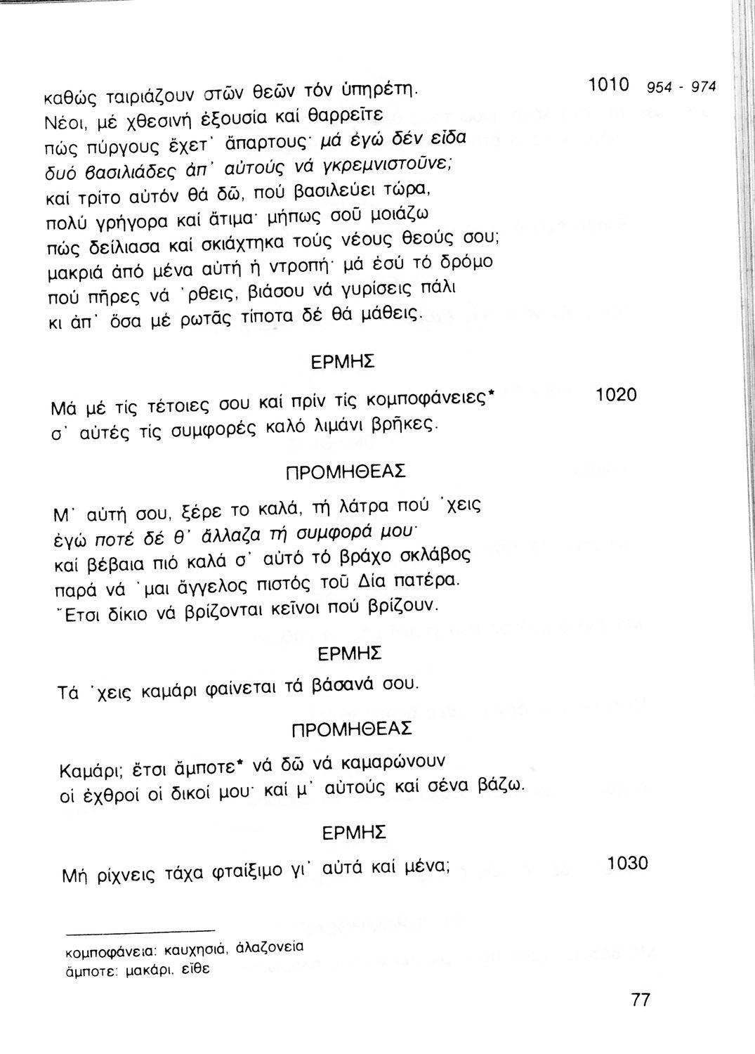 Σχολικό εγχειρίδιο Αρχαίων Ελληνικών Γ΄ Γυμνασίου που περιλαμβάνει εισαγωγή στη δραματική ποίηση, το αρχαίο θέατρο και την τραγωδία, μετάφραση των έργων Προμηθέας Δεσμώτης του Αισχύλου, Αντιγόνη του Σοφοκλή και Ιφιγένεια η εν Ταύροις του Ευριπίδη και ερμηνευτικά σχόλια.