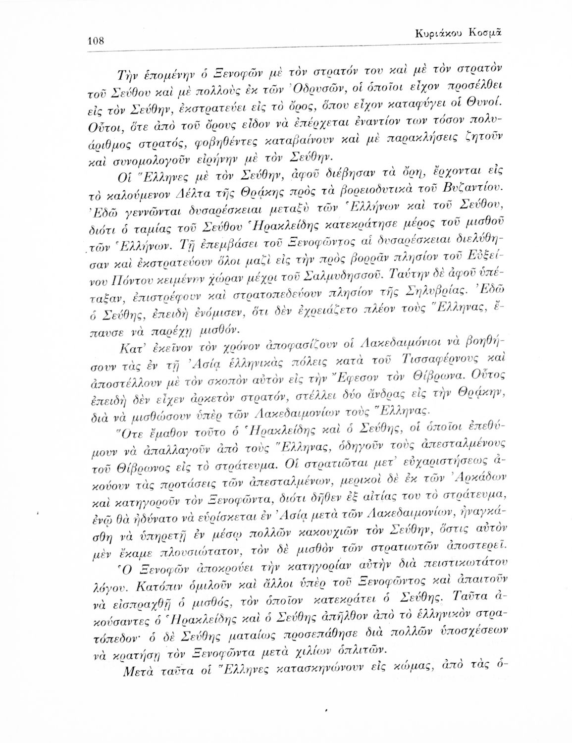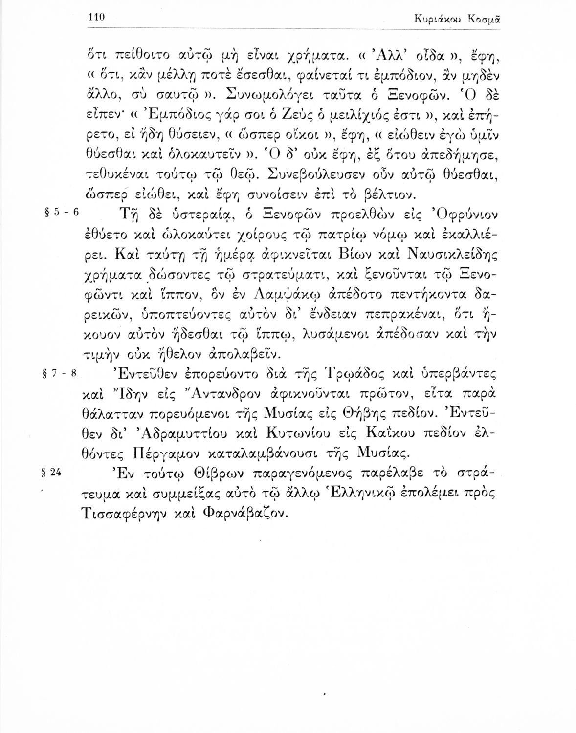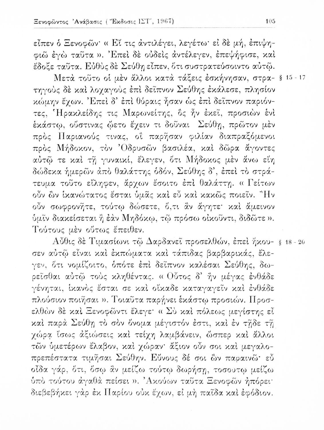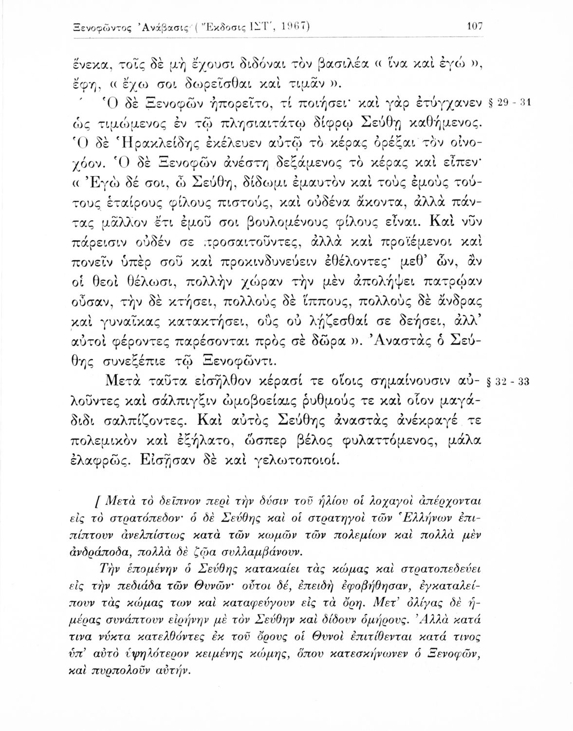 Σχολικό εγχειρίδιο Αρχαίων Ελληνικών για τη Γ' Γυμνασίου που περιέχει αποσπάσματα από την Ανάβαση του Ξενοφώντα και ερμηνευτικά και ετυμολογικά σχόλια.