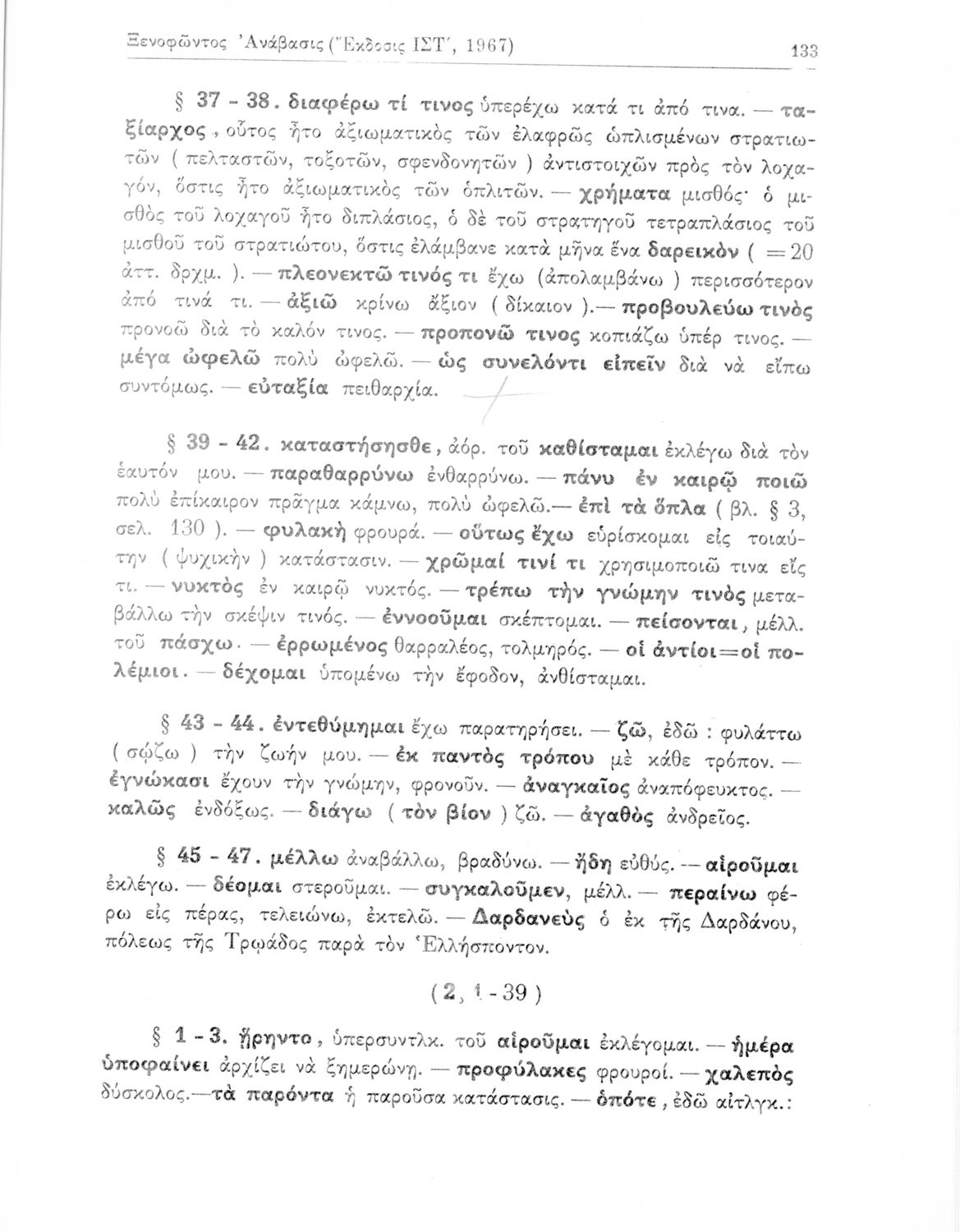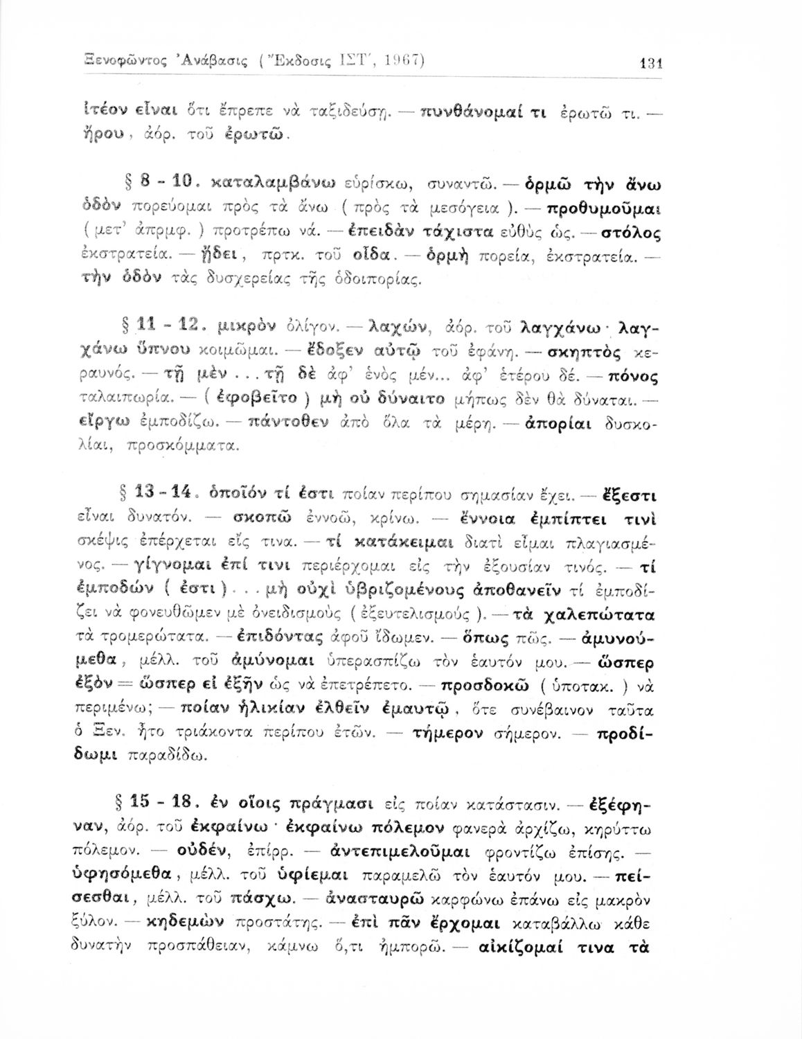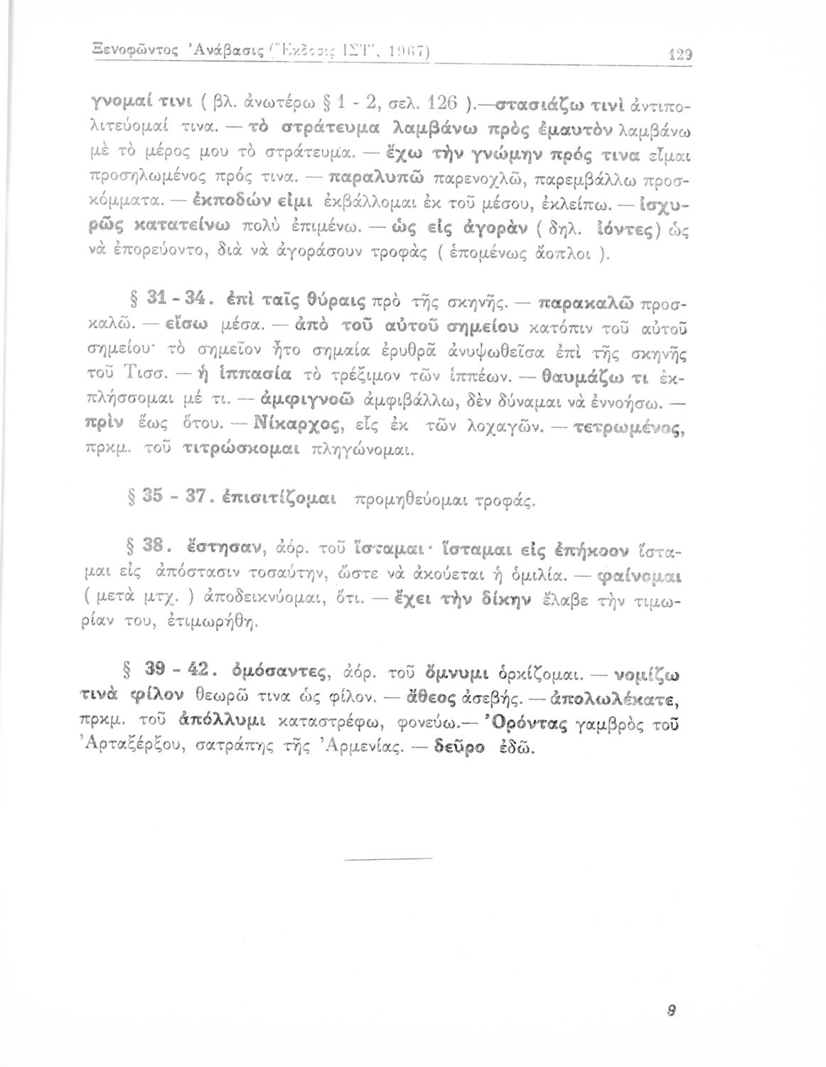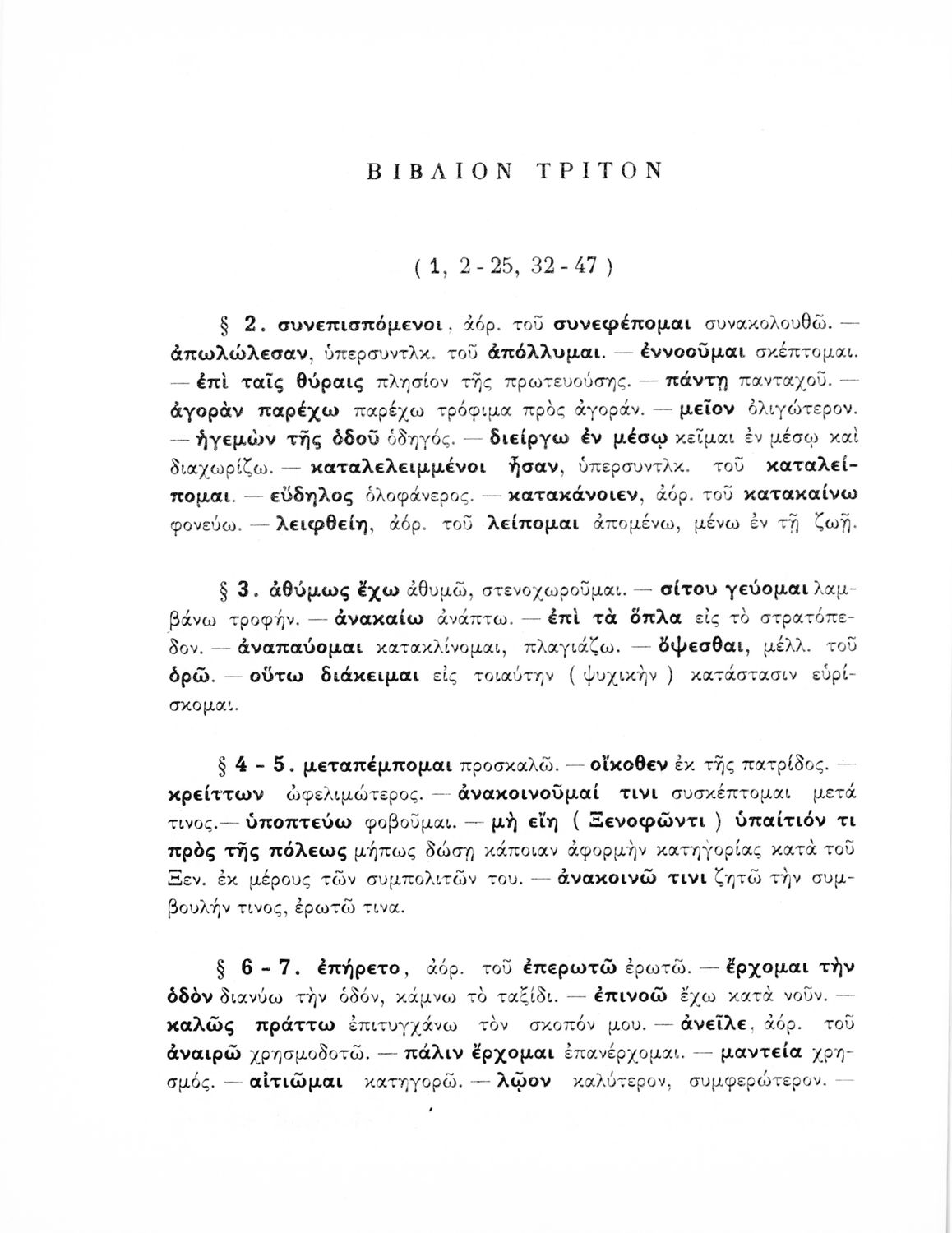 Σχολικό εγχειρίδιο Αρχαίων Ελληνικών για τη Γ' Γυμνασίου που περιέχει αποσπάσματα από την Ανάβαση του Ξενοφώντα και ερμηνευτικά και ετυμολογικά σχόλια.