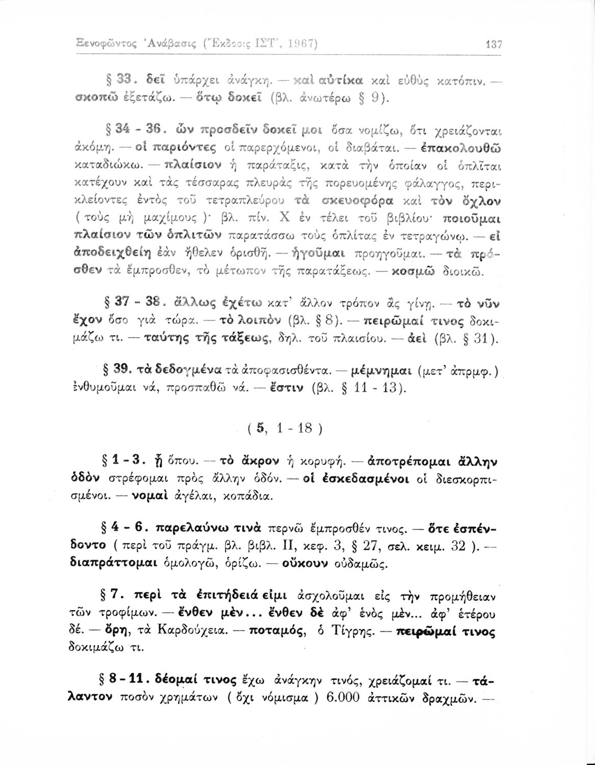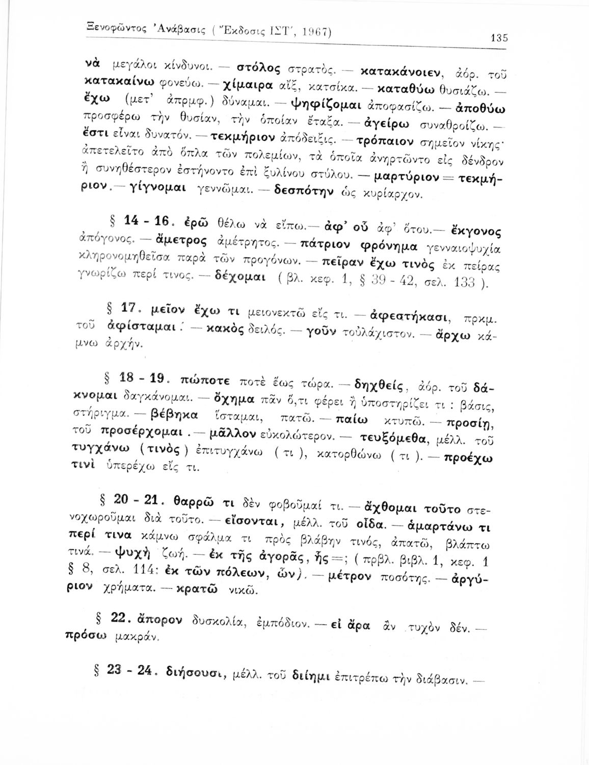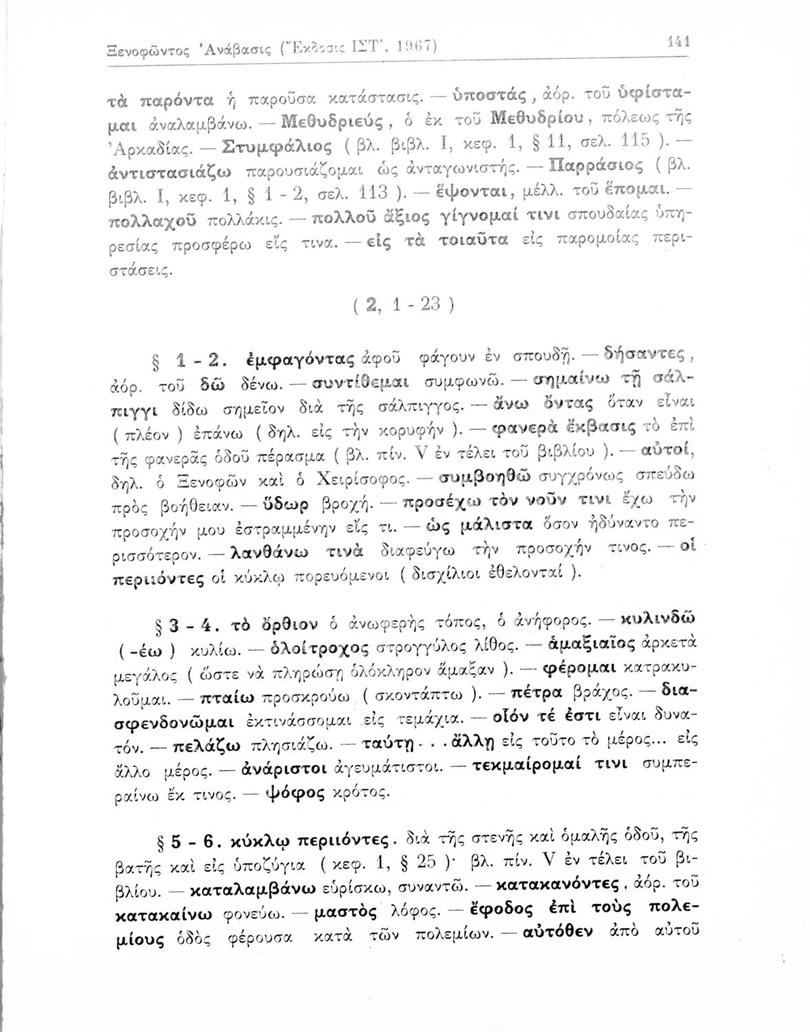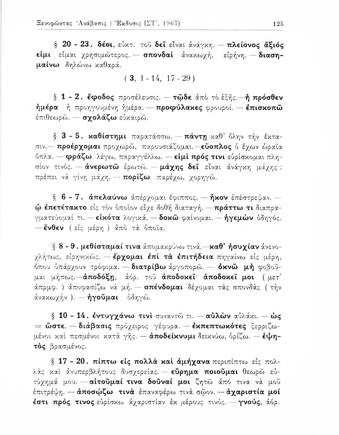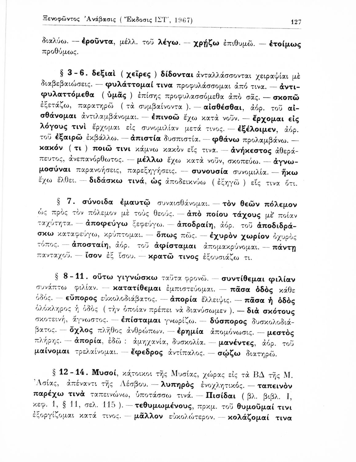 Σχολικό εγχειρίδιο Αρχαίων Ελληνικών για τη Γ' Γυμνασίου που περιέχει αποσπάσματα από την Ανάβαση του Ξενοφώντα και ερμηνευτικά και ετυμολογικά σχόλια.
