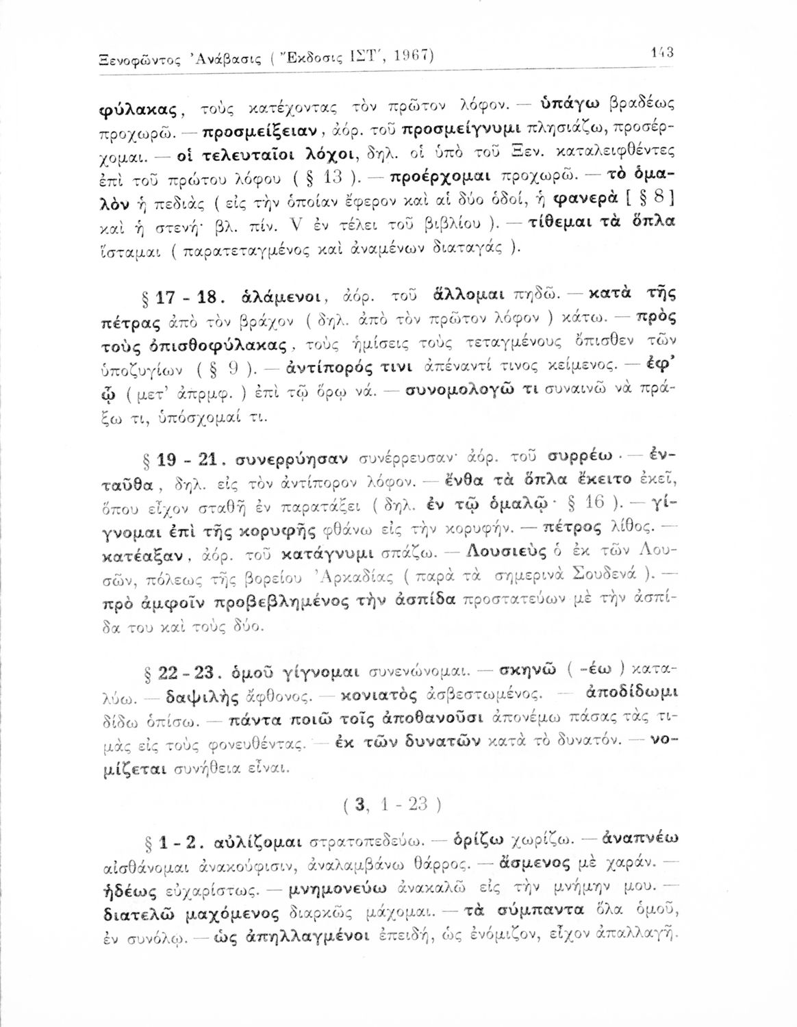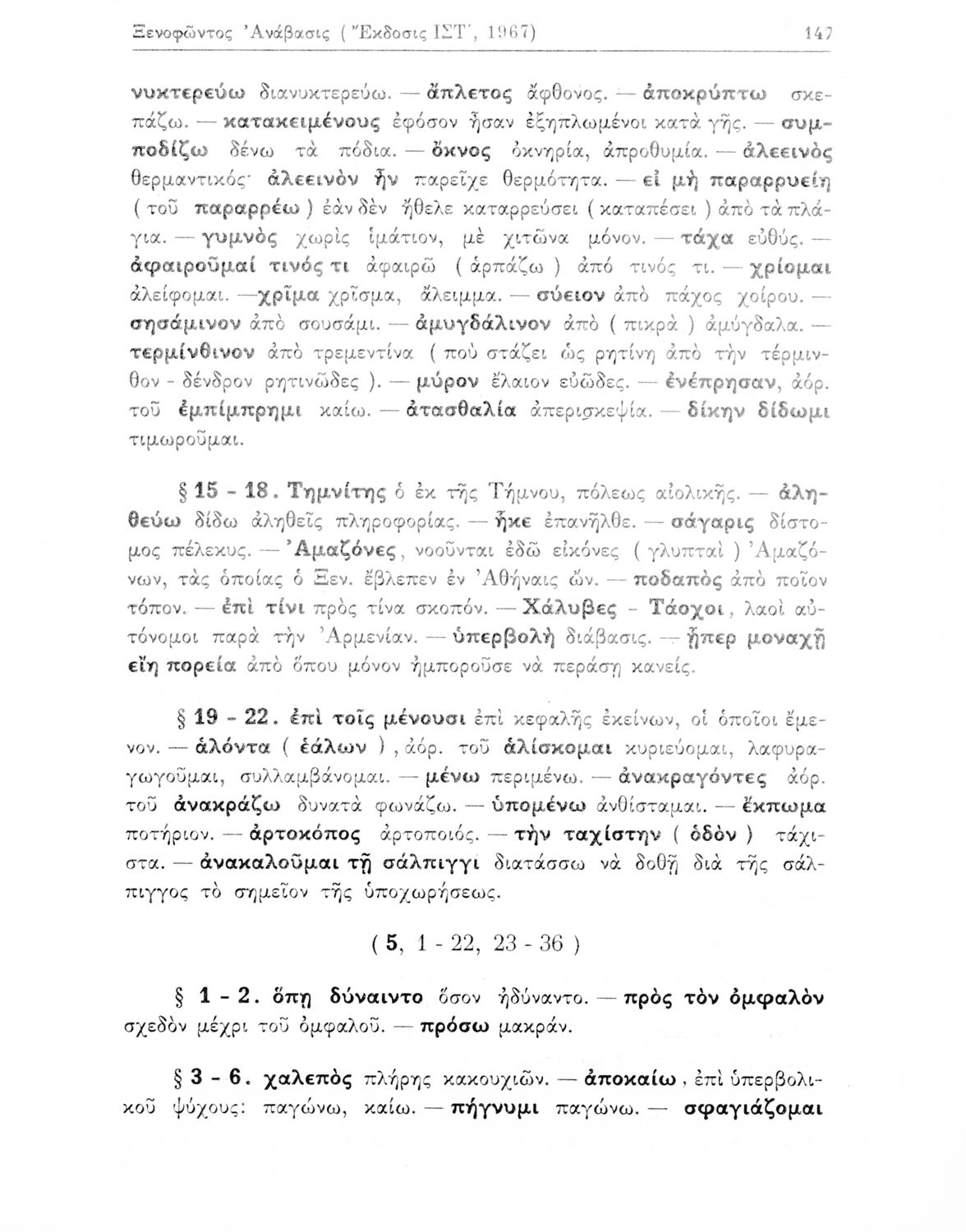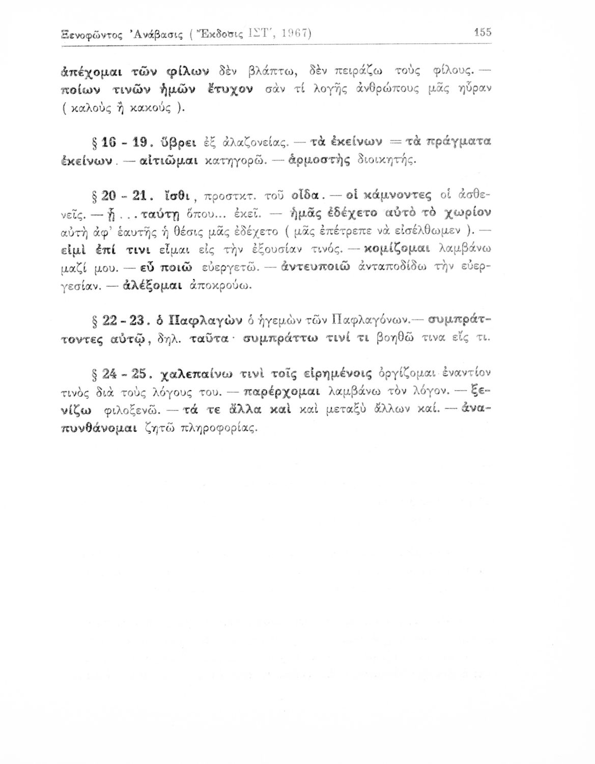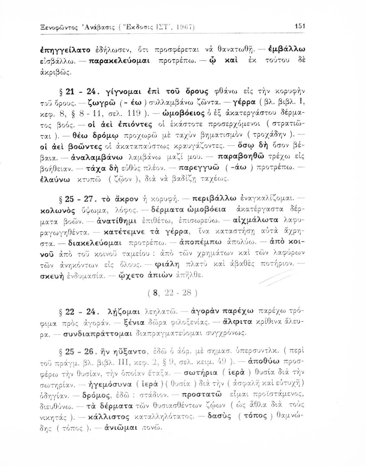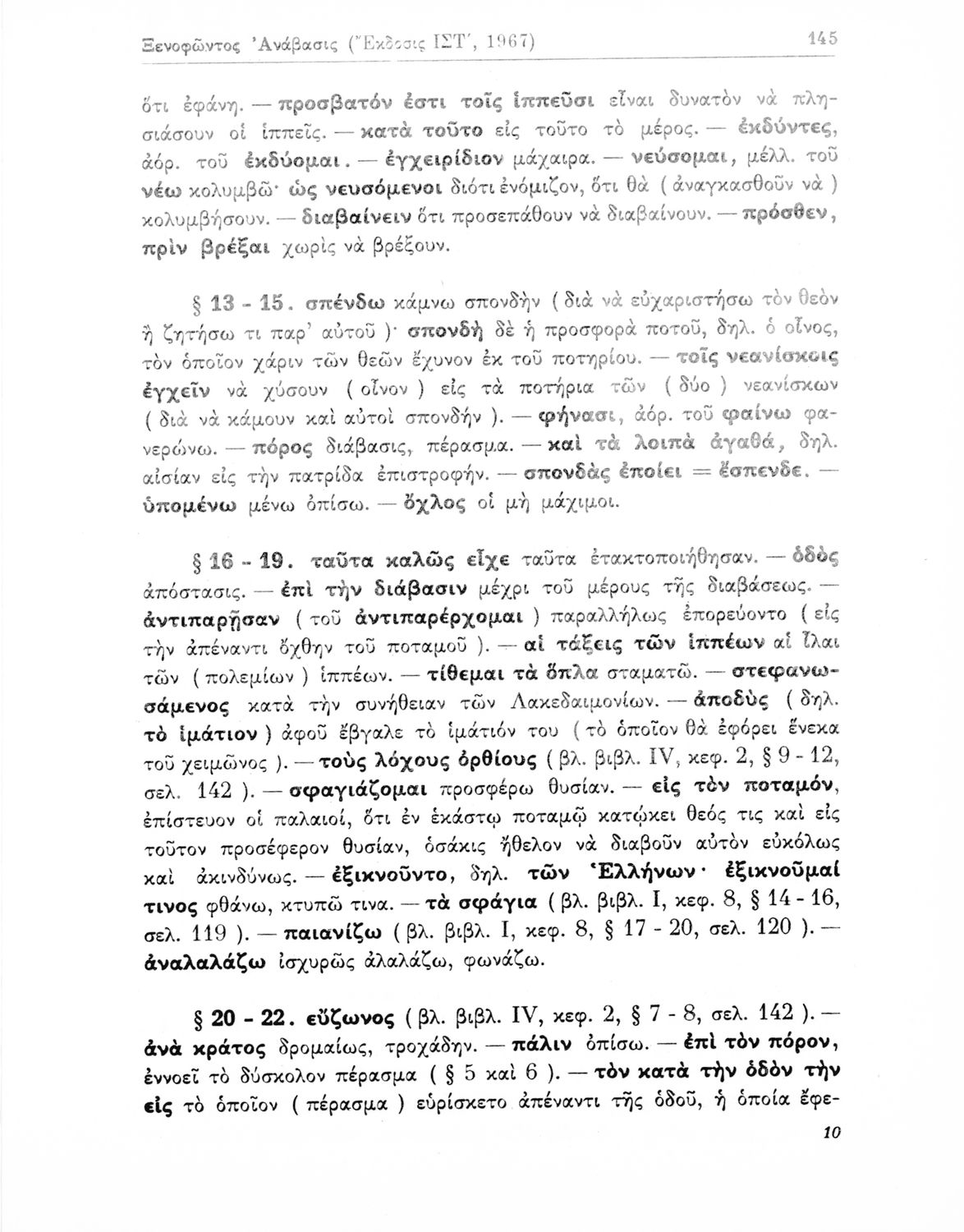 Σχολικό εγχειρίδιο Αρχαίων Ελληνικών για τη Γ' Γυμνασίου που περιέχει αποσπάσματα από την Ανάβαση του Ξενοφώντα και ερμηνευτικά και ετυμολογικά σχόλια.