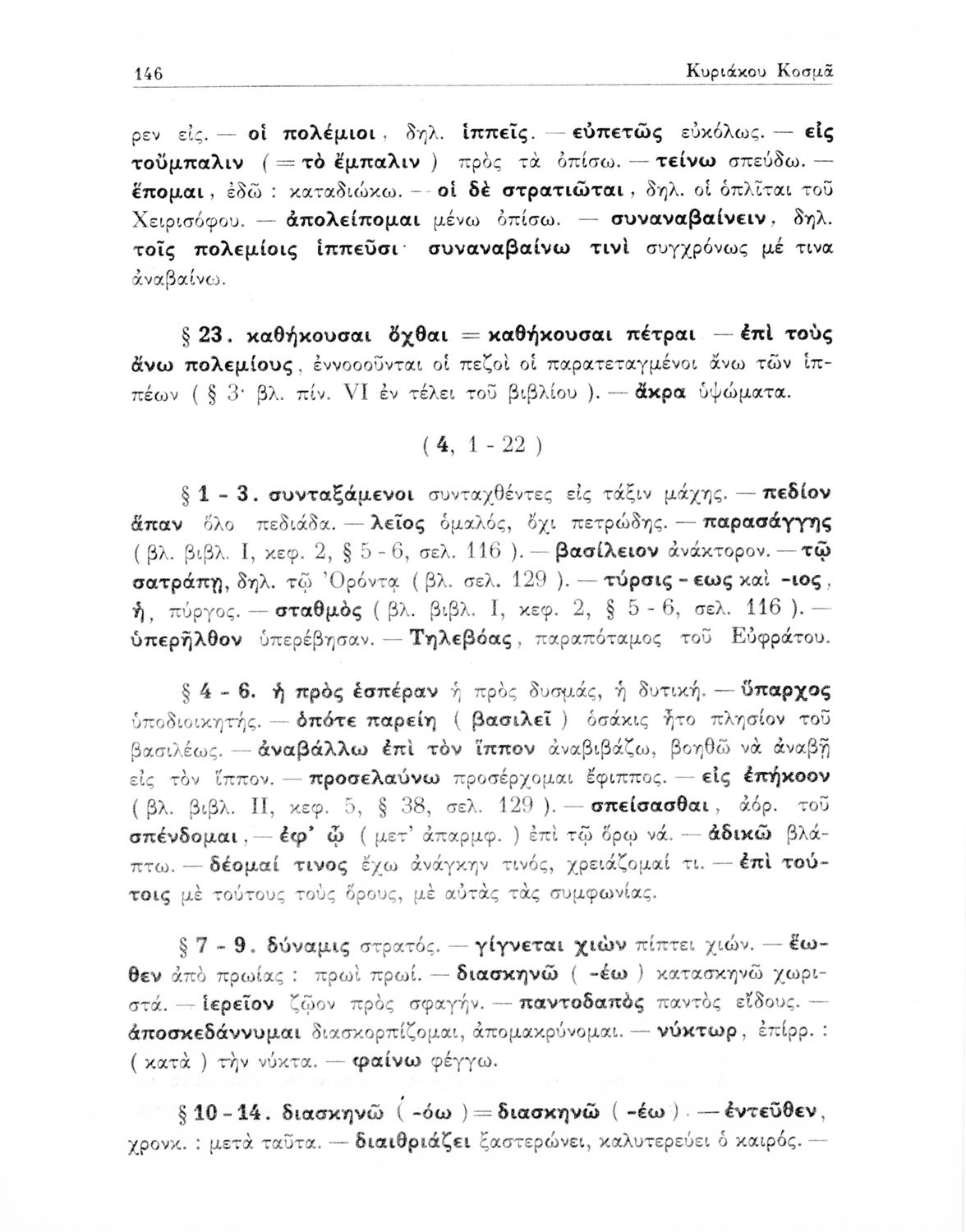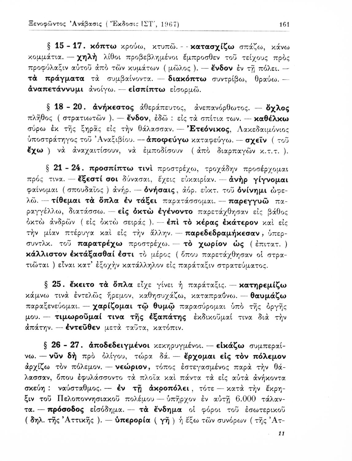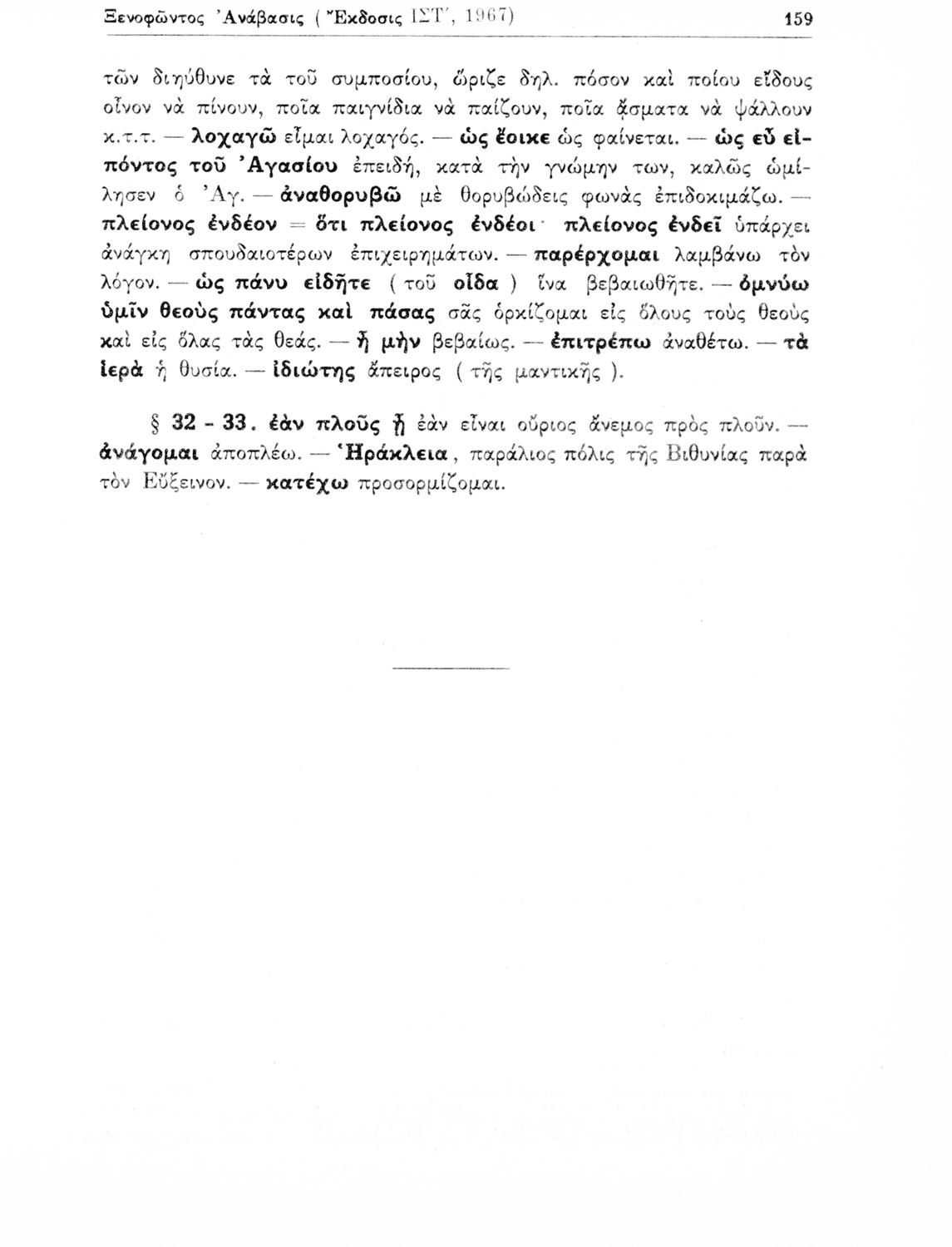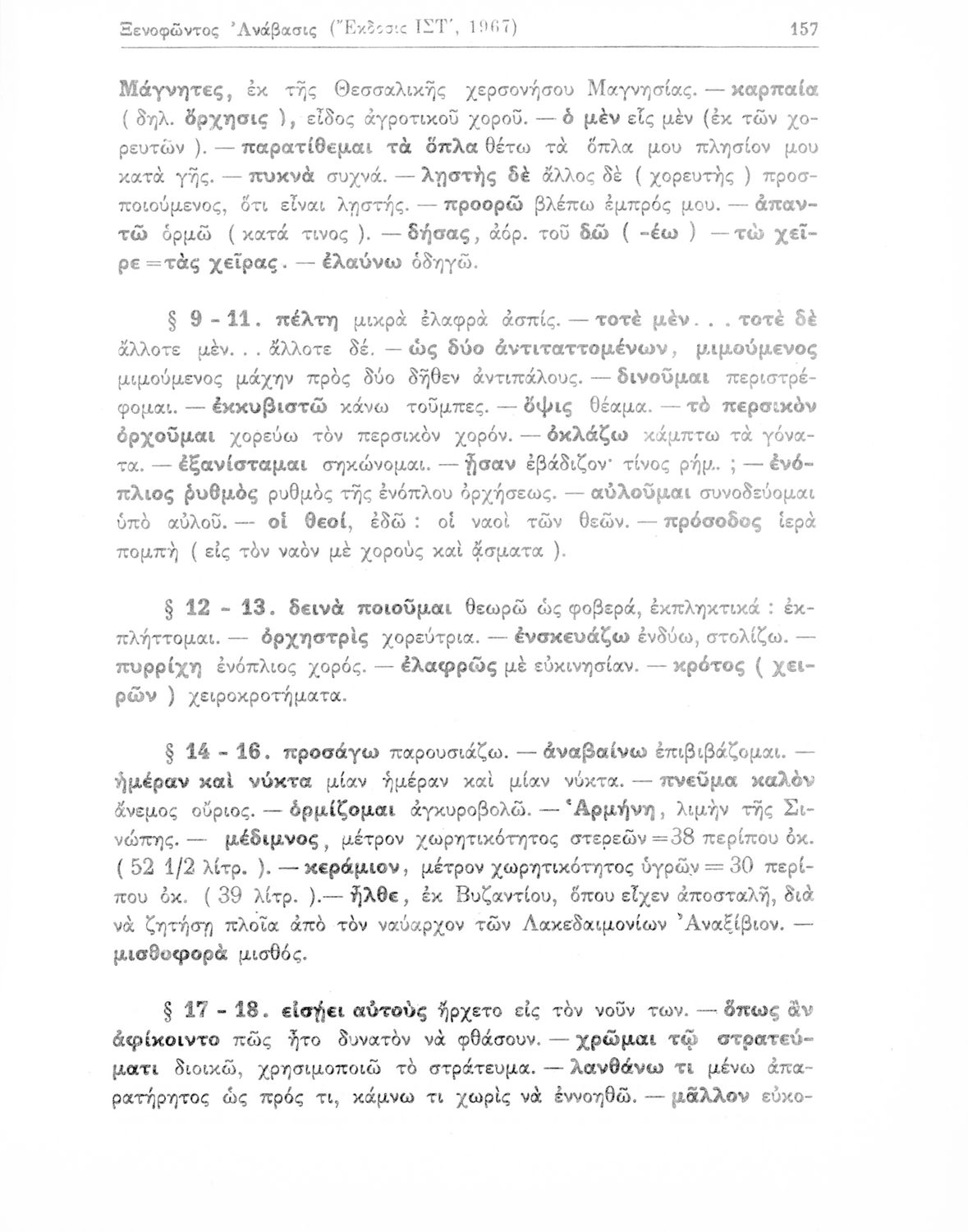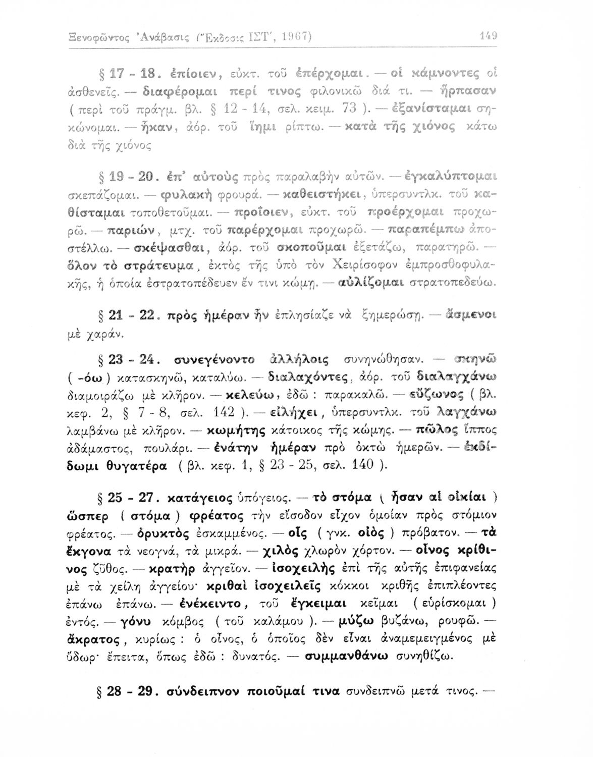 Σχολικό εγχειρίδιο Αρχαίων Ελληνικών για τη Γ' Γυμνασίου που περιέχει αποσπάσματα από την Ανάβαση του Ξενοφώντα και ερμηνευτικά και ετυμολογικά σχόλια.